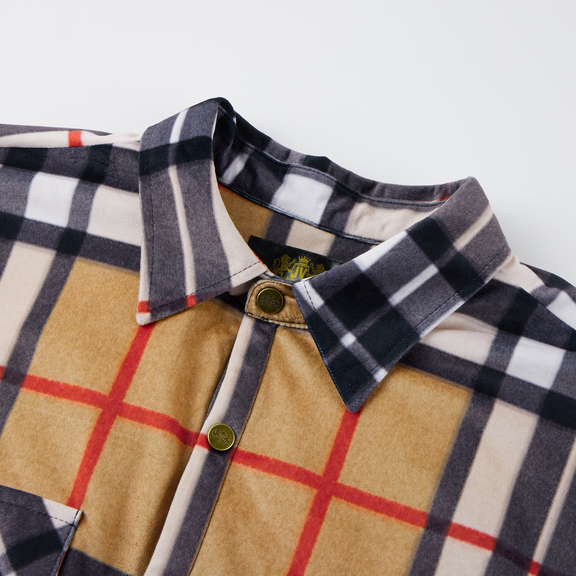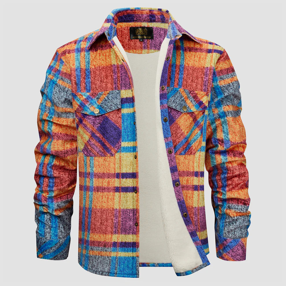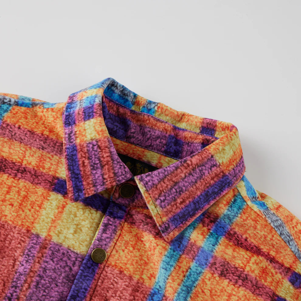 Red-Green-Orange-Yellow Plaid Button Down Flannel Jacket