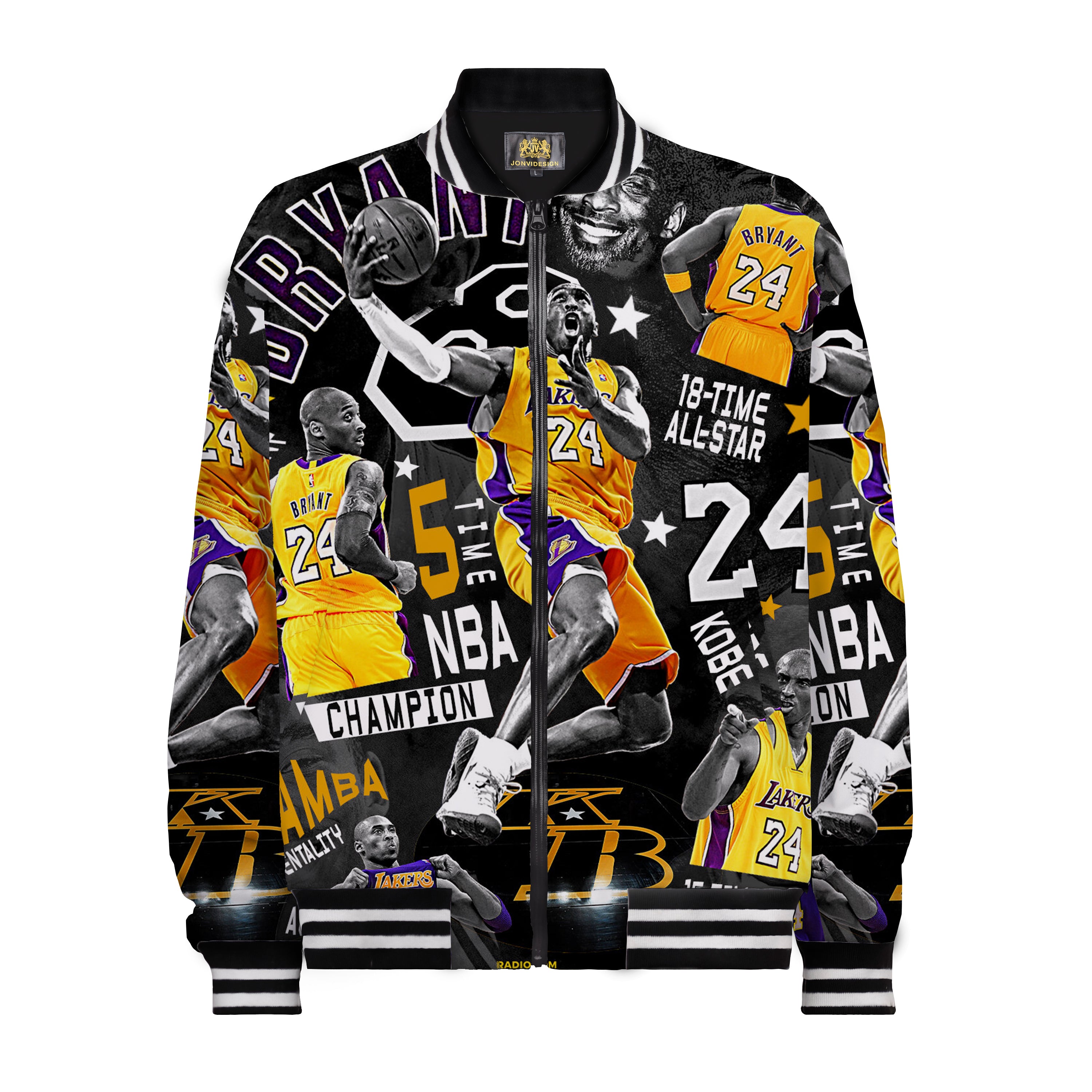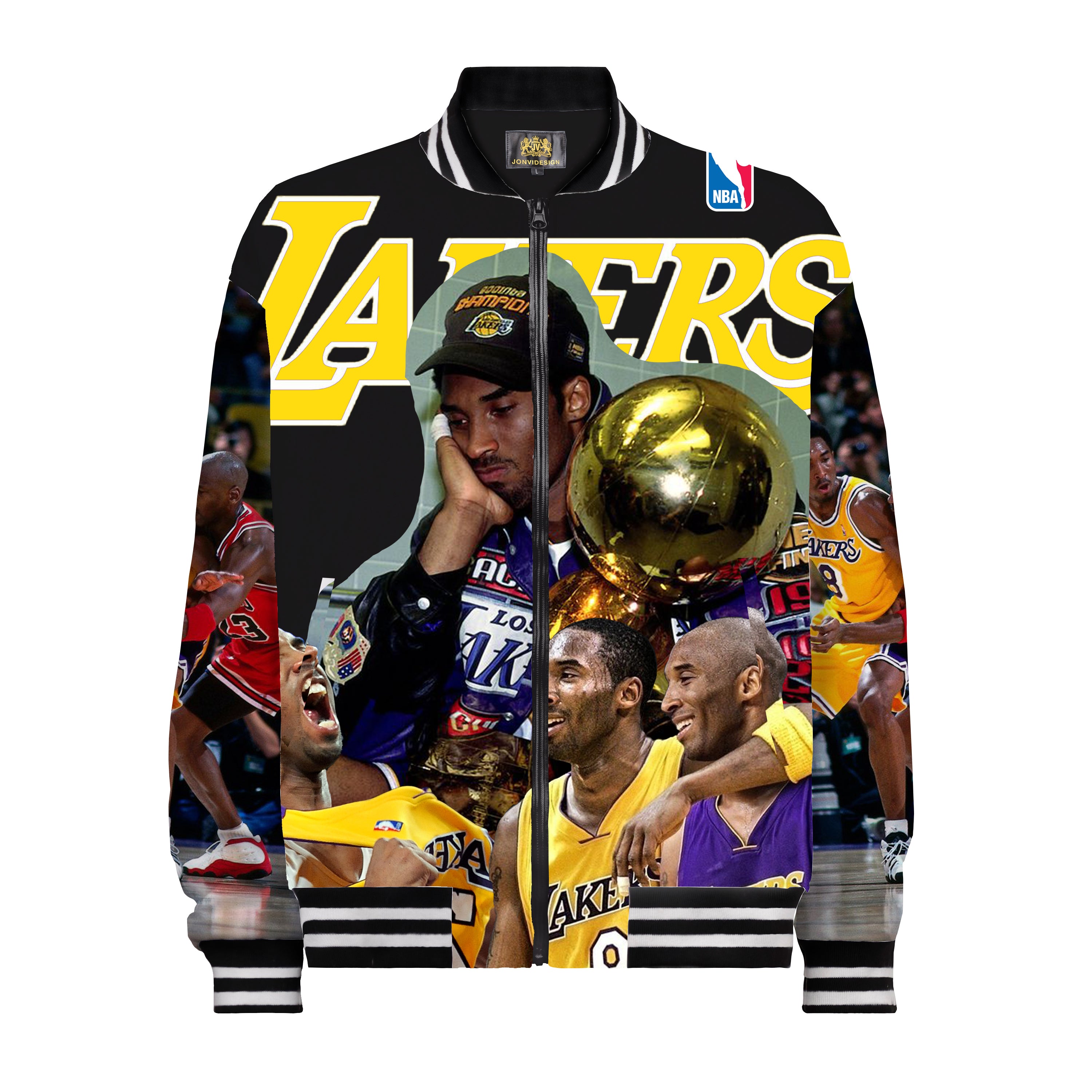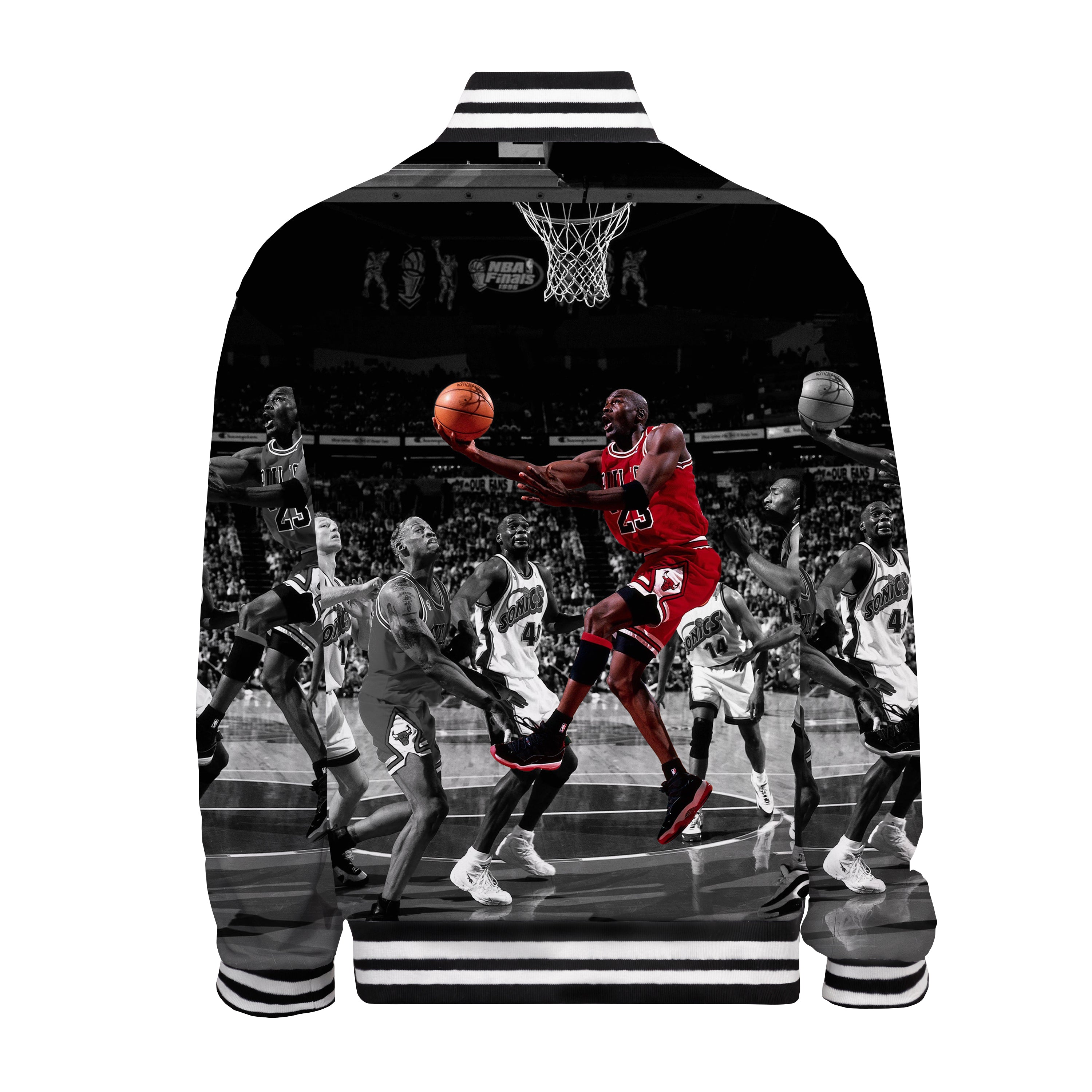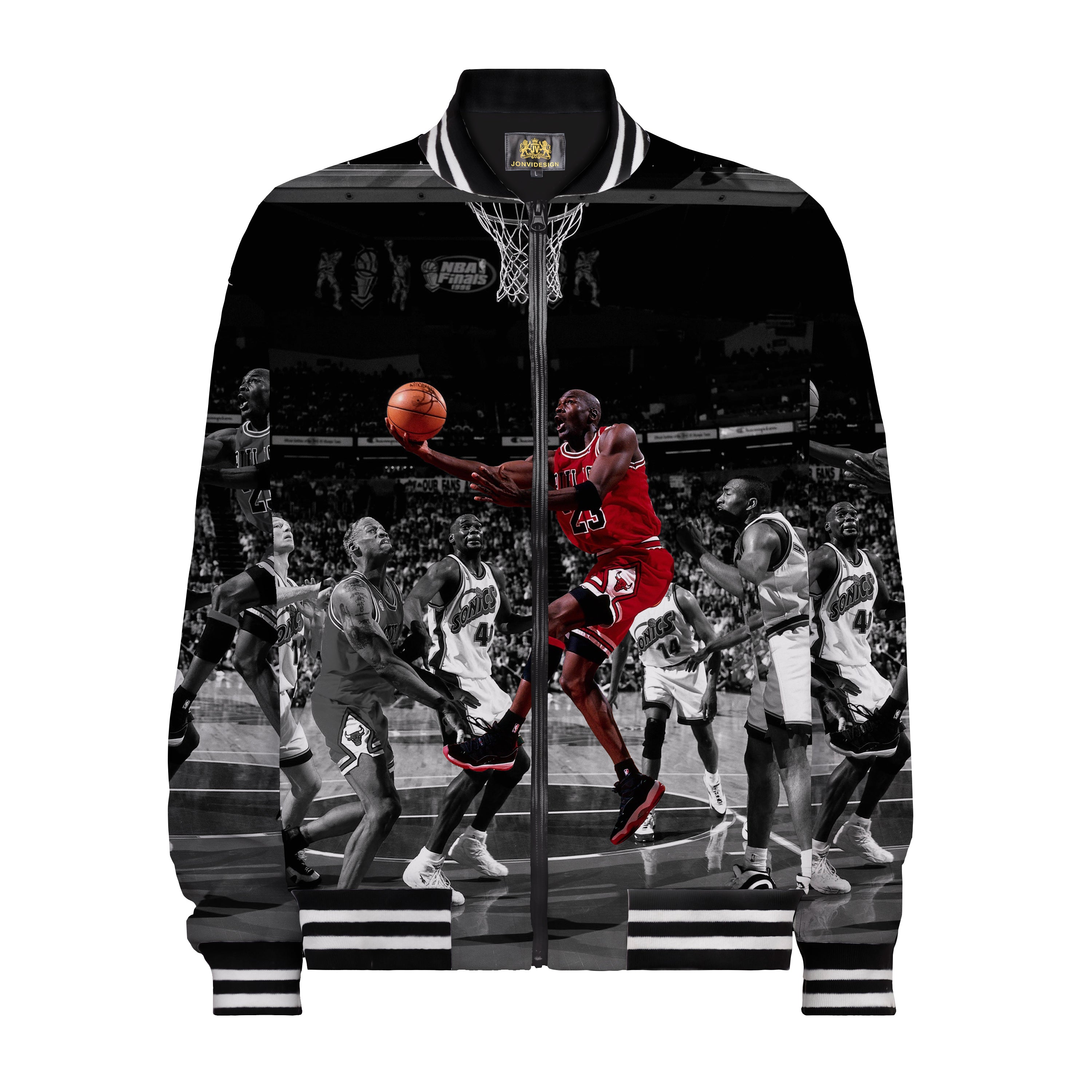 Basketball Themed Print Bomber Jacket /Bomber Jacket With Ribbed Knit Stand-Up Collar$53.99 USD$85.00 USD