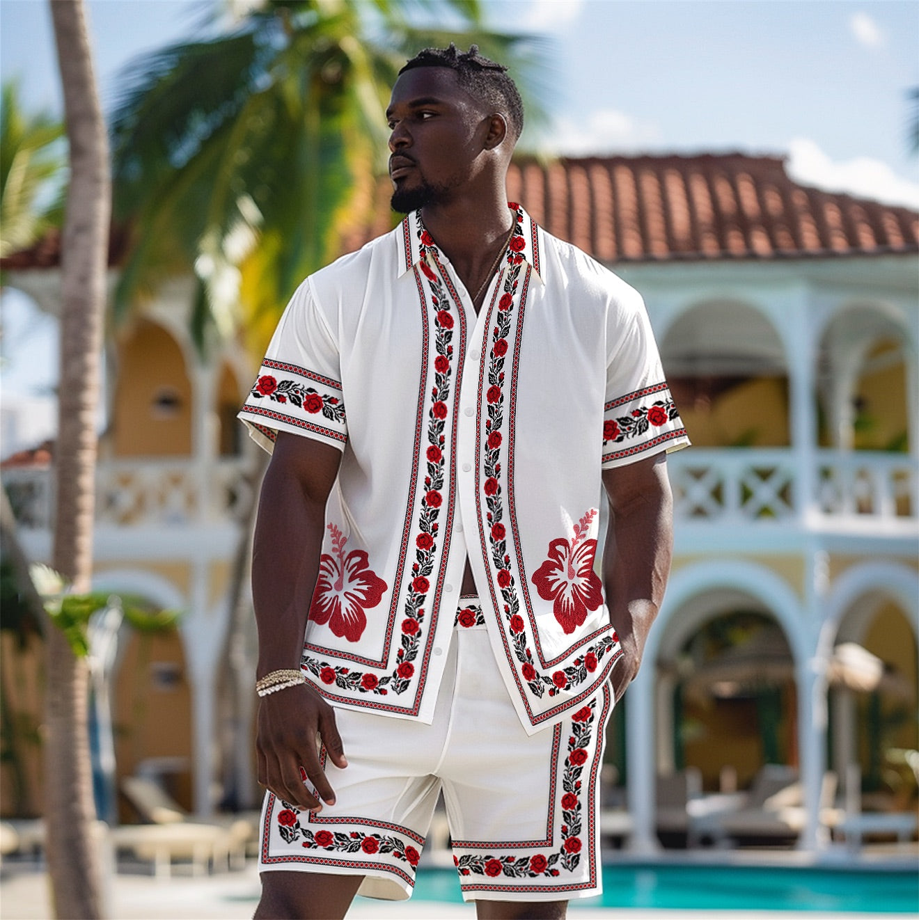 Mexican Painter Frida Personality Character Pattern Camp Collar Casual Shirt in Blue$43.99 USD$69.00 USD