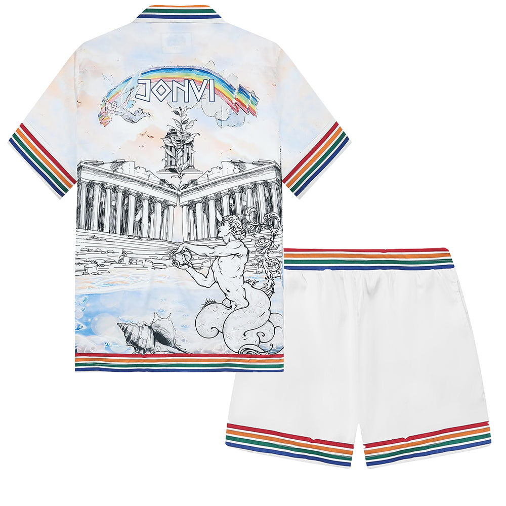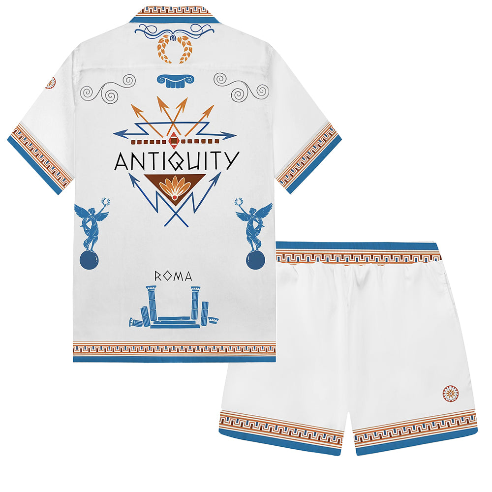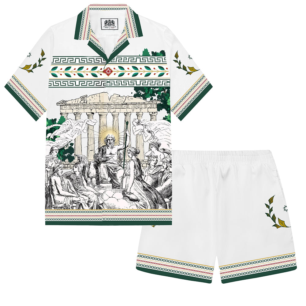 Summer Holiday Style Ancient Greek Statue Print Camp Collar Short Sleeve Shirt$43.99 USD$69.00 USD
