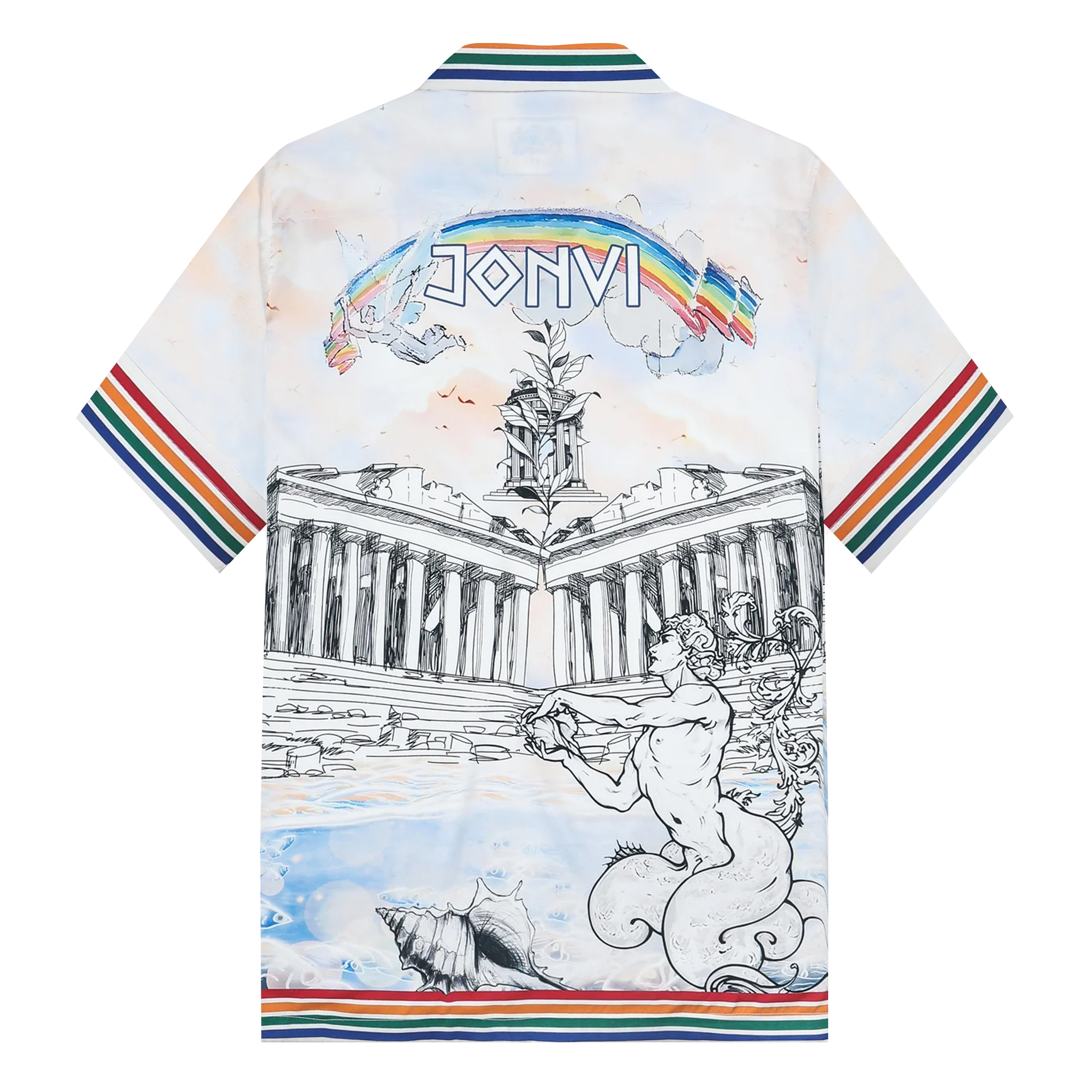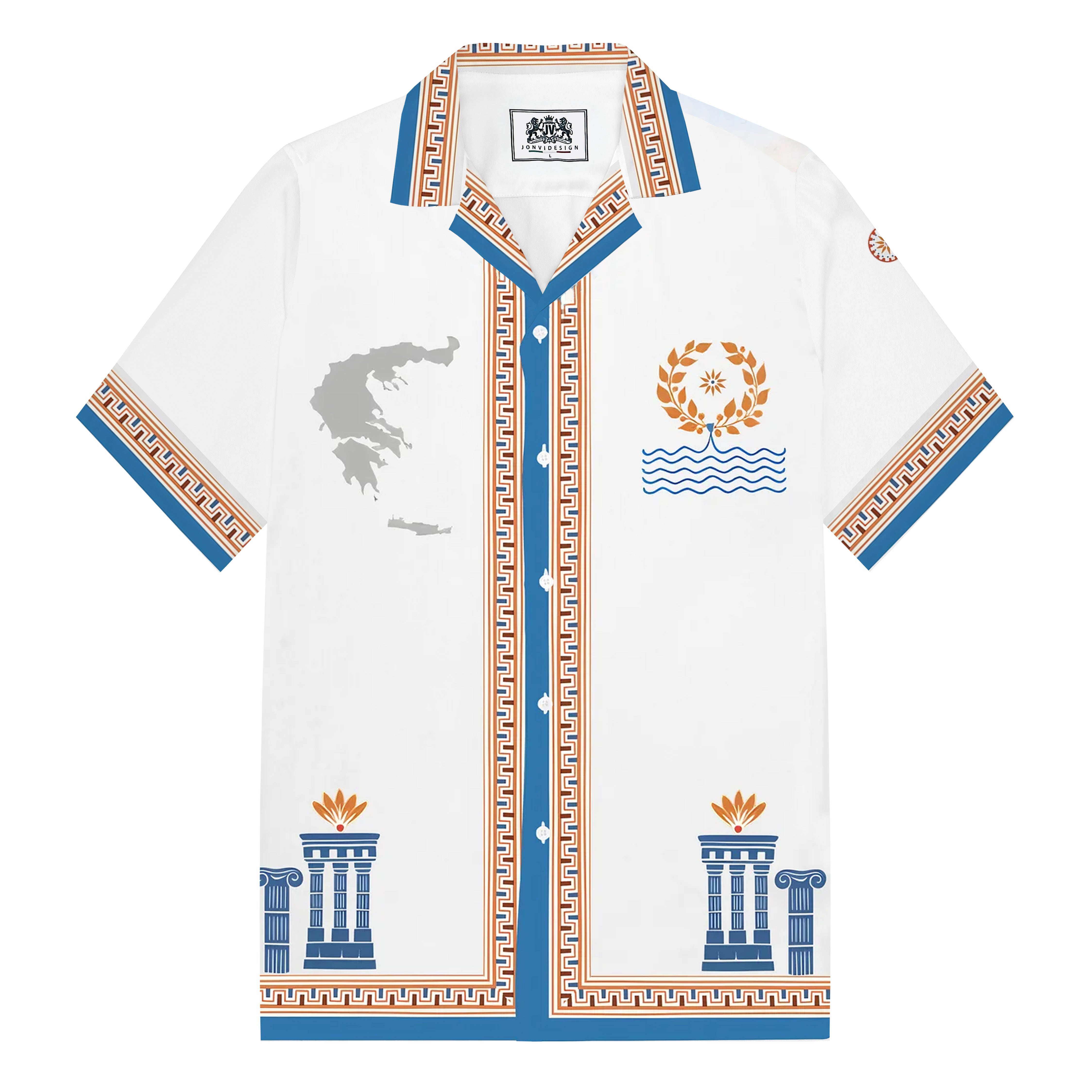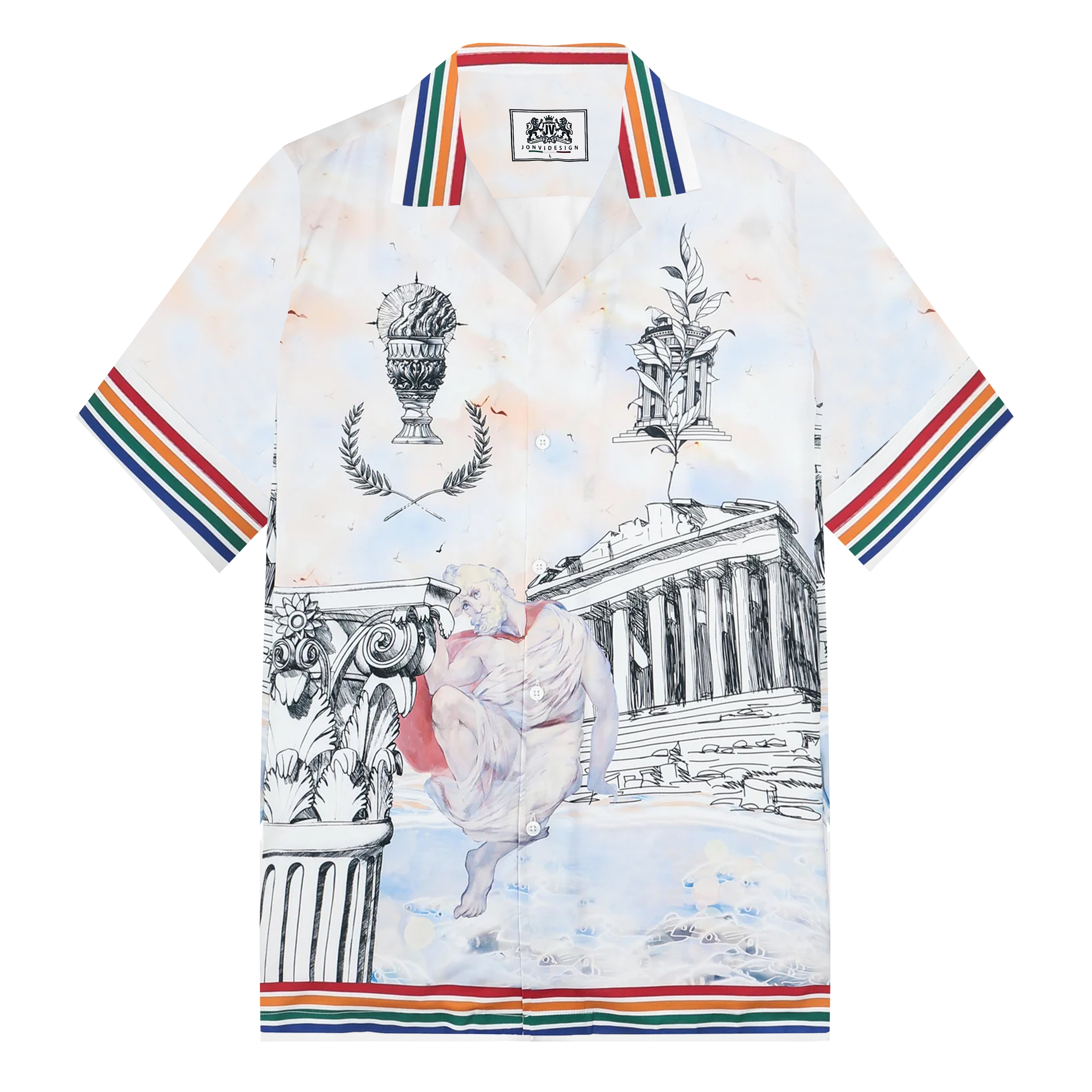 Summer Holiday Style Ancient Greek Statue Print Camp Collar Short Sleeve Shirt$43.99 USD$69.00 USD