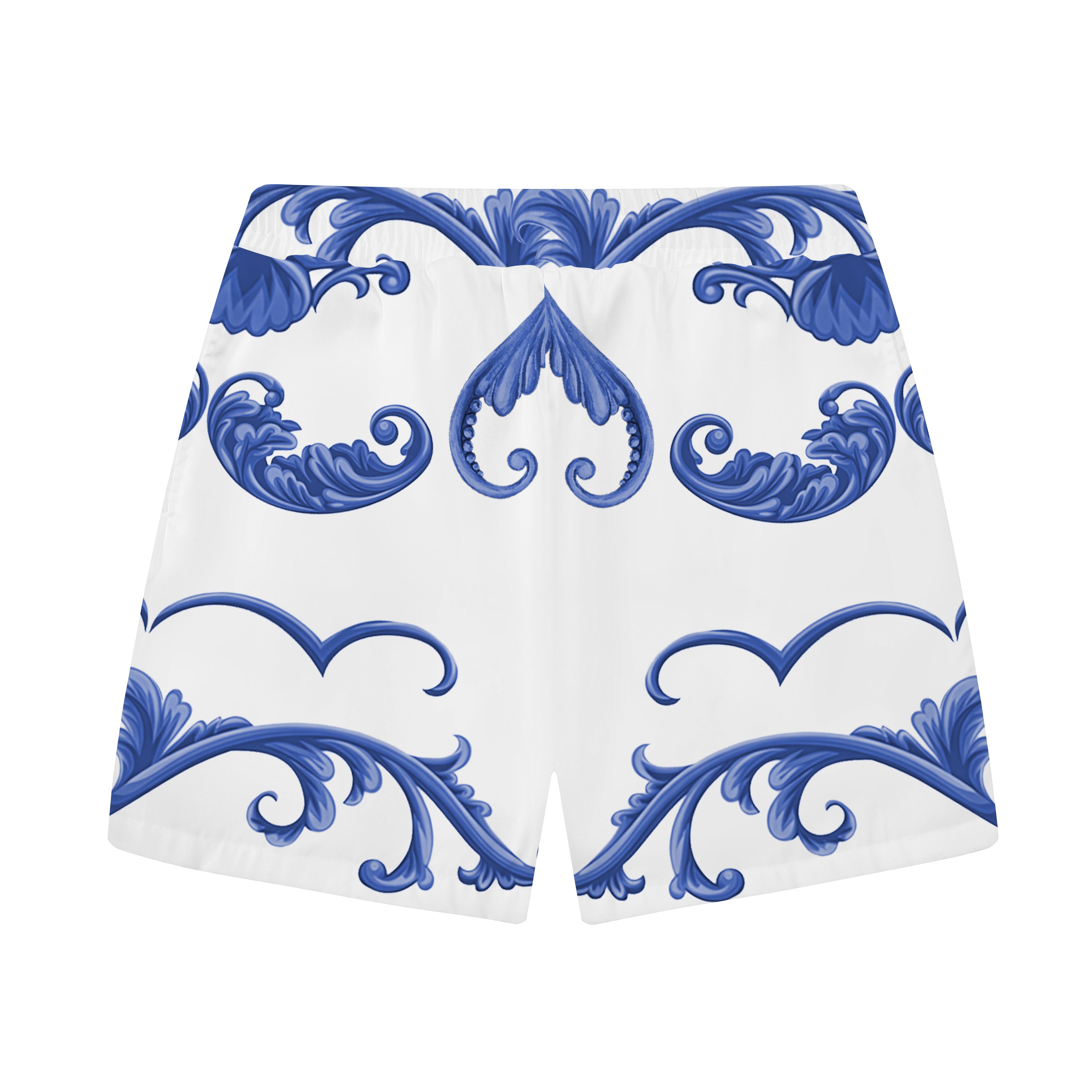 Little Angel Blue and White Porcelain Print Pattern Elastic Waistband Casual Shorts$38.99 USD$50.00 USD