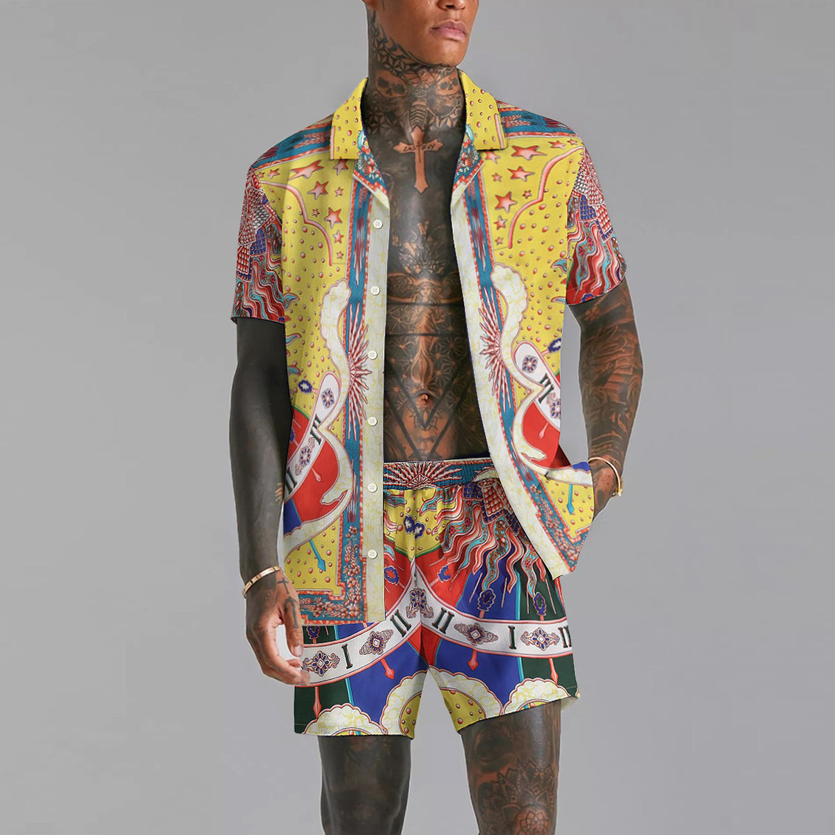 Yellow Star and Moon Pattern Camp Collar Shirt