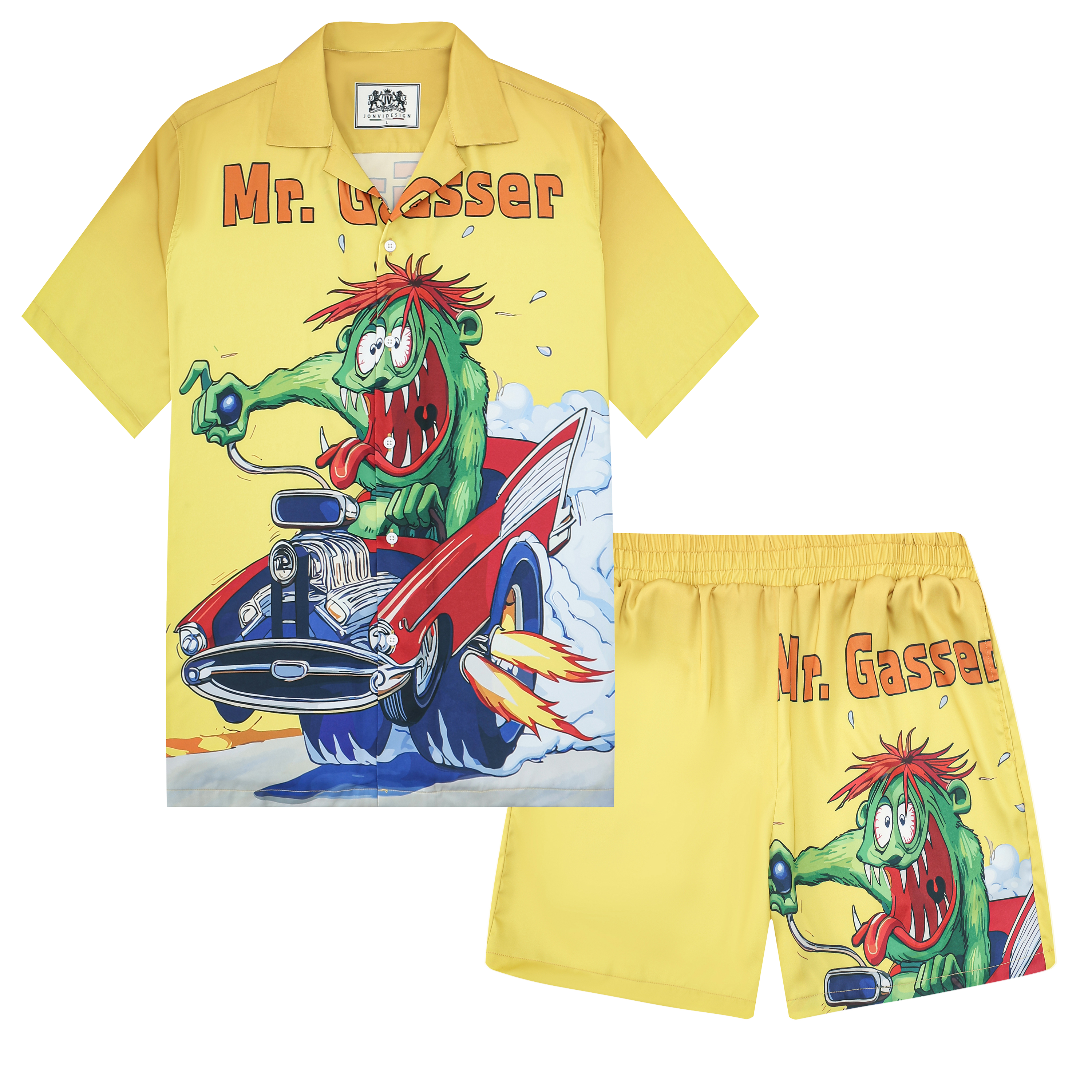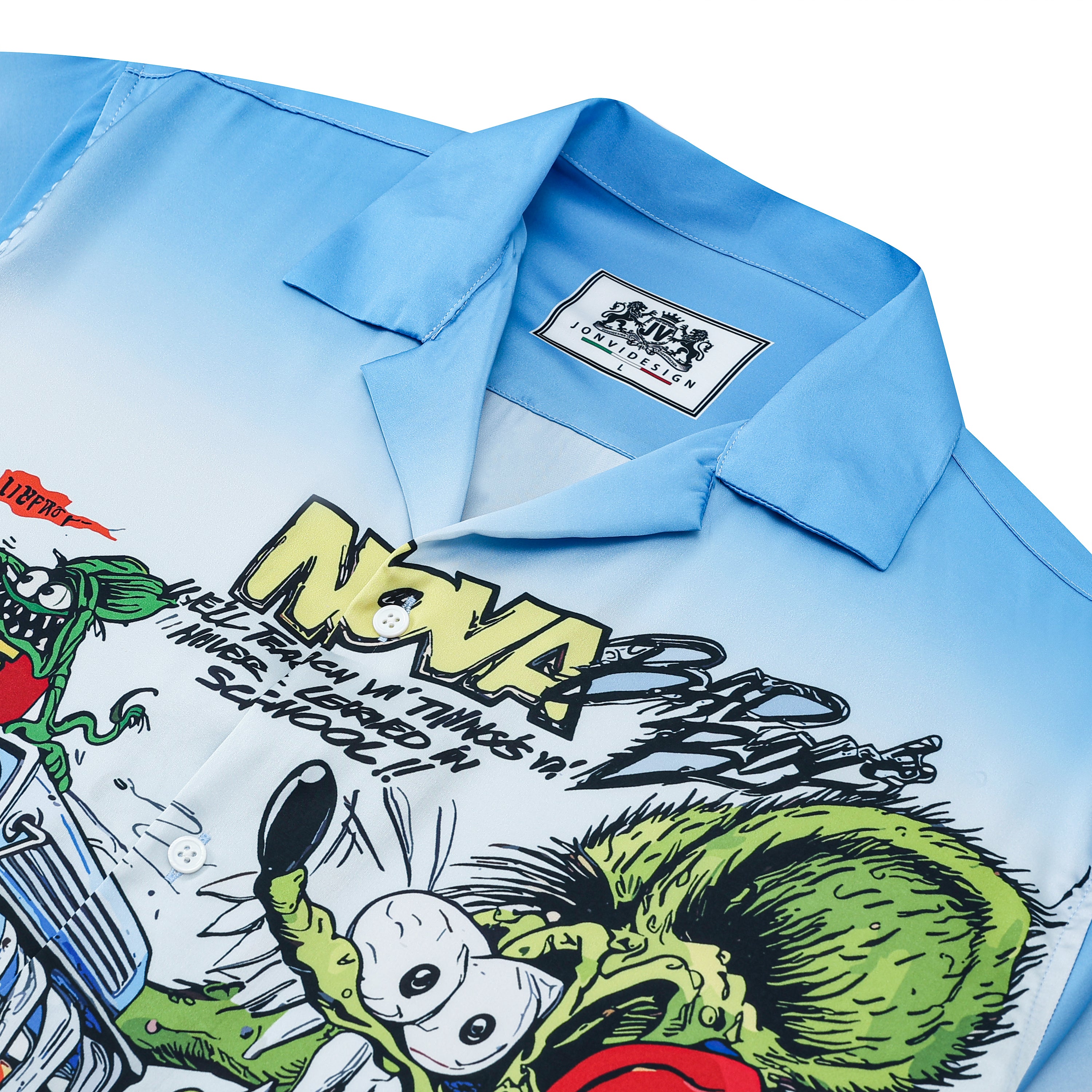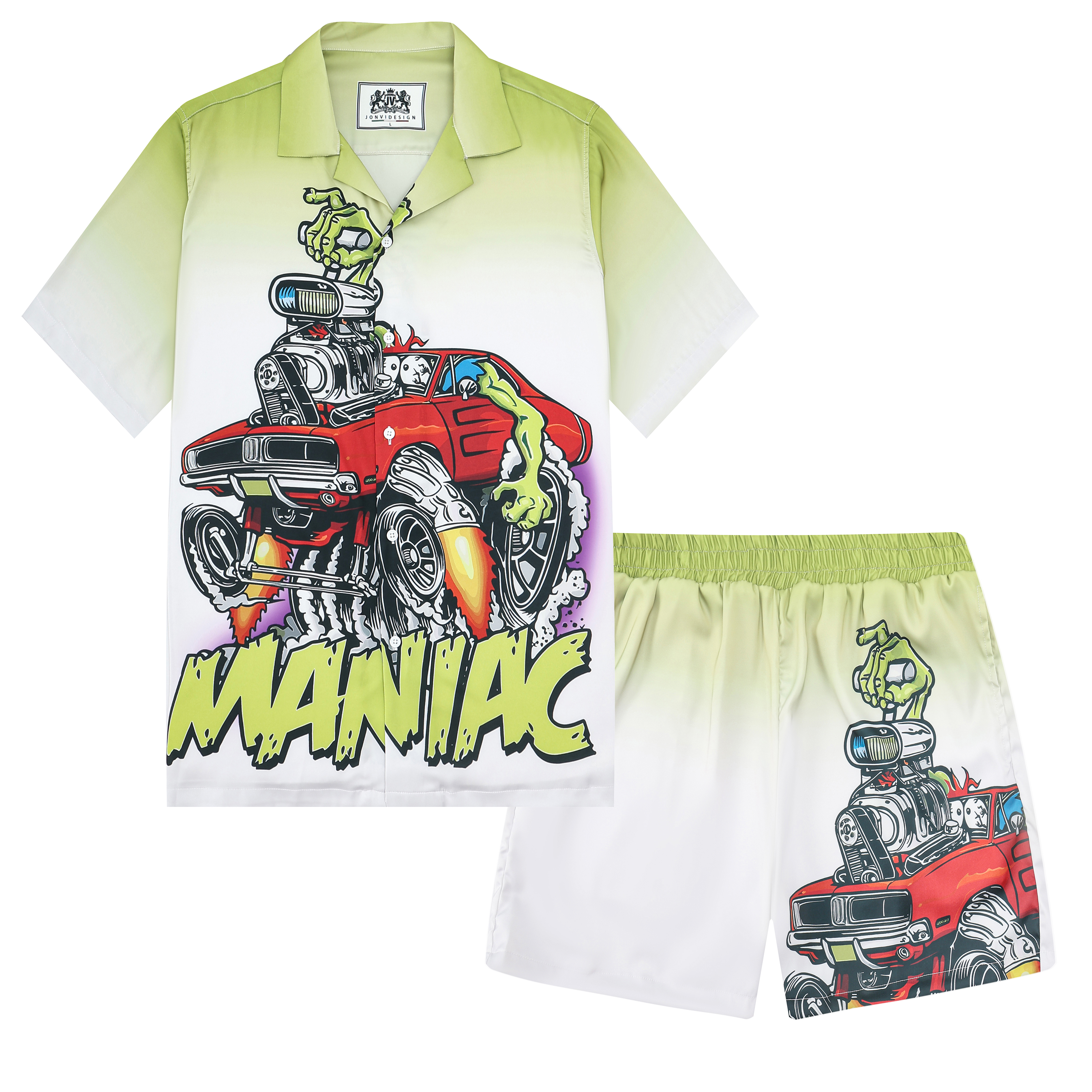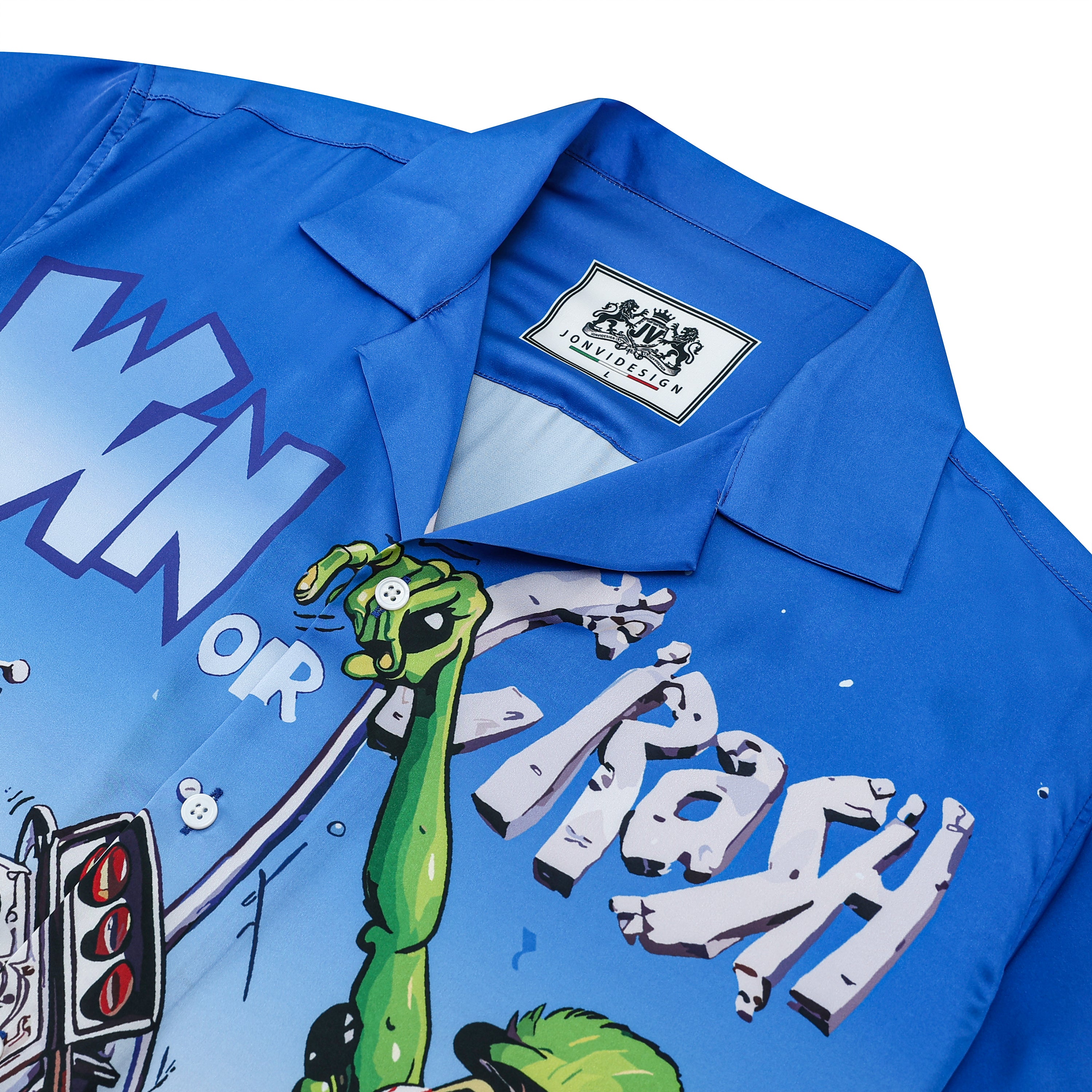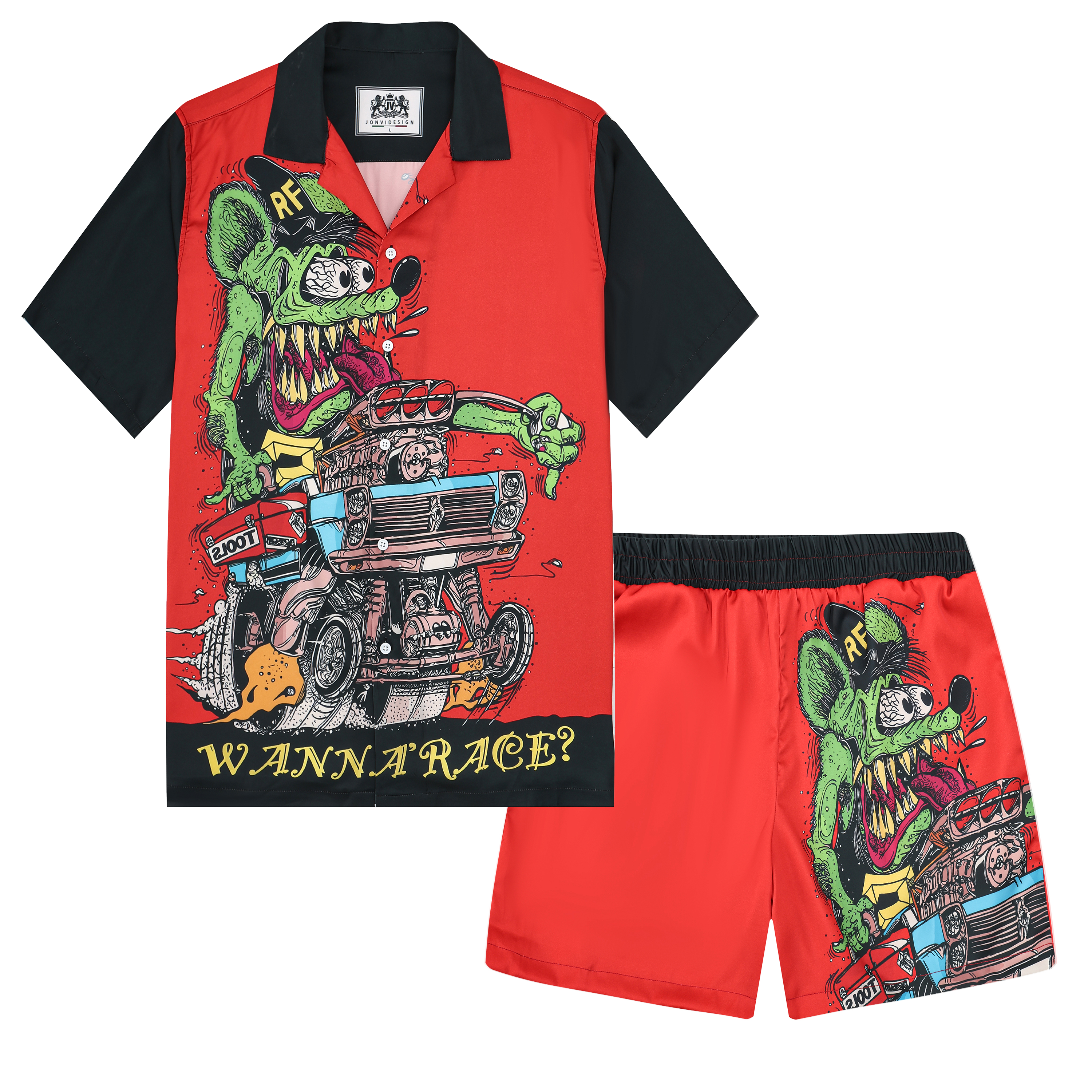 Black And Green Color Block Mouse Print Camp Collar Short Sleeve Shirt For Men$43.99 USD$69.00 USD