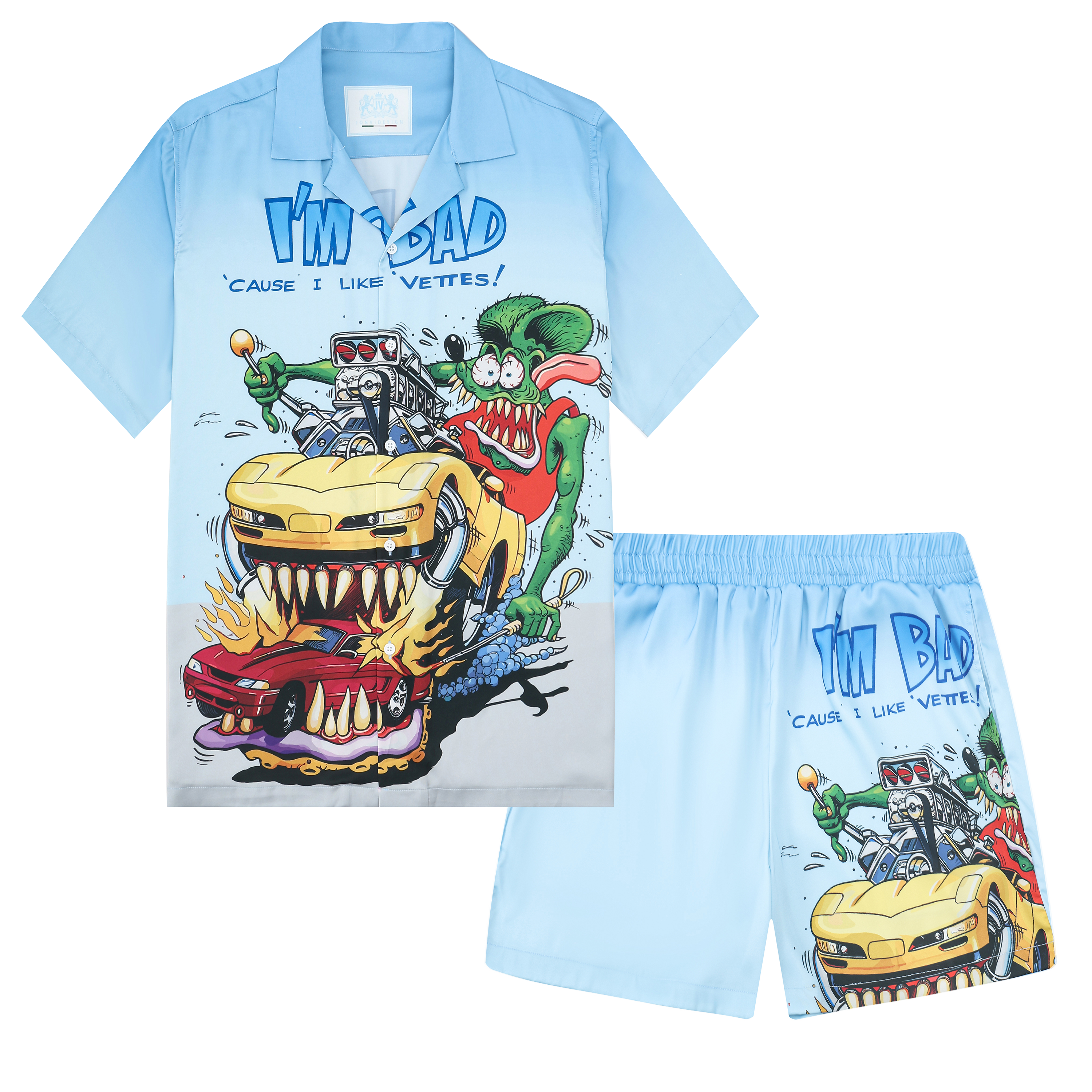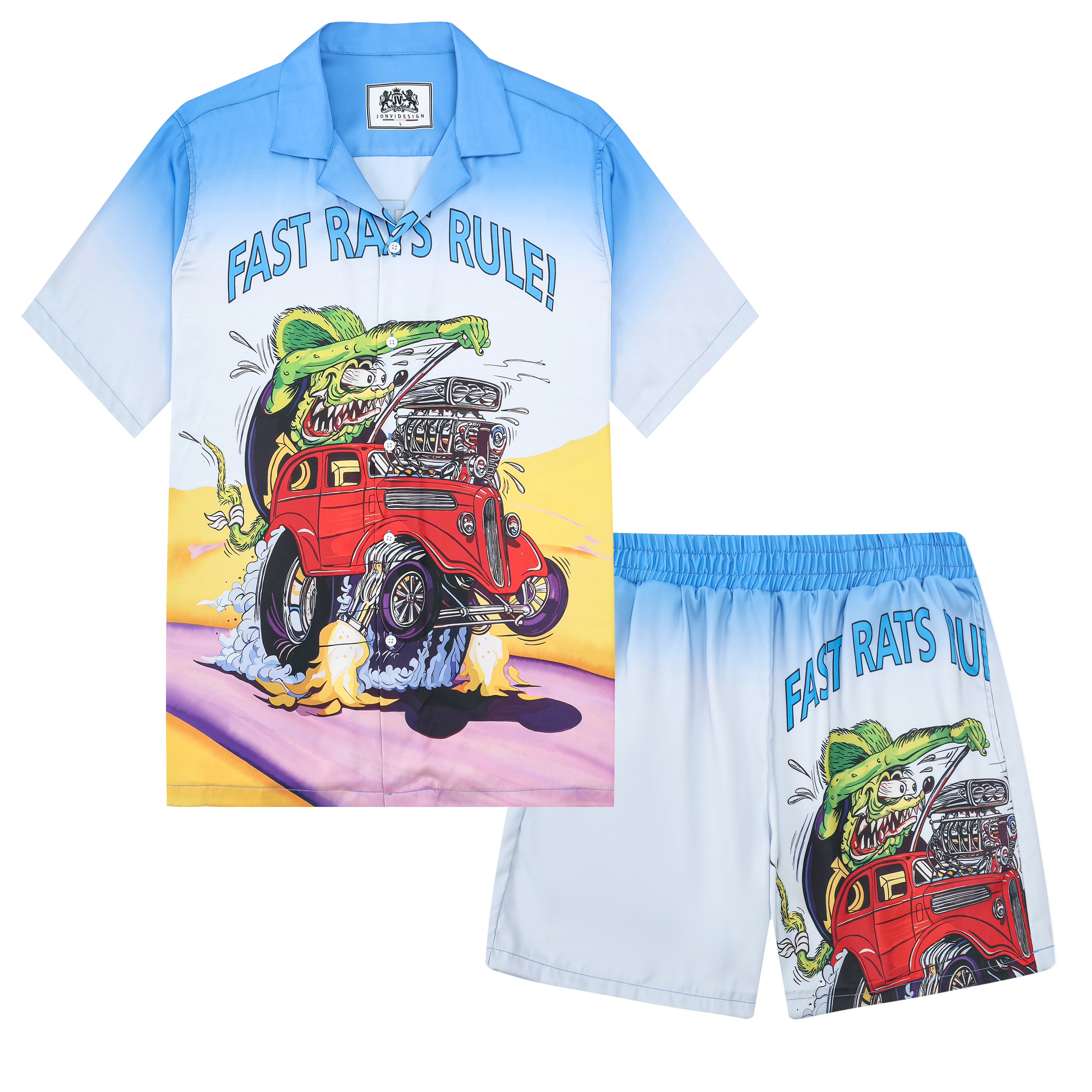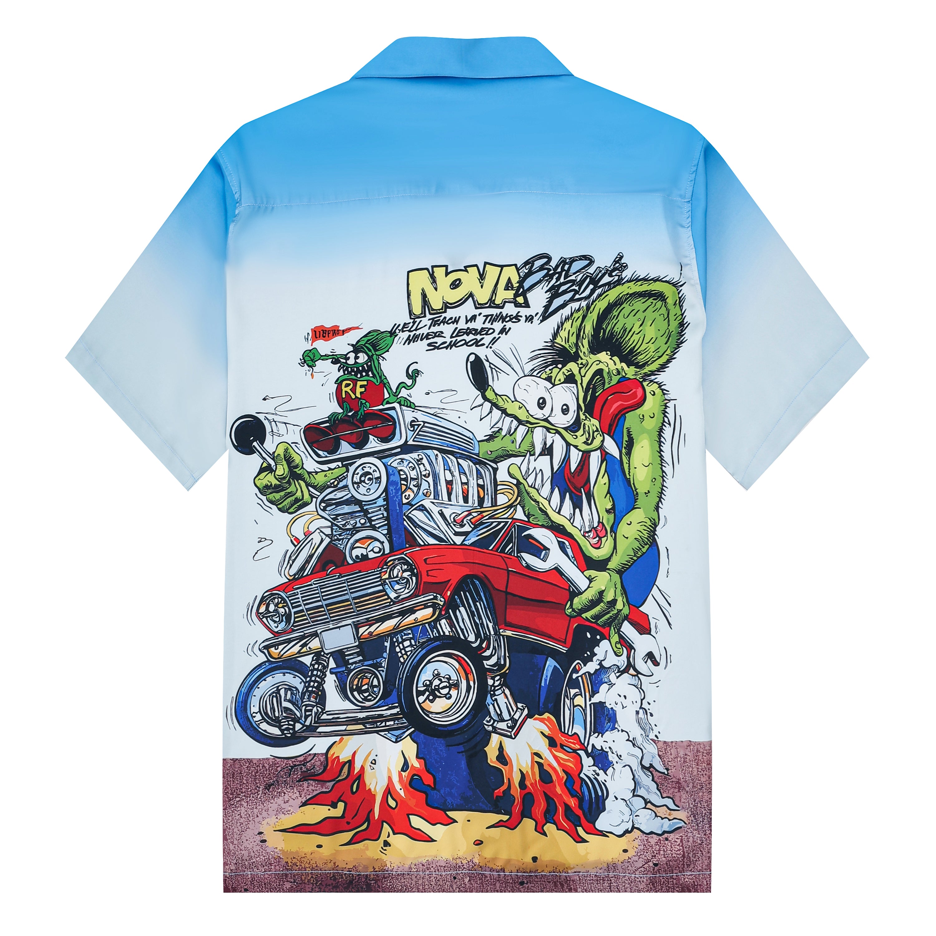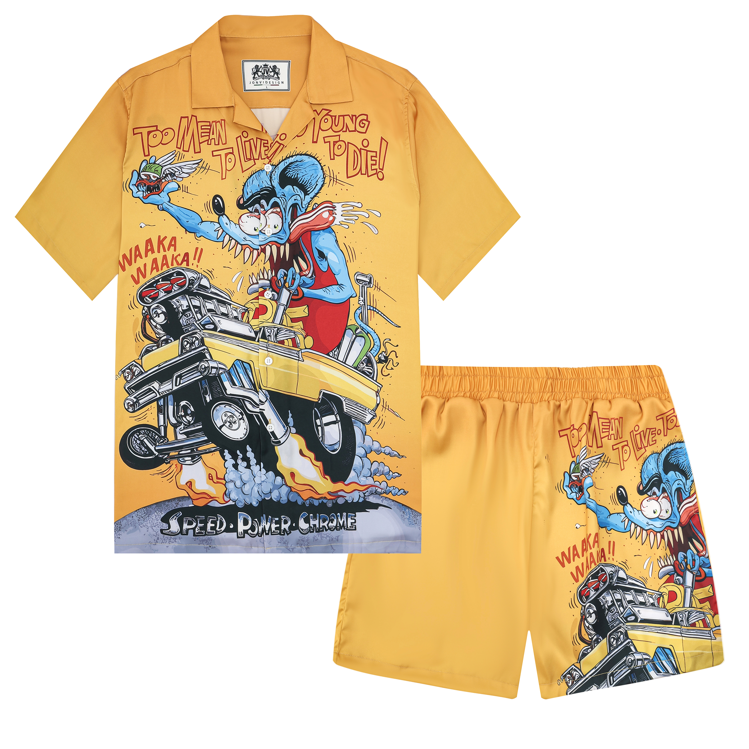 Black And Green Color Block Mouse Print Camp Collar Short Sleeve Shirt For Men$43.99 USD$69.00 USD