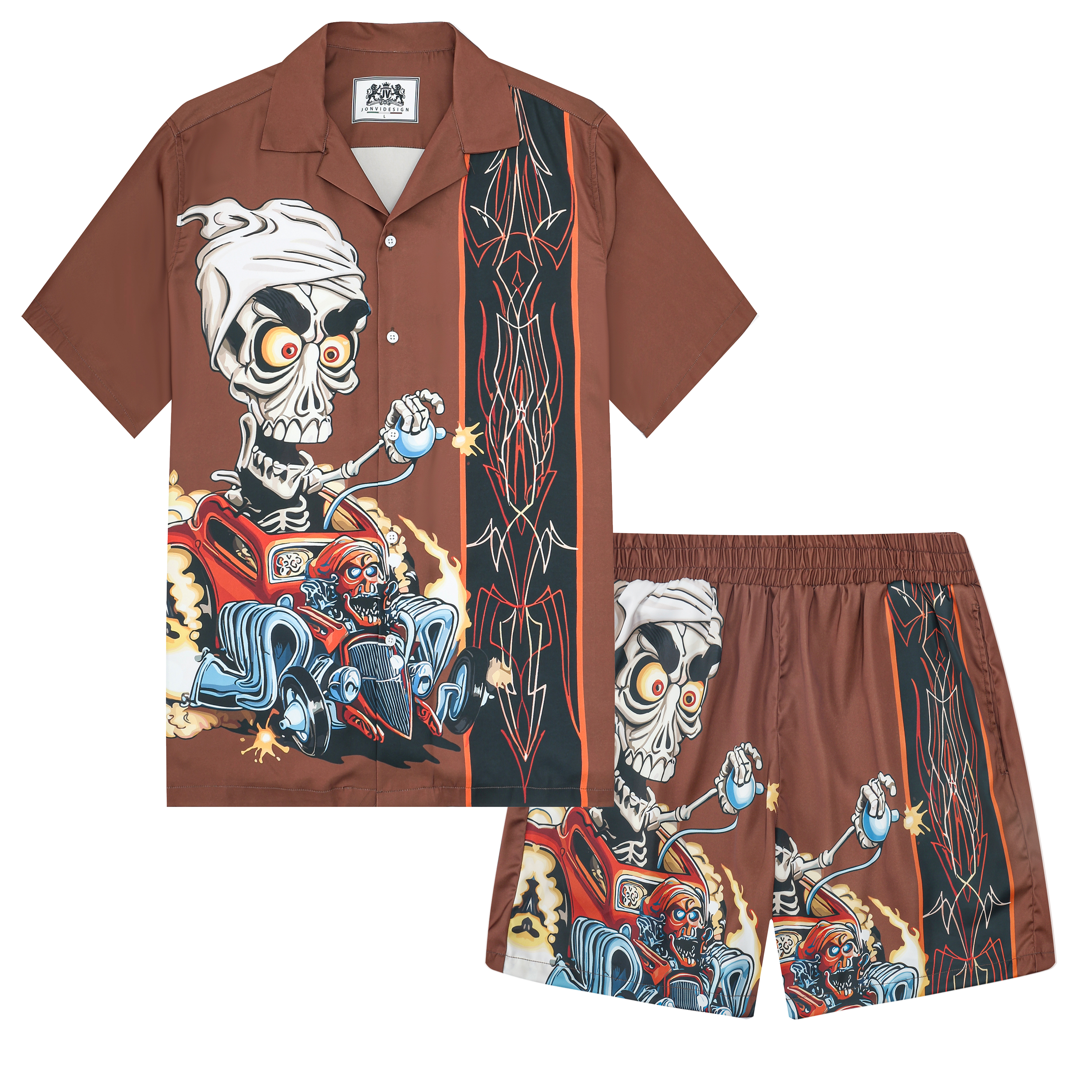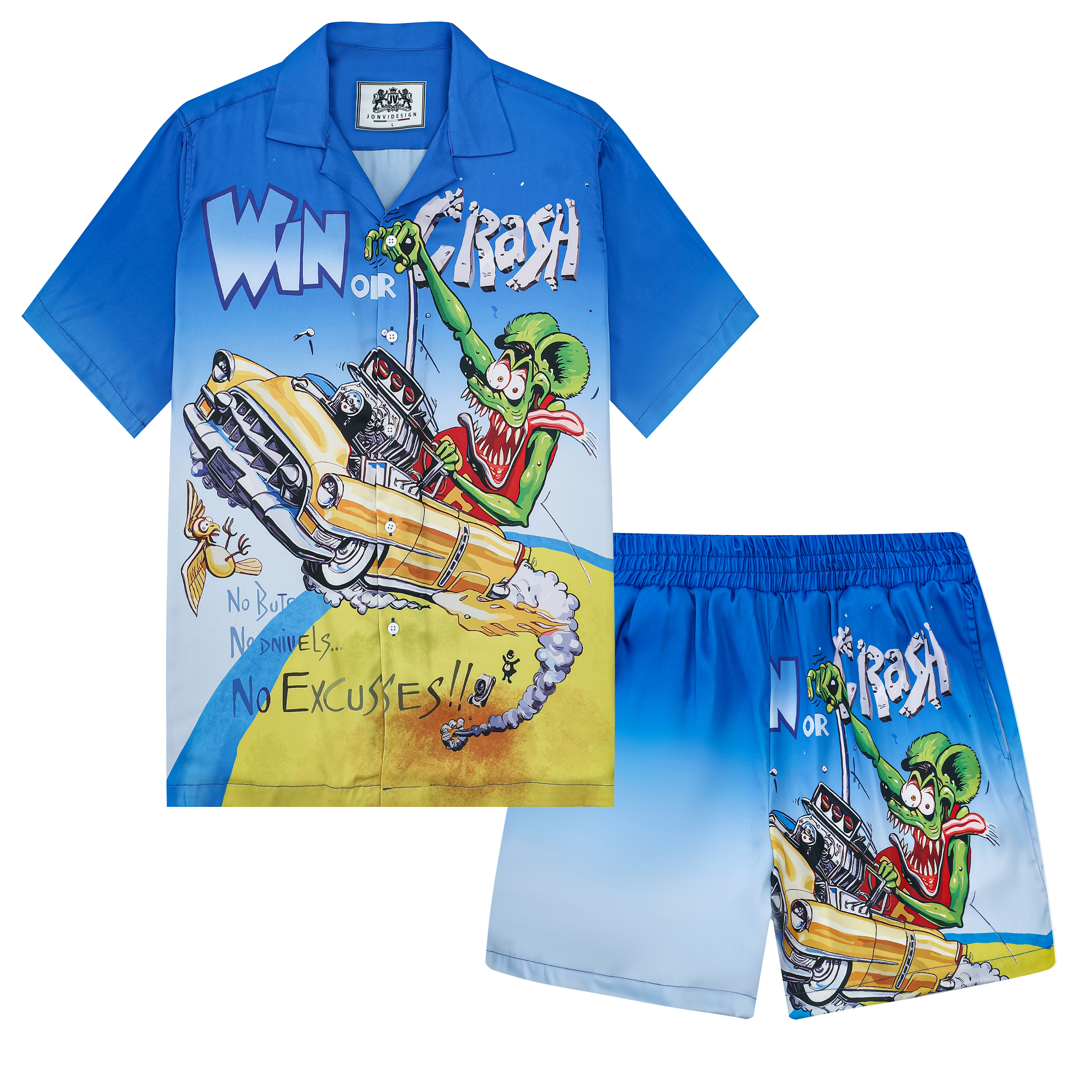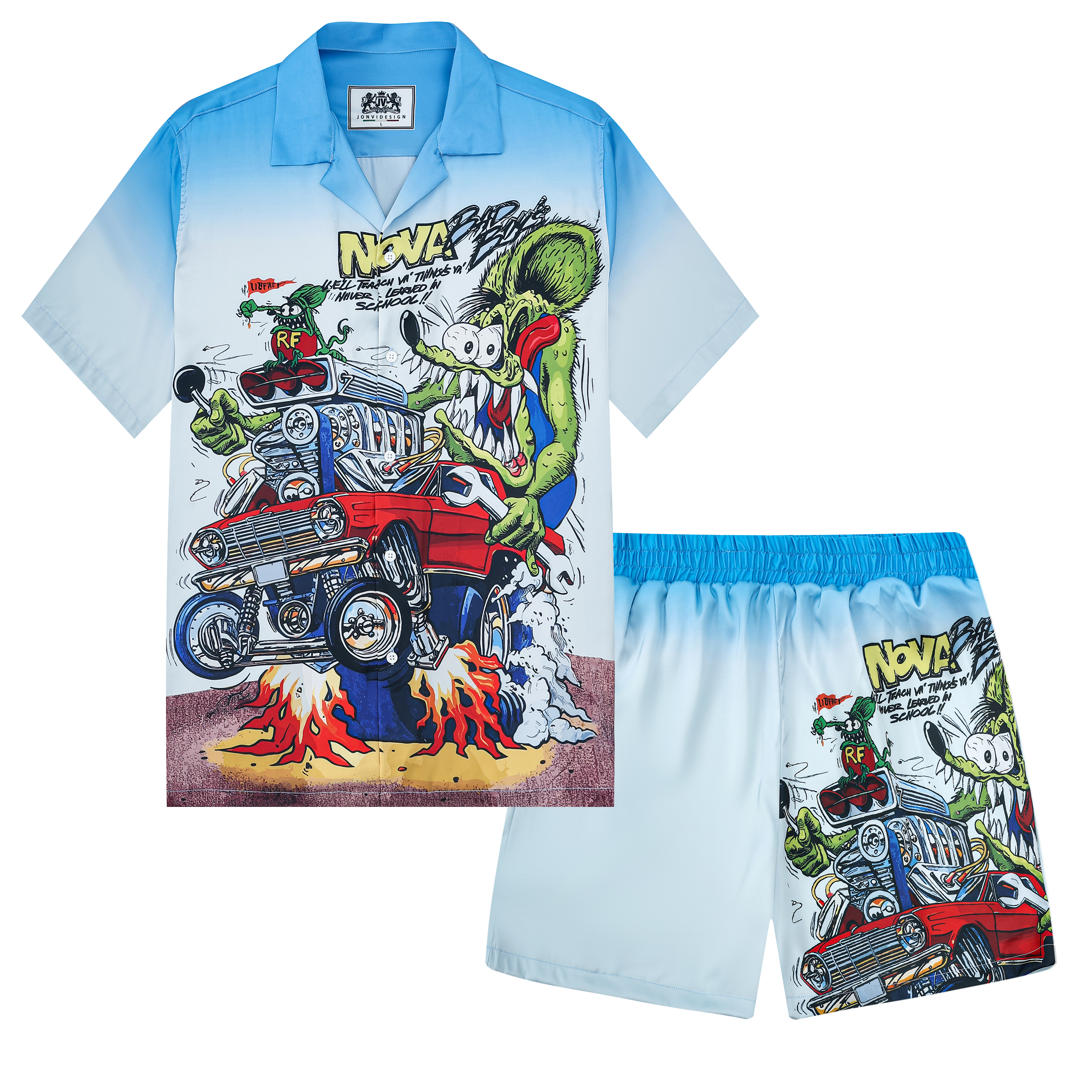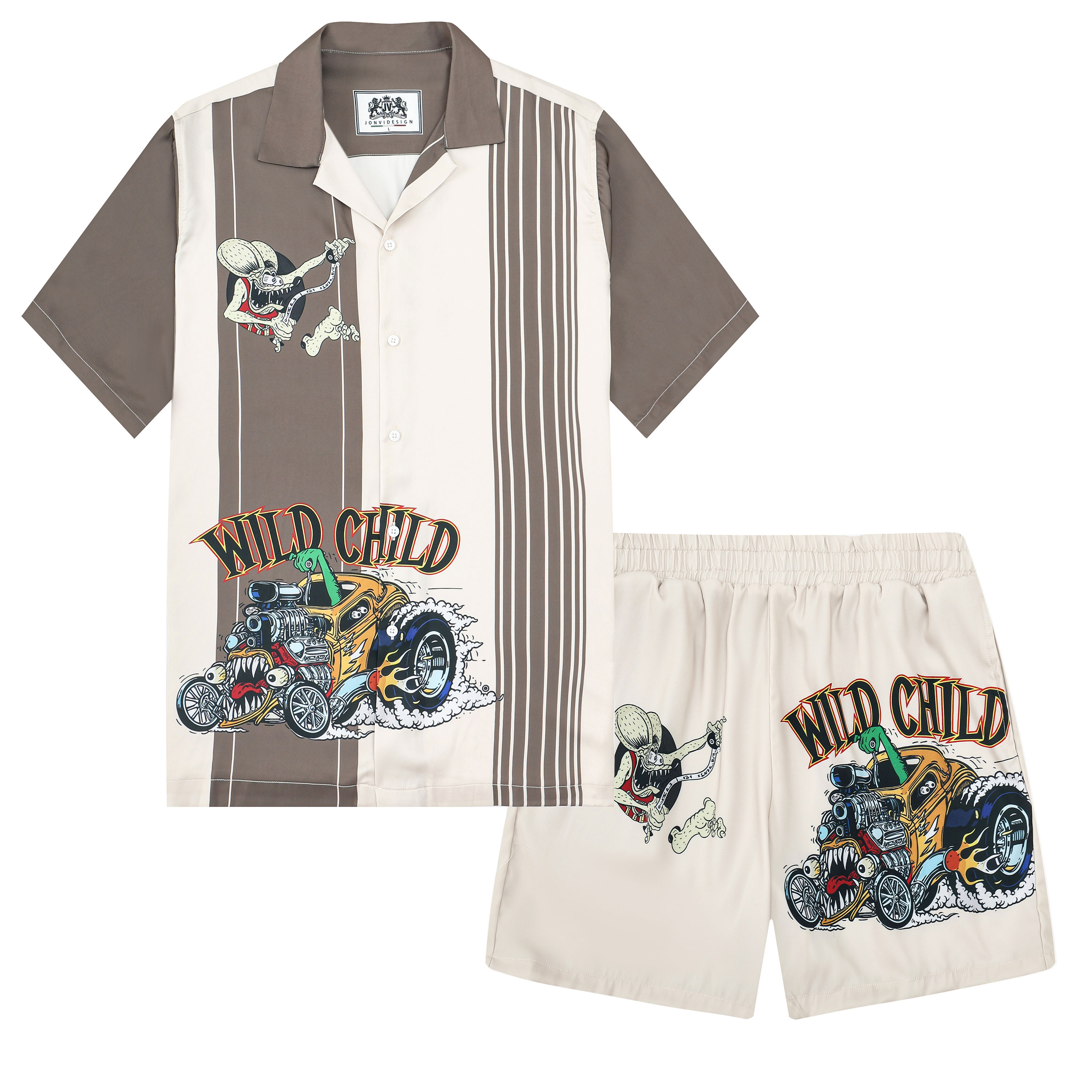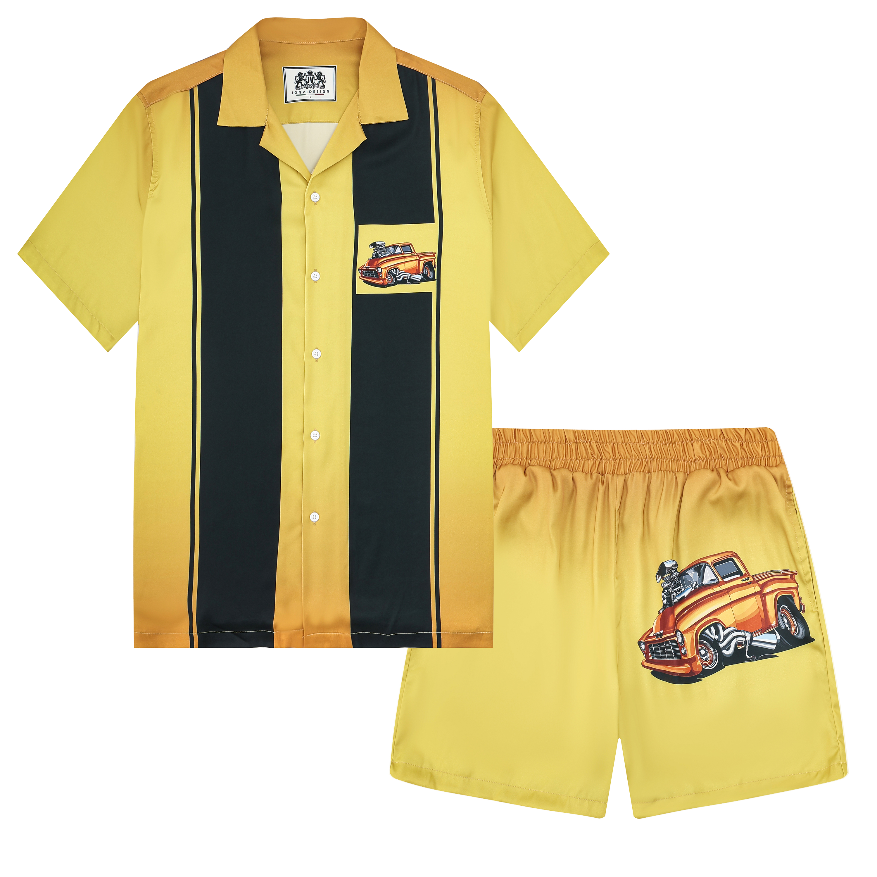 Black And Green Color Block Mouse Print Camp Collar Short Sleeve Shirt For Men$43.99 USD$69.00 USD