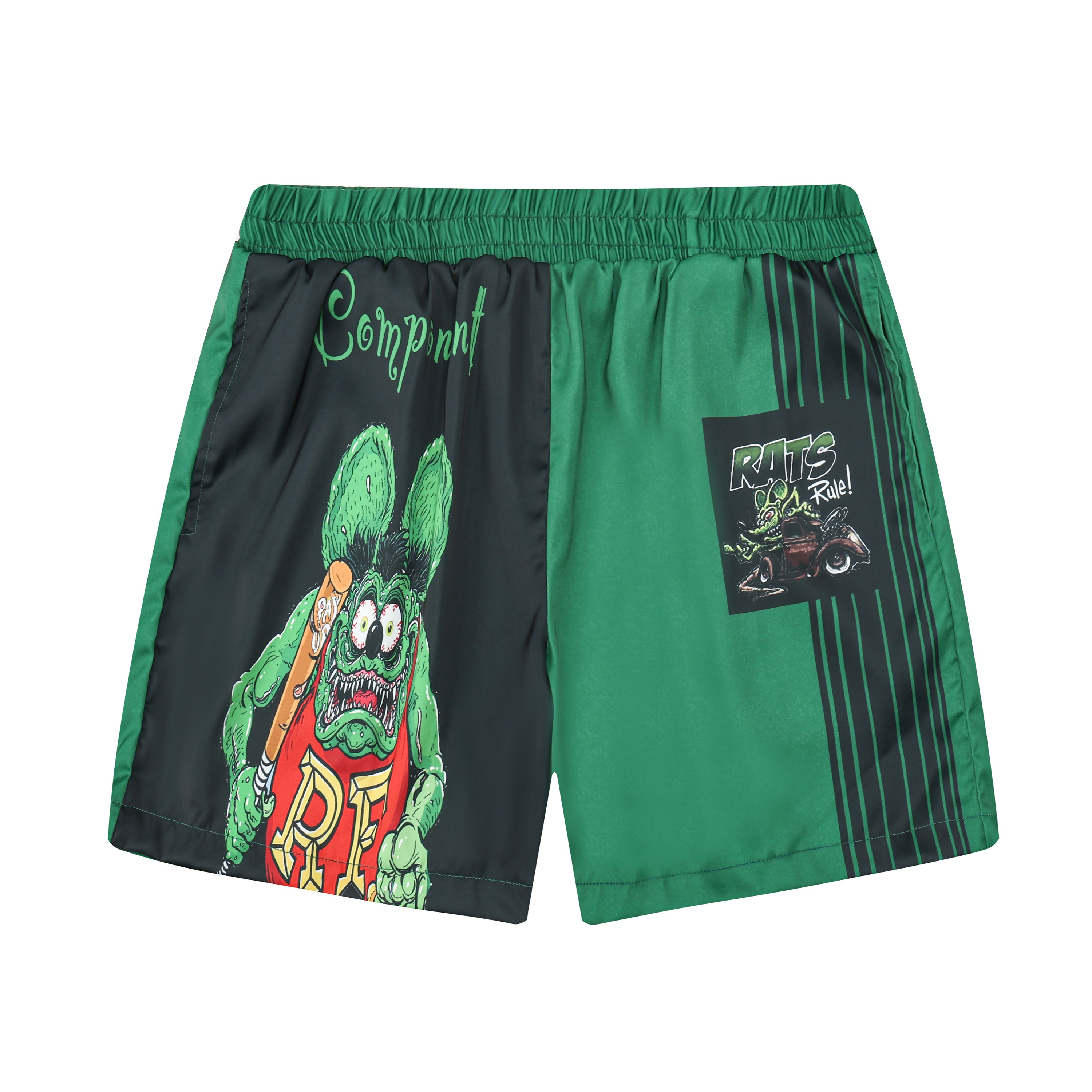 Black And Green Color Block Mouse Print Elastic Waistband Summer Casual Shorts$38.99 USD$50.00 USD