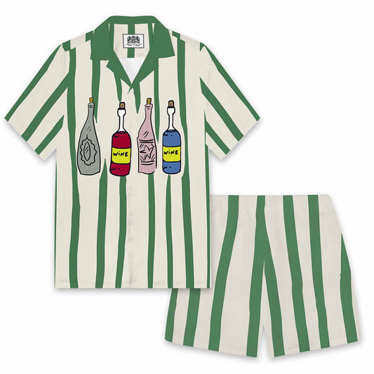 Funny Red Wine Bottle Print Camp Collar Short-Sleeved Shirt