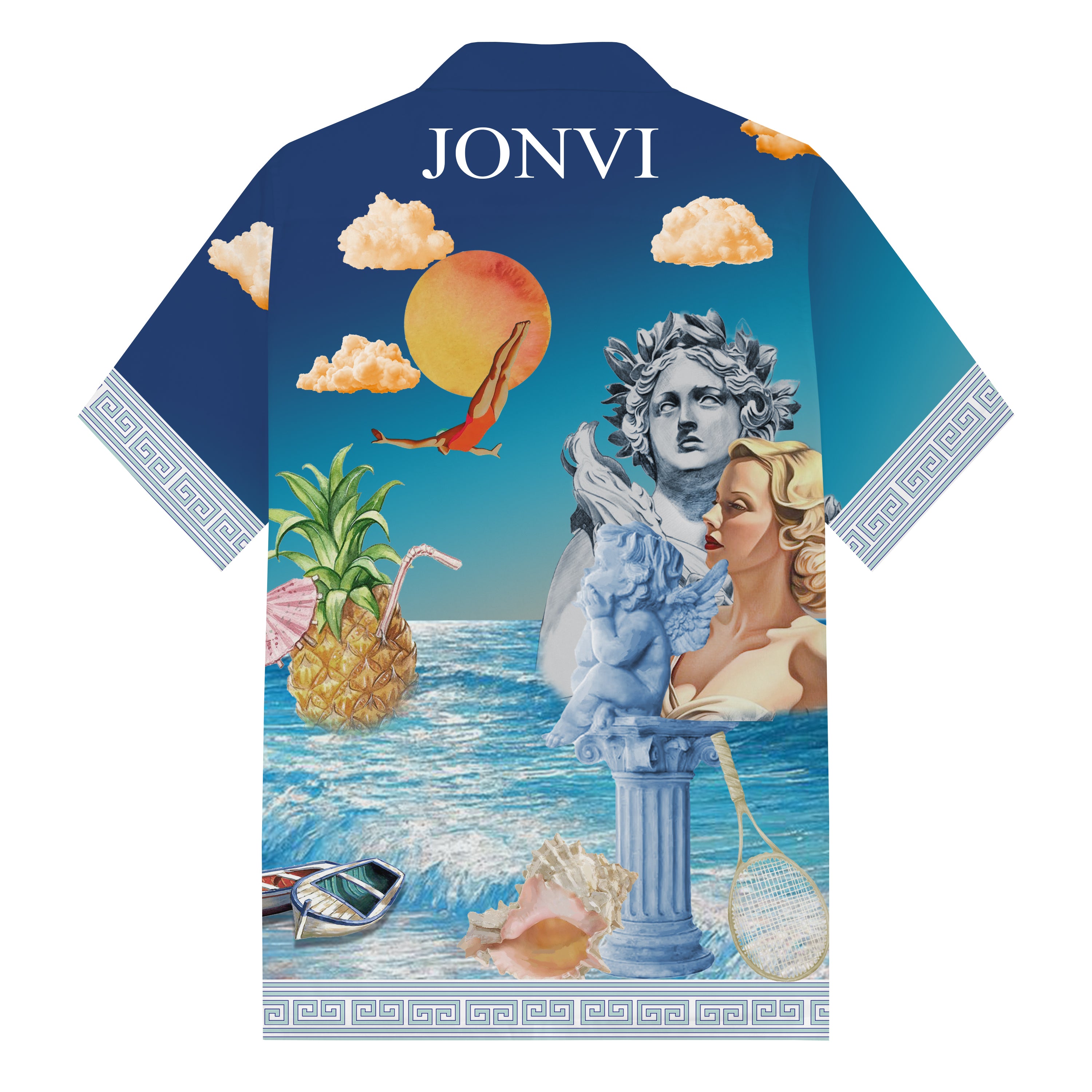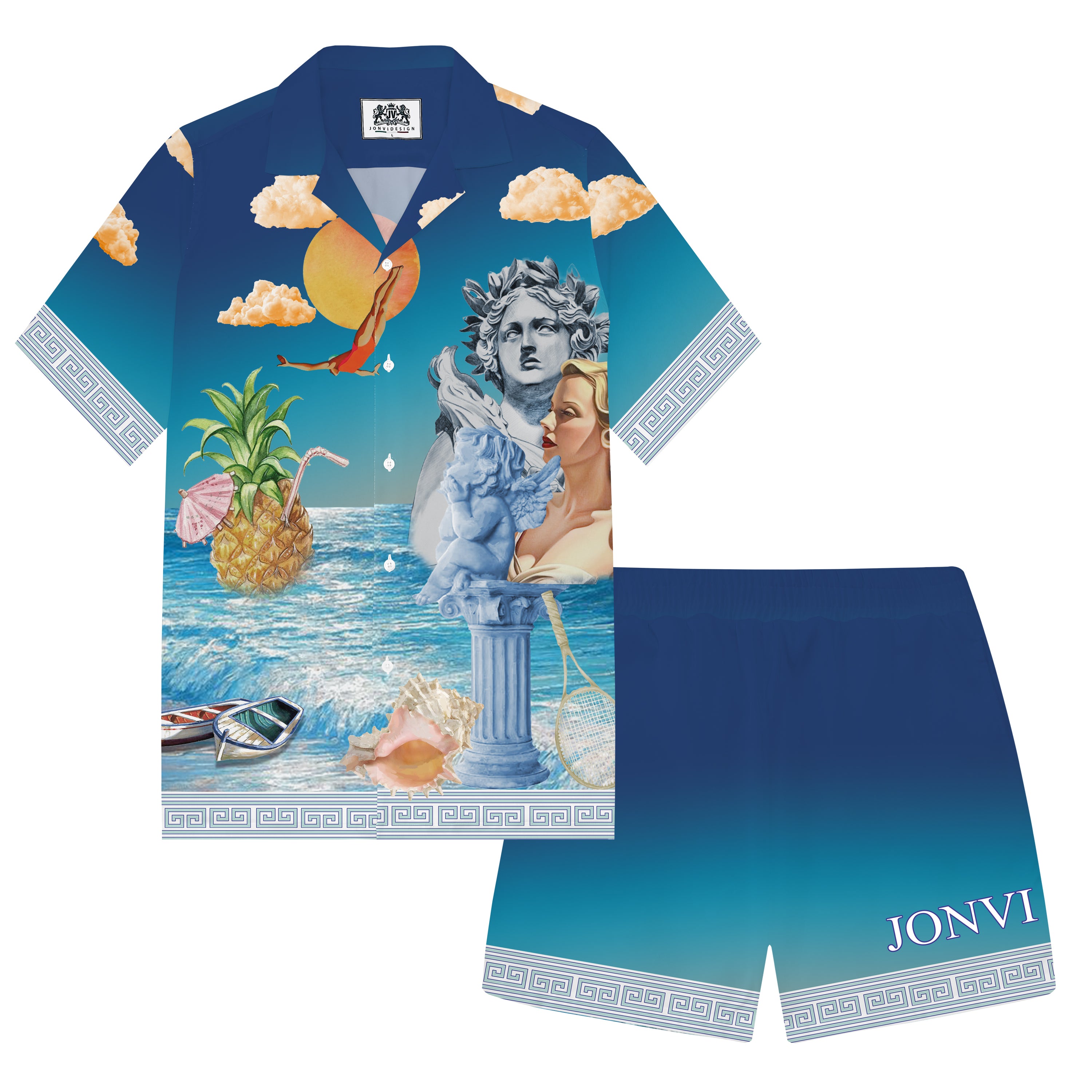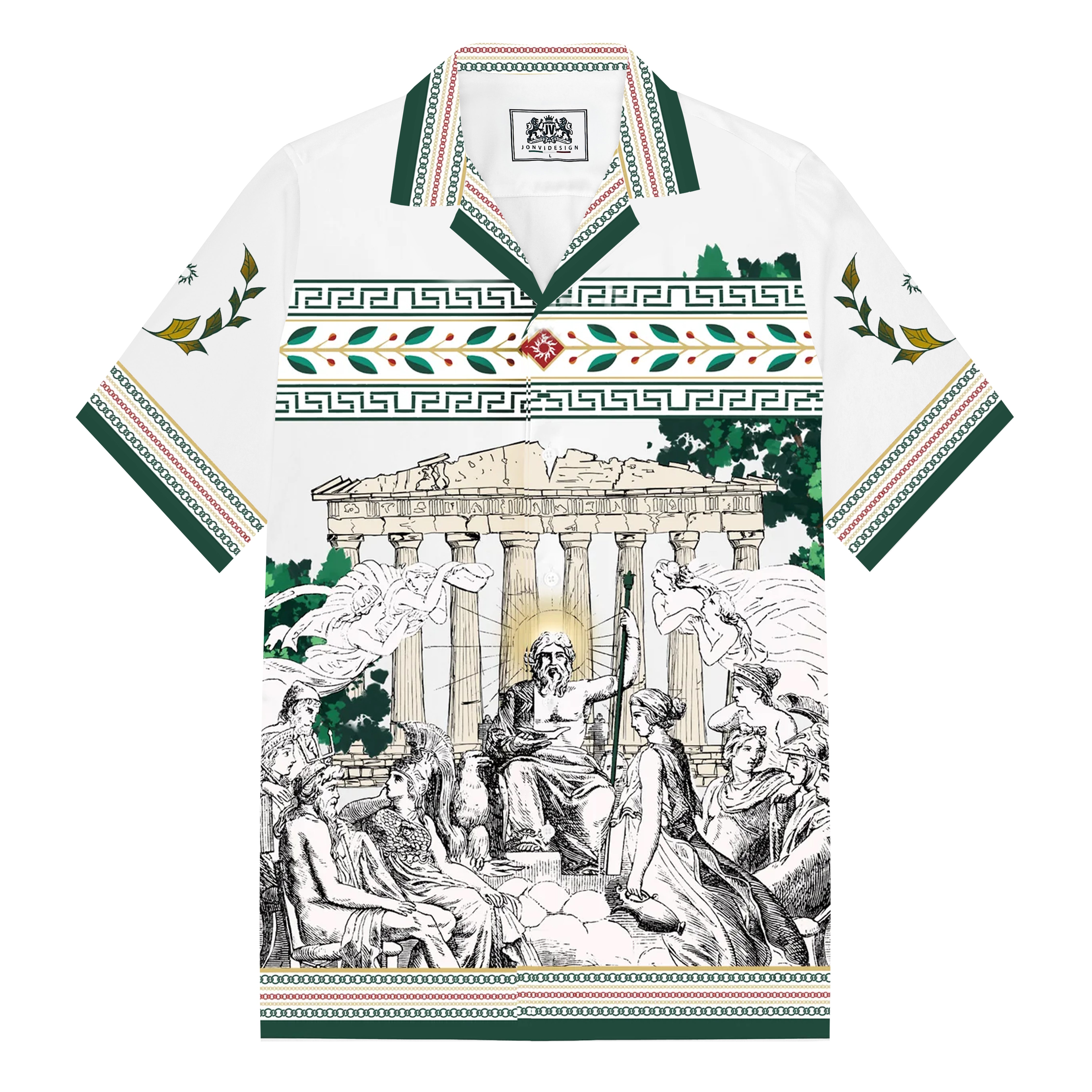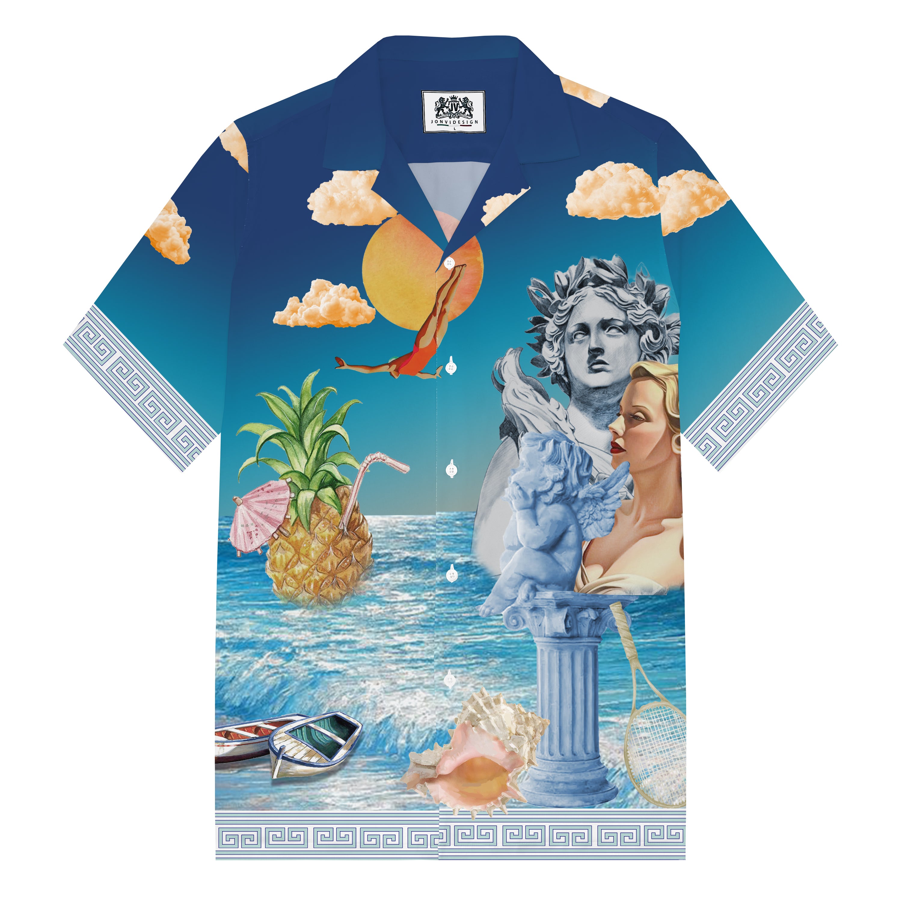 Summer Holiday Style Ancient Greek Statue Print Camp Collar Short Sleeve Shirt$43.99 USD$69.00 USD