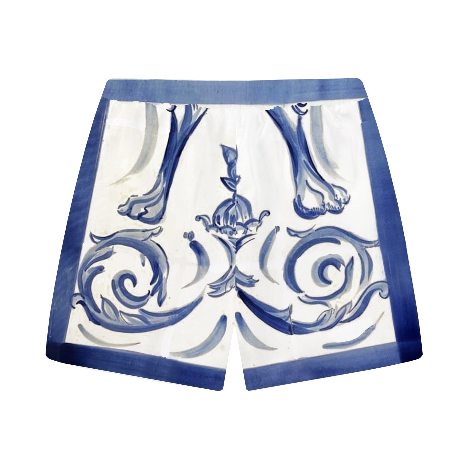 Little Angel Blue and White Porcelain Print Pattern Elastic Waistband Casual Shorts$38.99 USD$50.00 USD