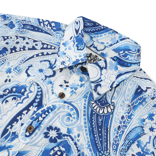Blue Paisley Short Sleeve Sports Shirt Festival Wear