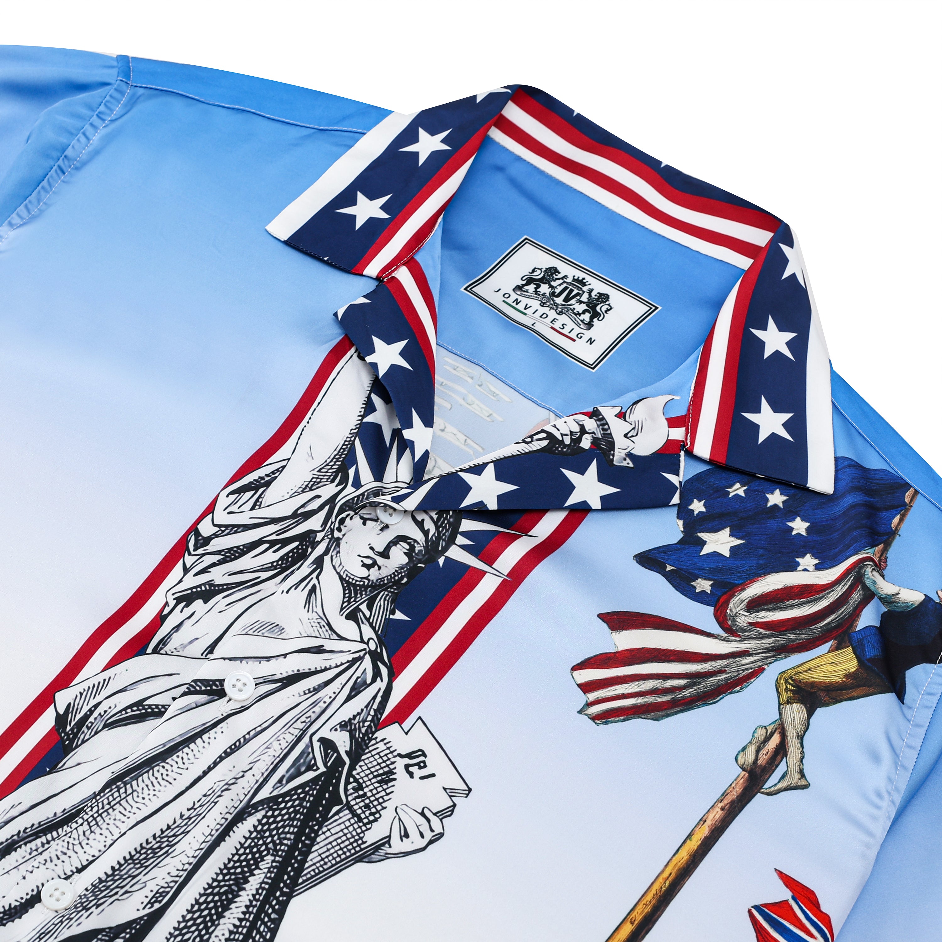 Mexican Painter Frida Personality Character Pattern Camp Collar Casual Shirt in Blue$43.99 USD$69.00 USD