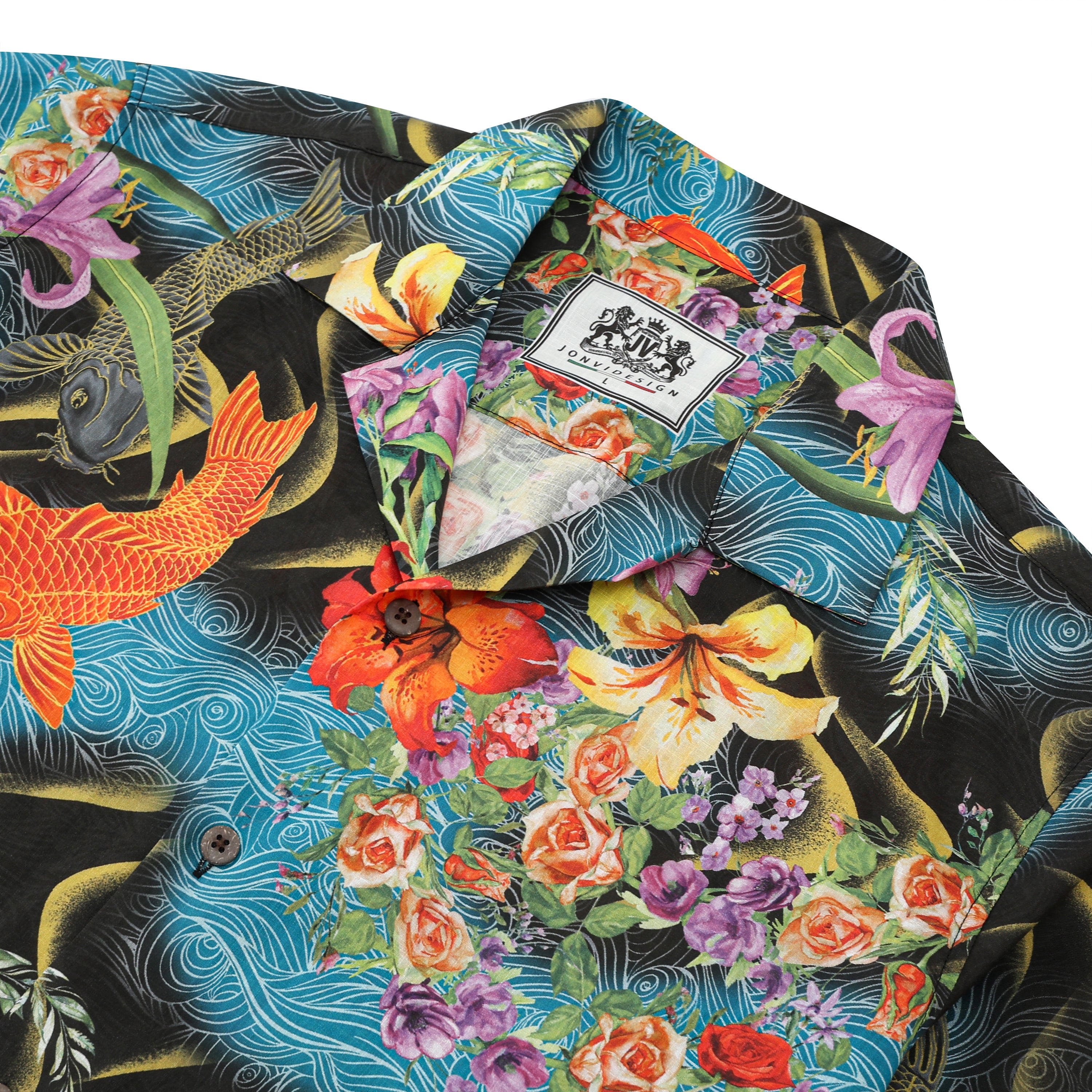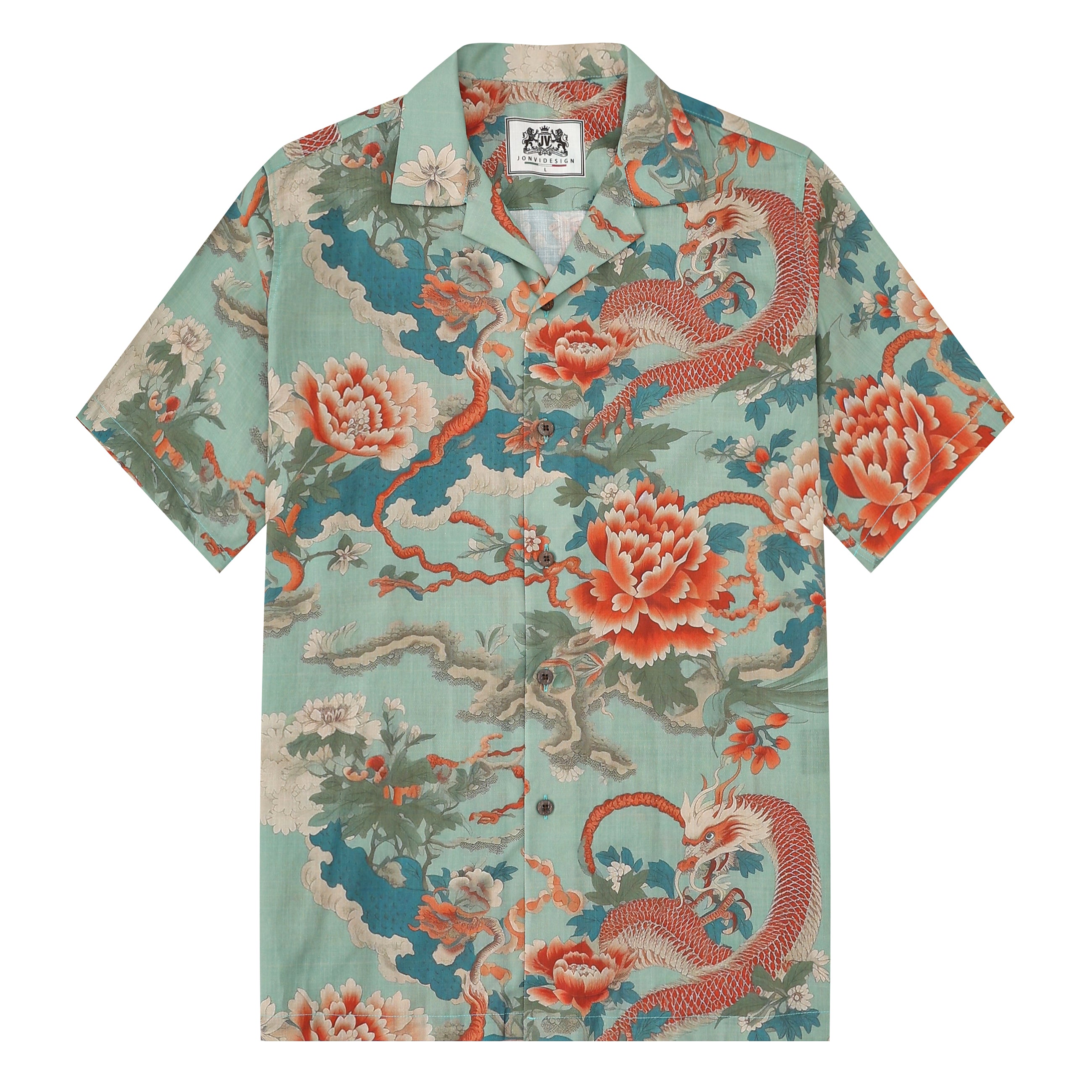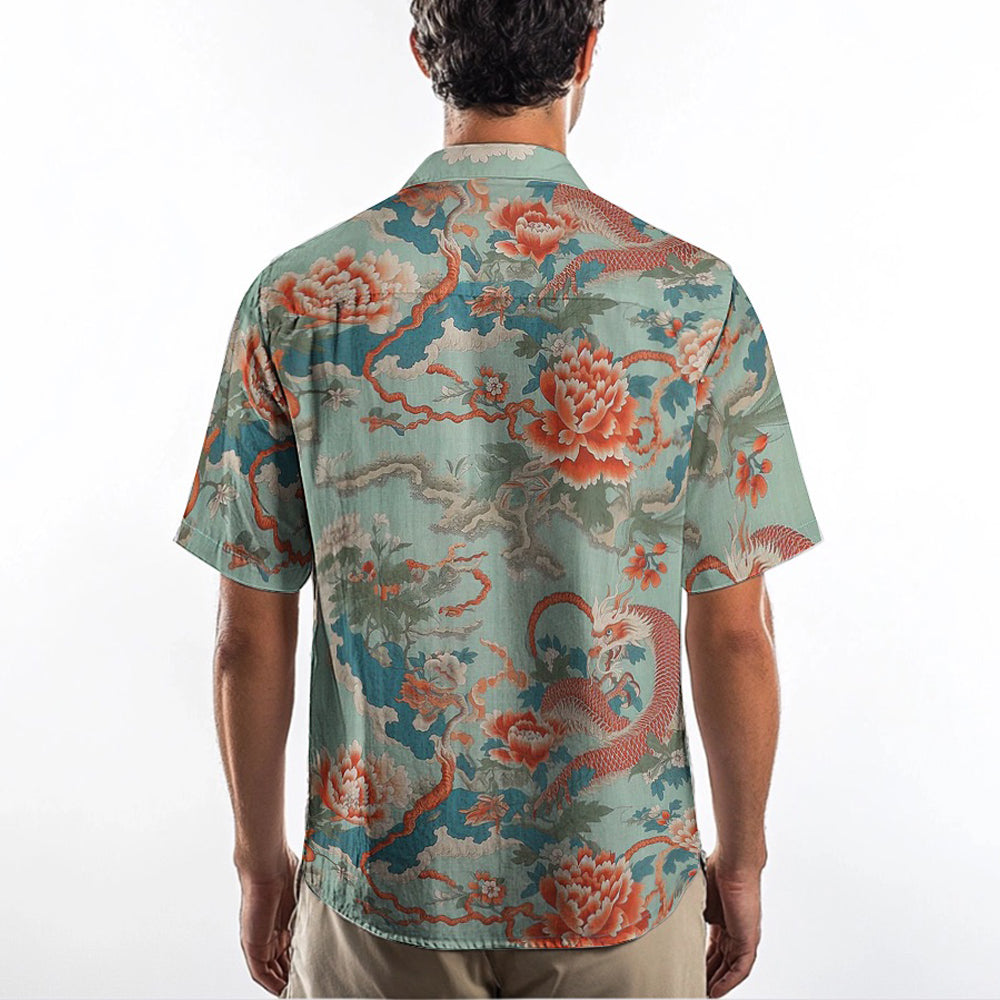 Golden Dragon The Great Wave off Kanagawa Print Camp Collar Short Sleeve Shirt$43.99 USD$69.00 USD