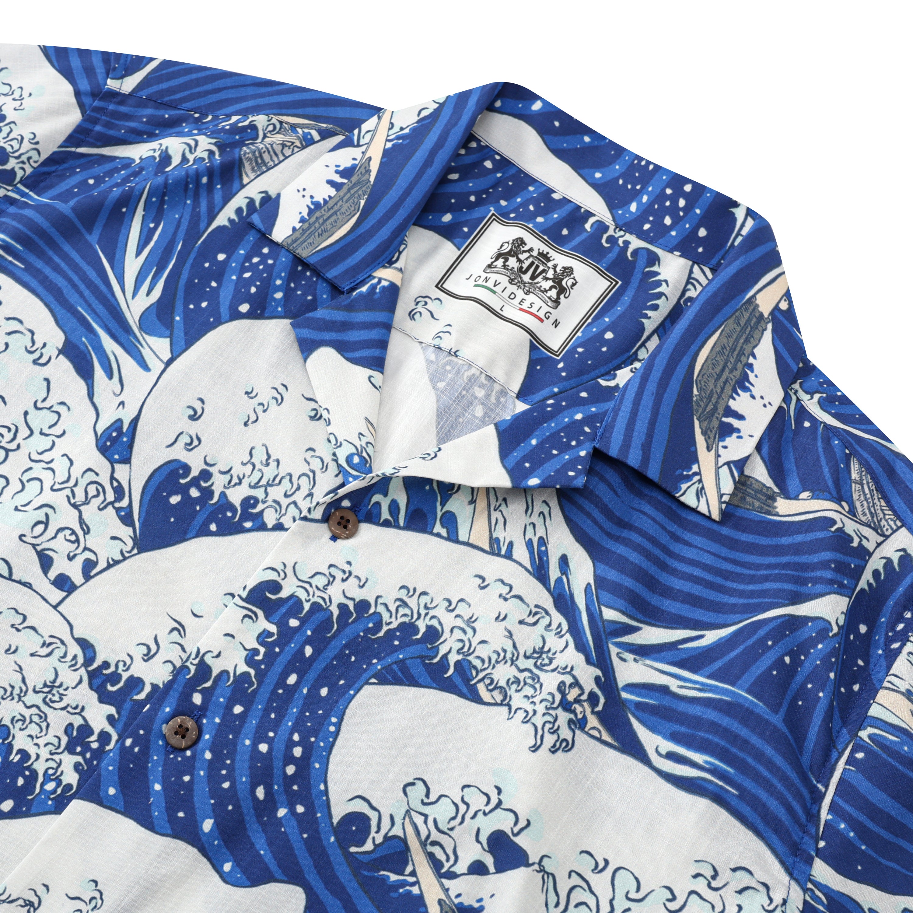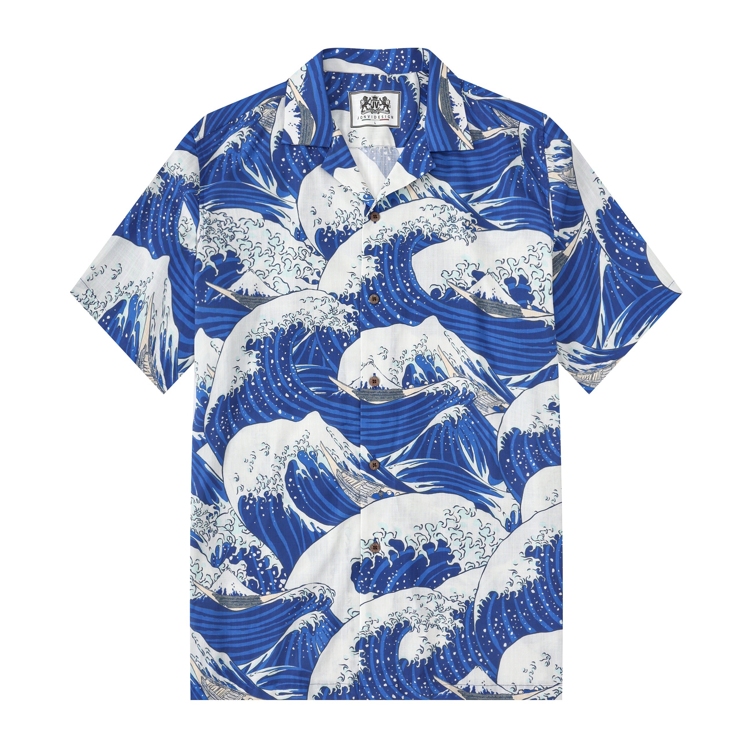 Ukiyoe The Great Wave off Kanagawa Gundam Fighter Print Camp Collar Short Sleeve Shirt$43.99 USD$69.00 USD