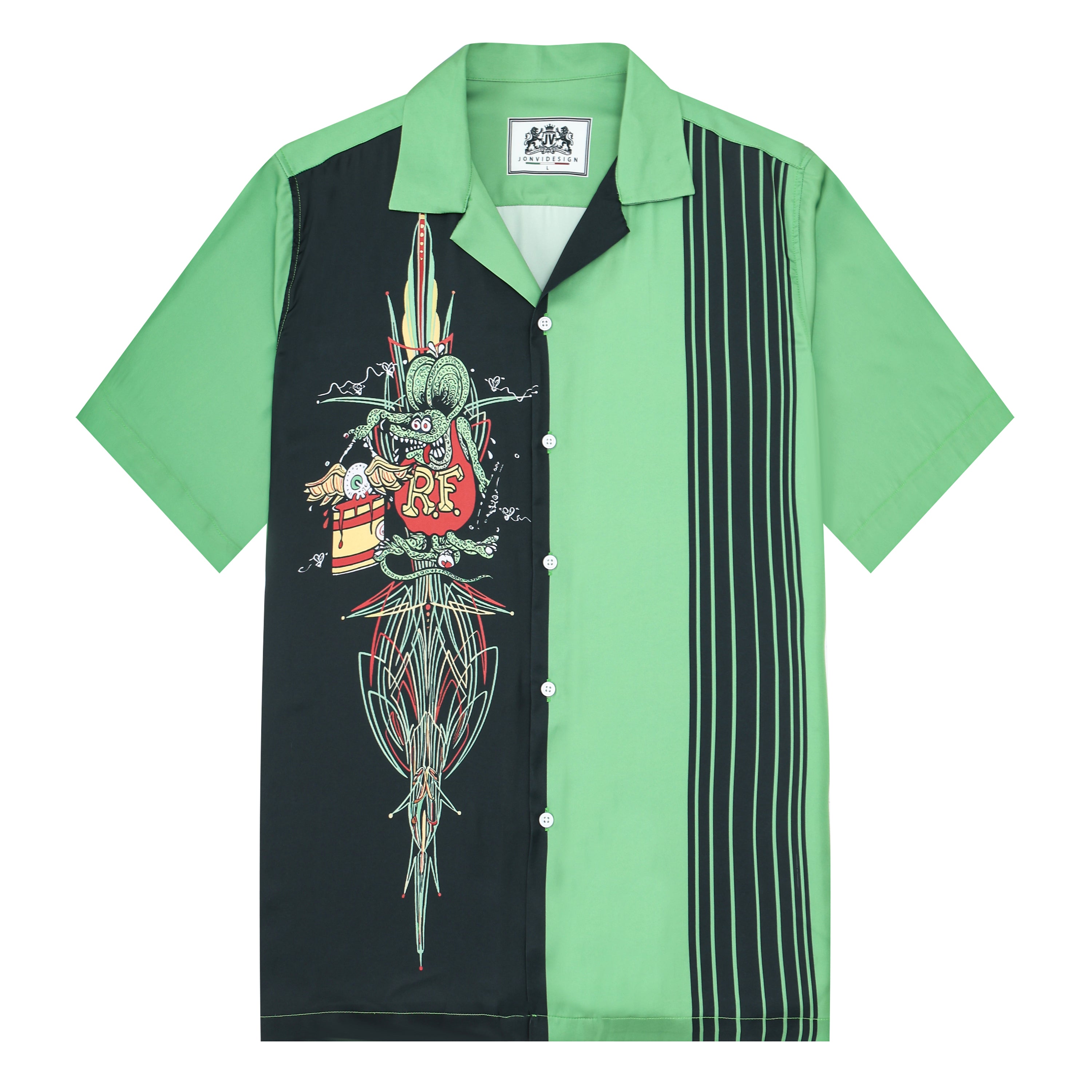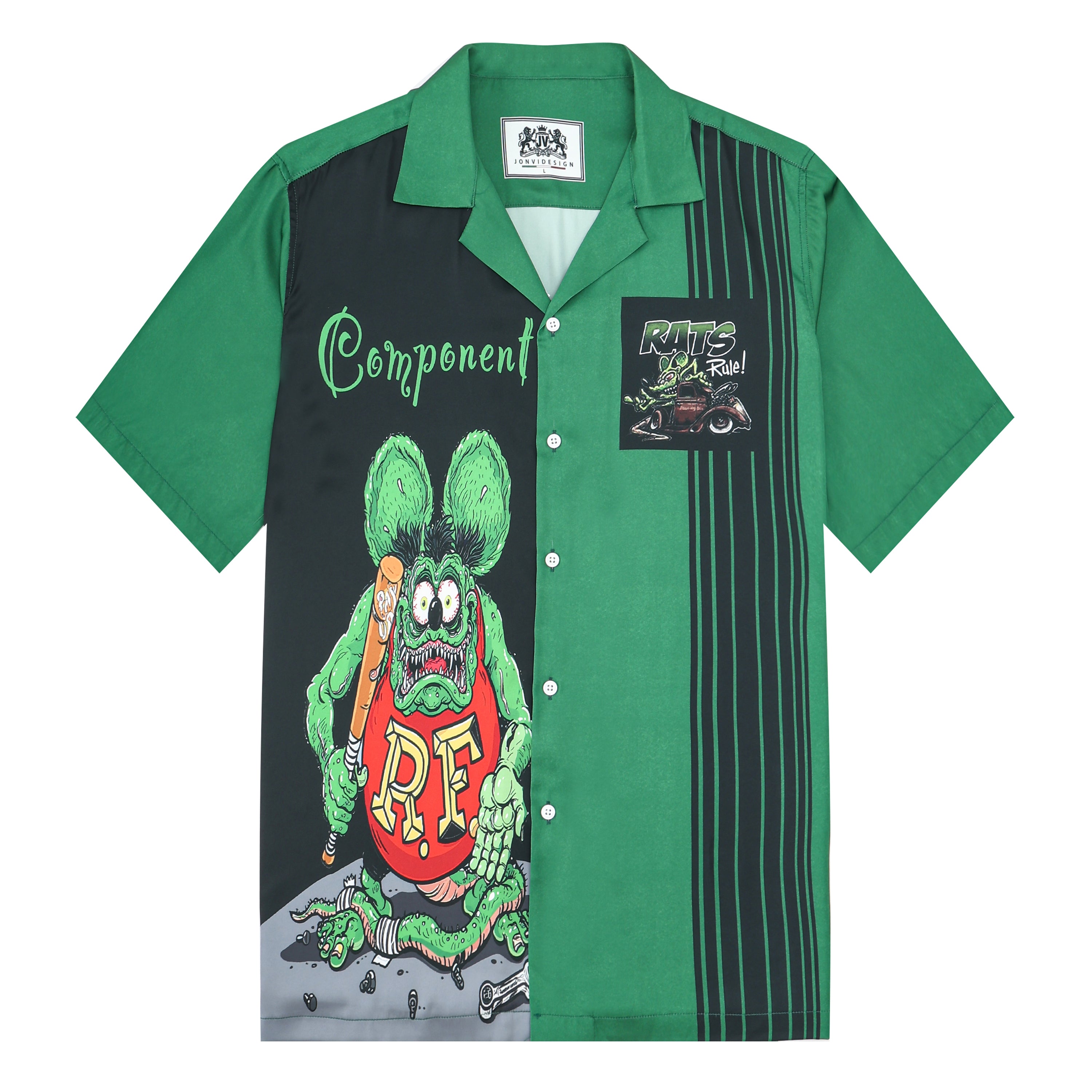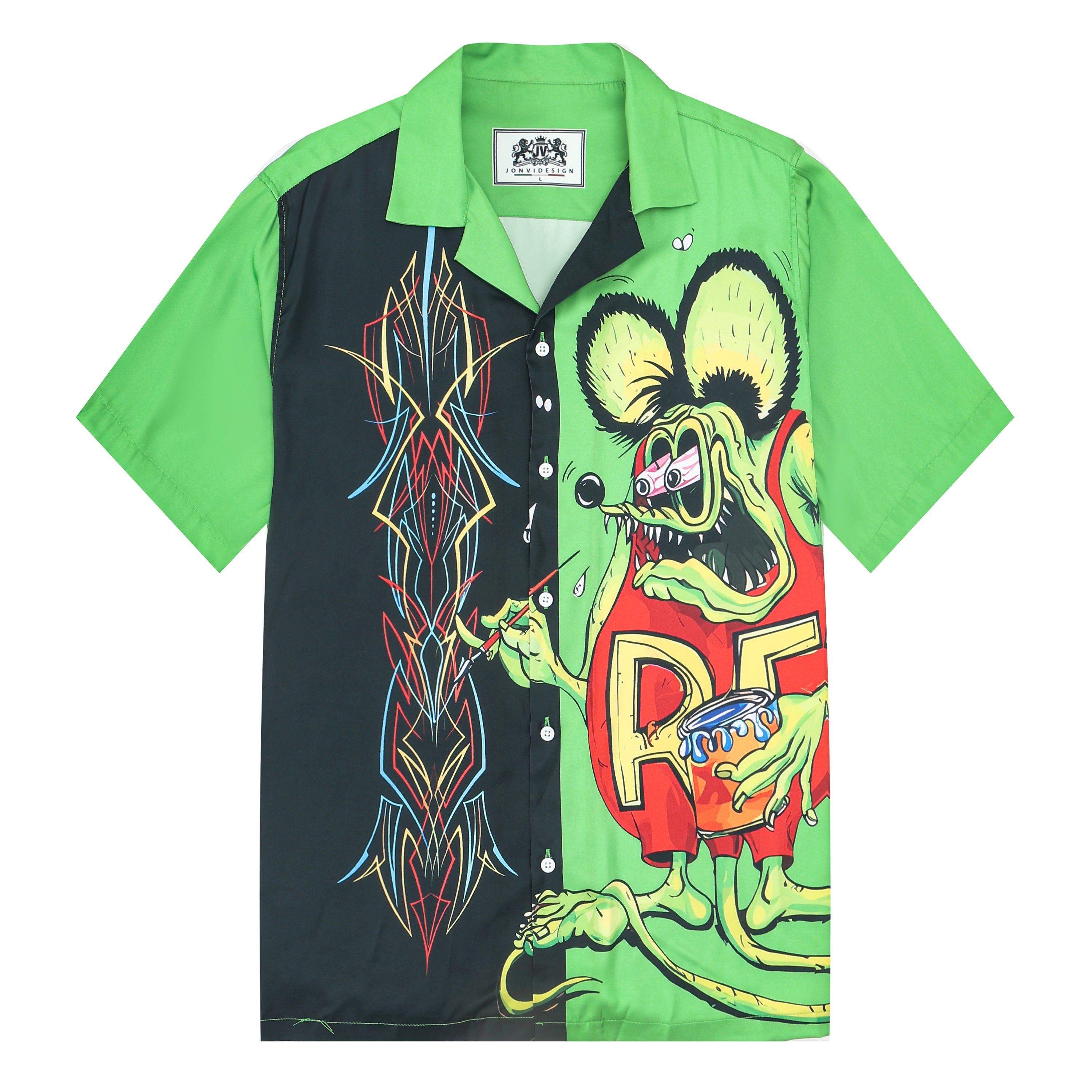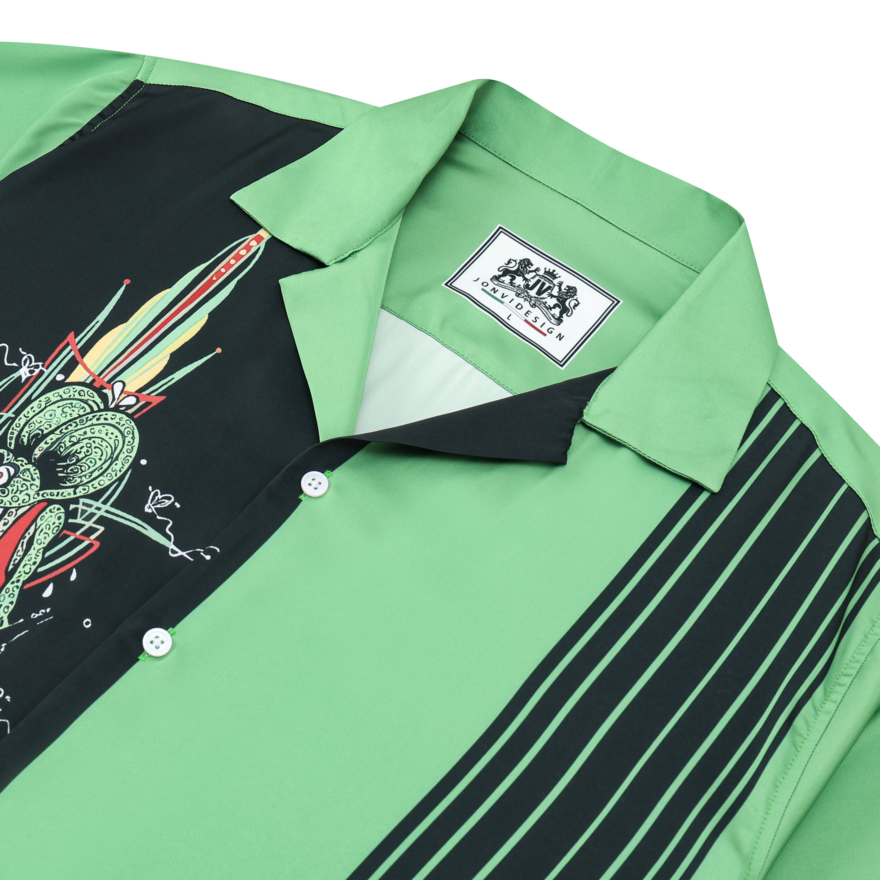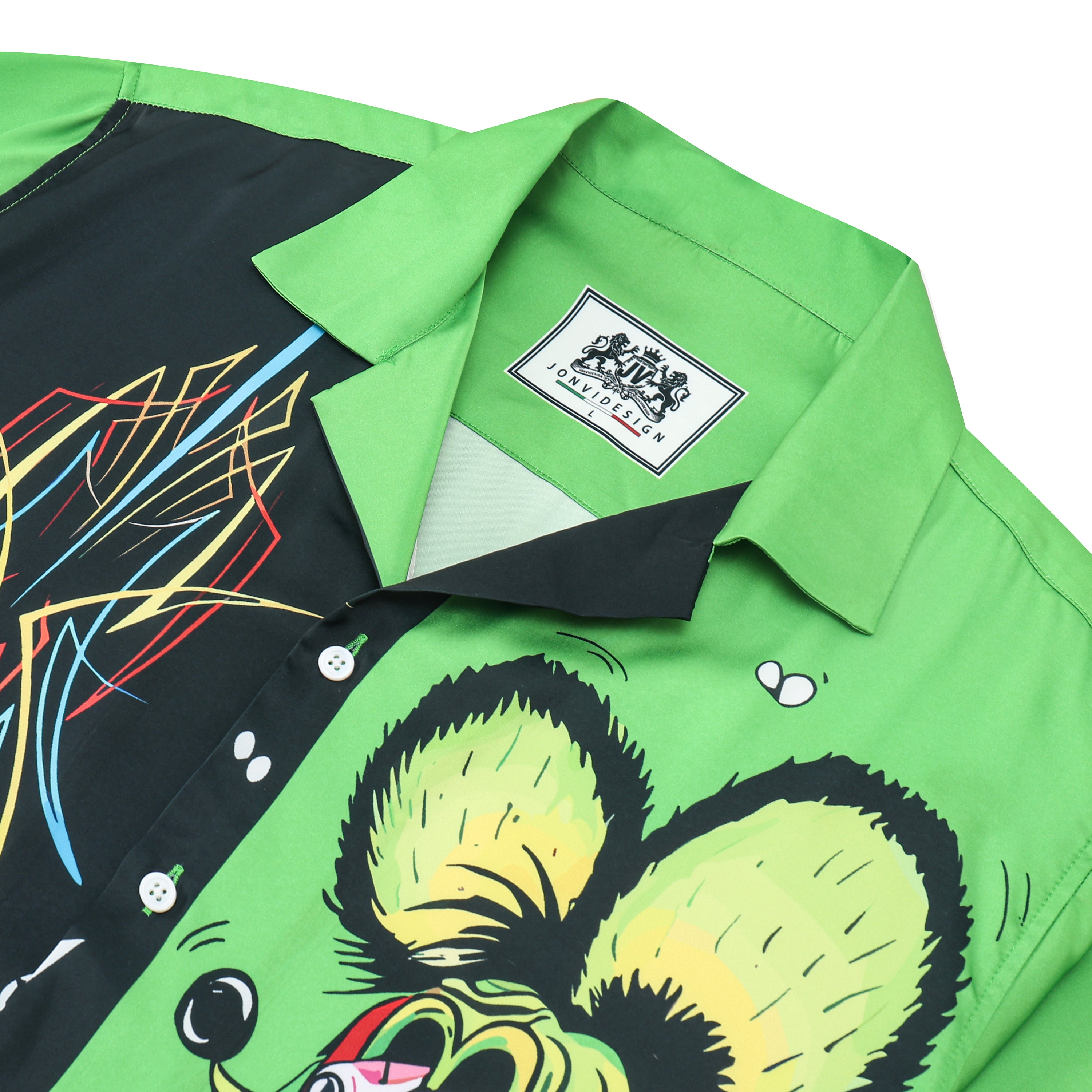 Black And Green Color Block Mouse Print Camp Collar Short Sleeve Shirt For Men$43.99 USD$69.00 USD