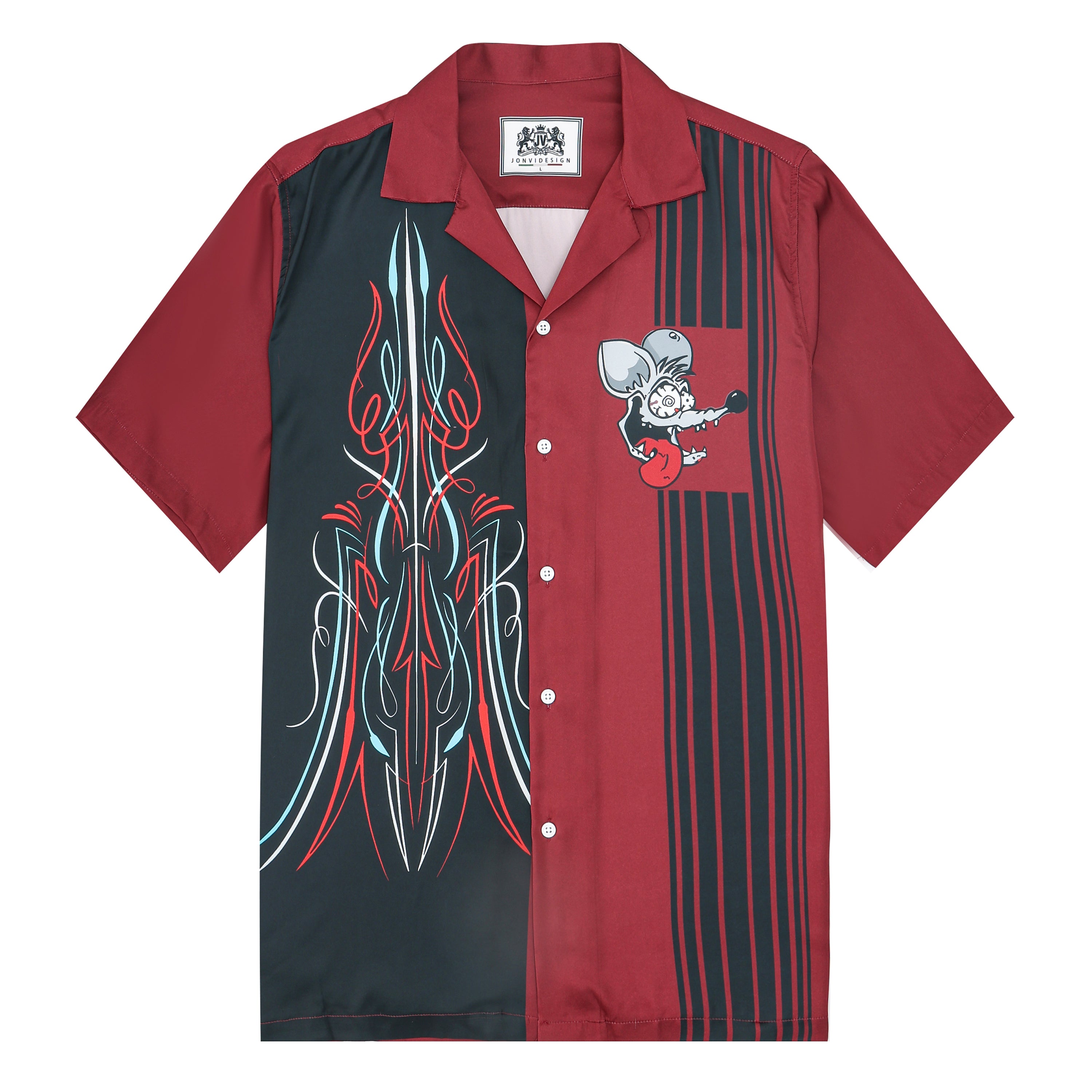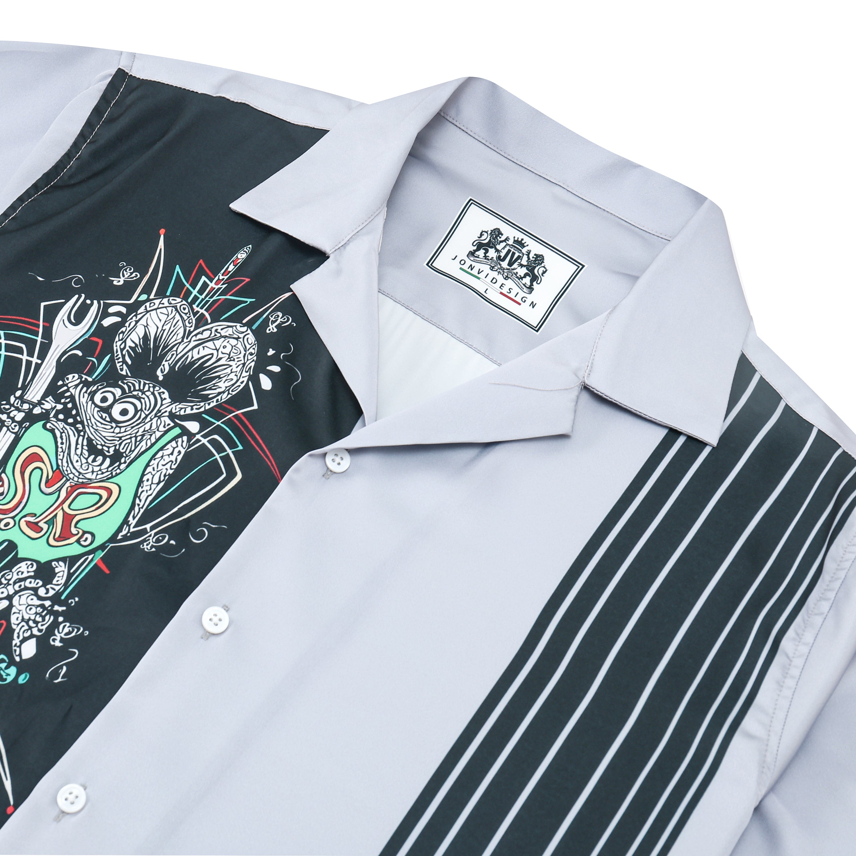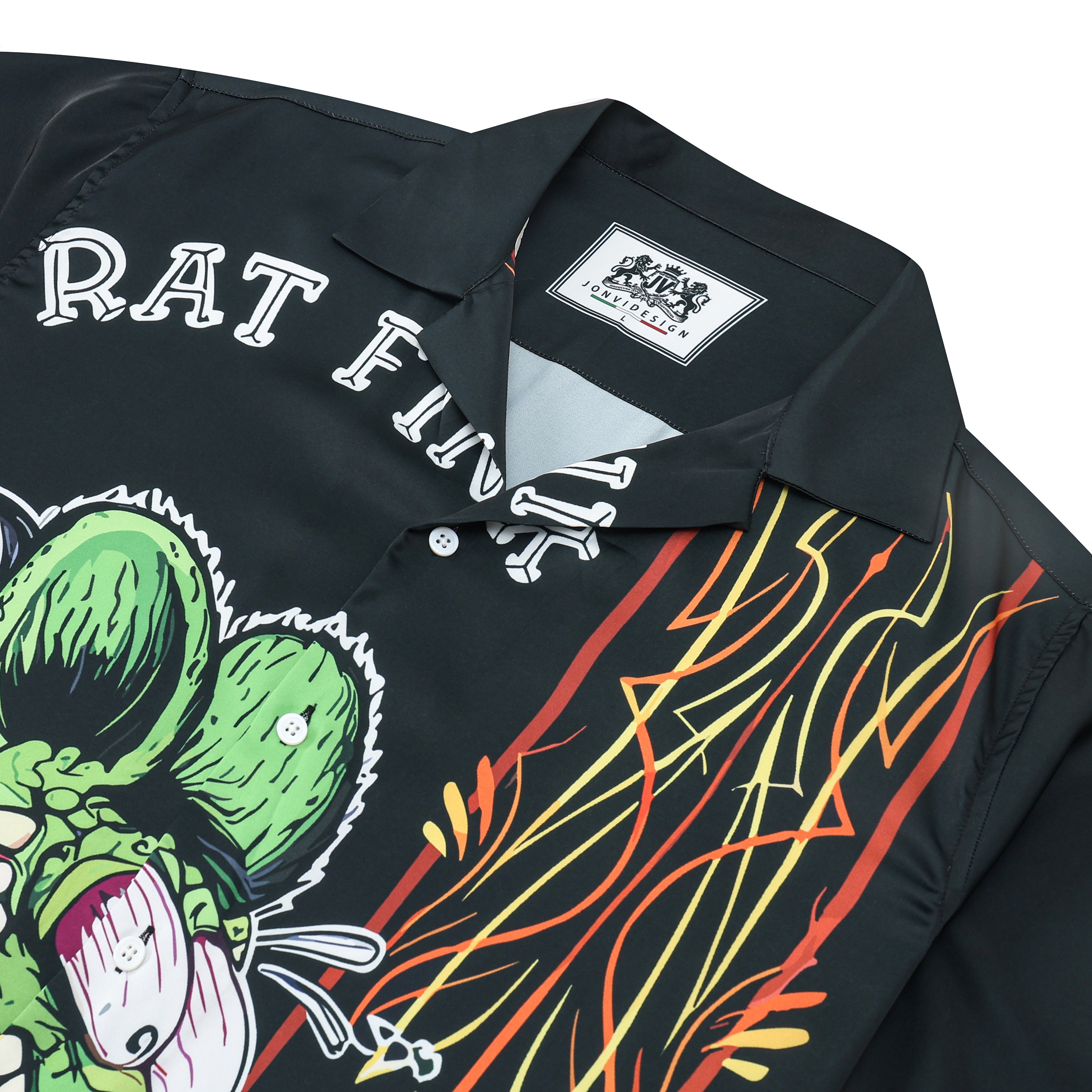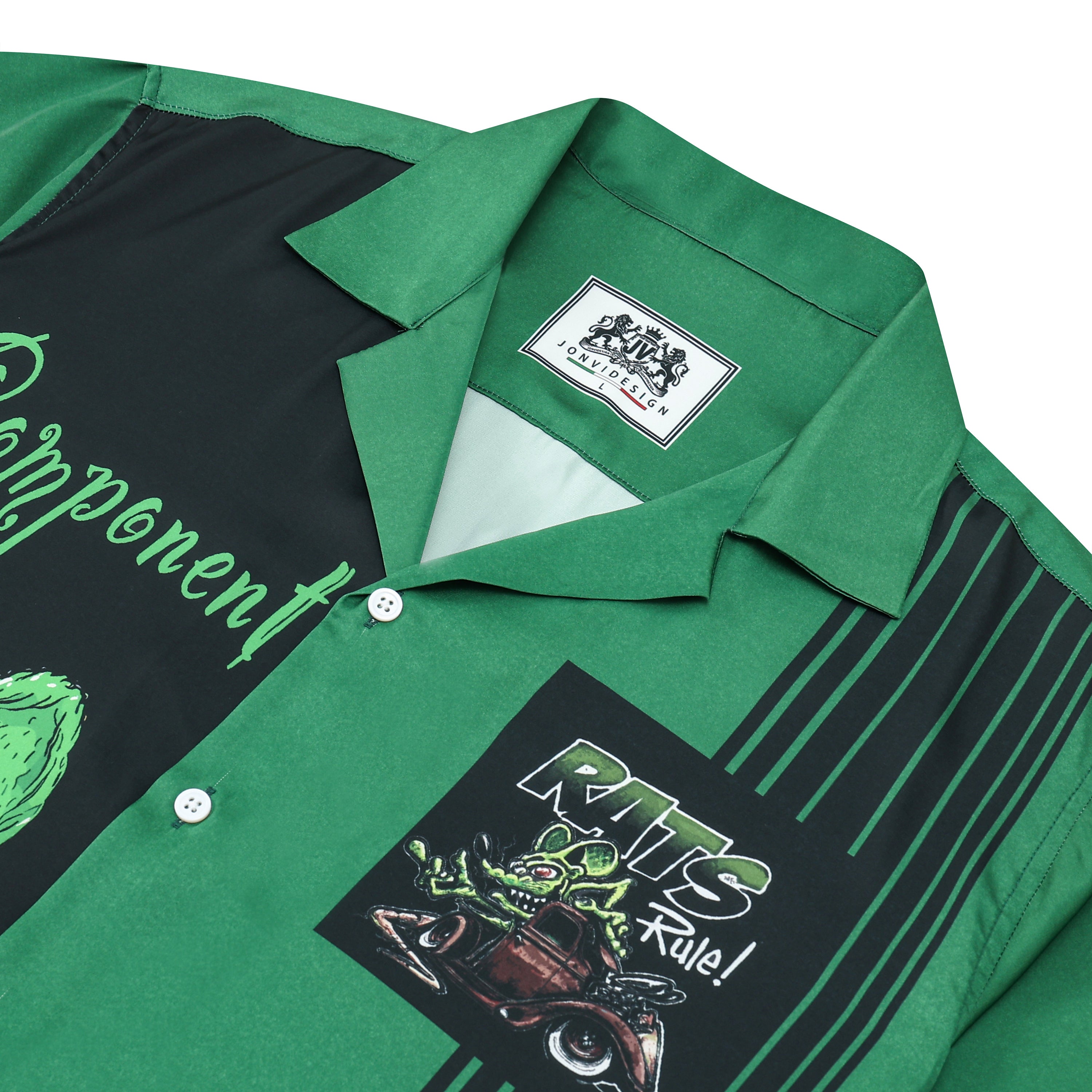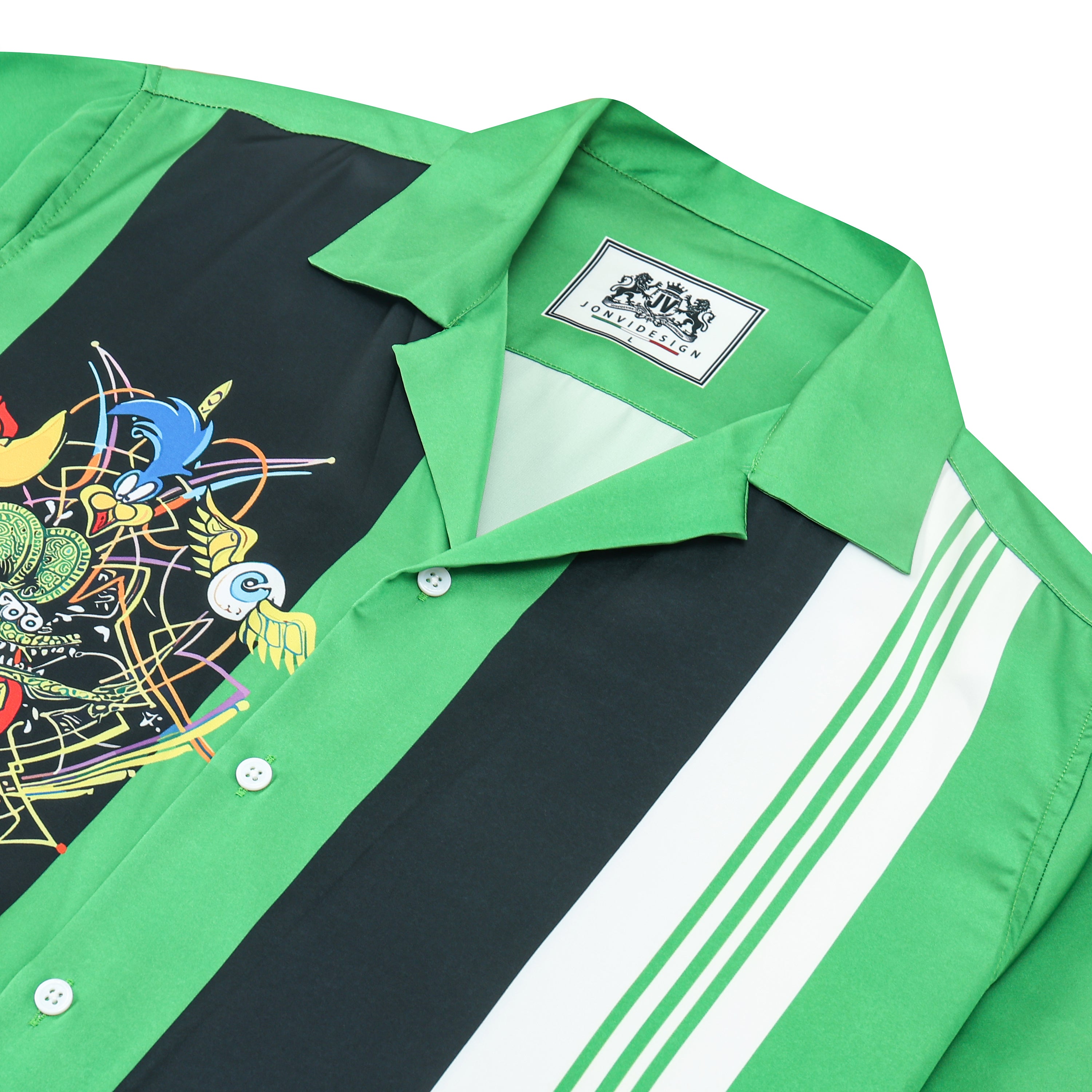 Black And Green Color Block Mouse Print Camp Collar Short Sleeve Shirt For Men$43.99 USD$69.00 USD