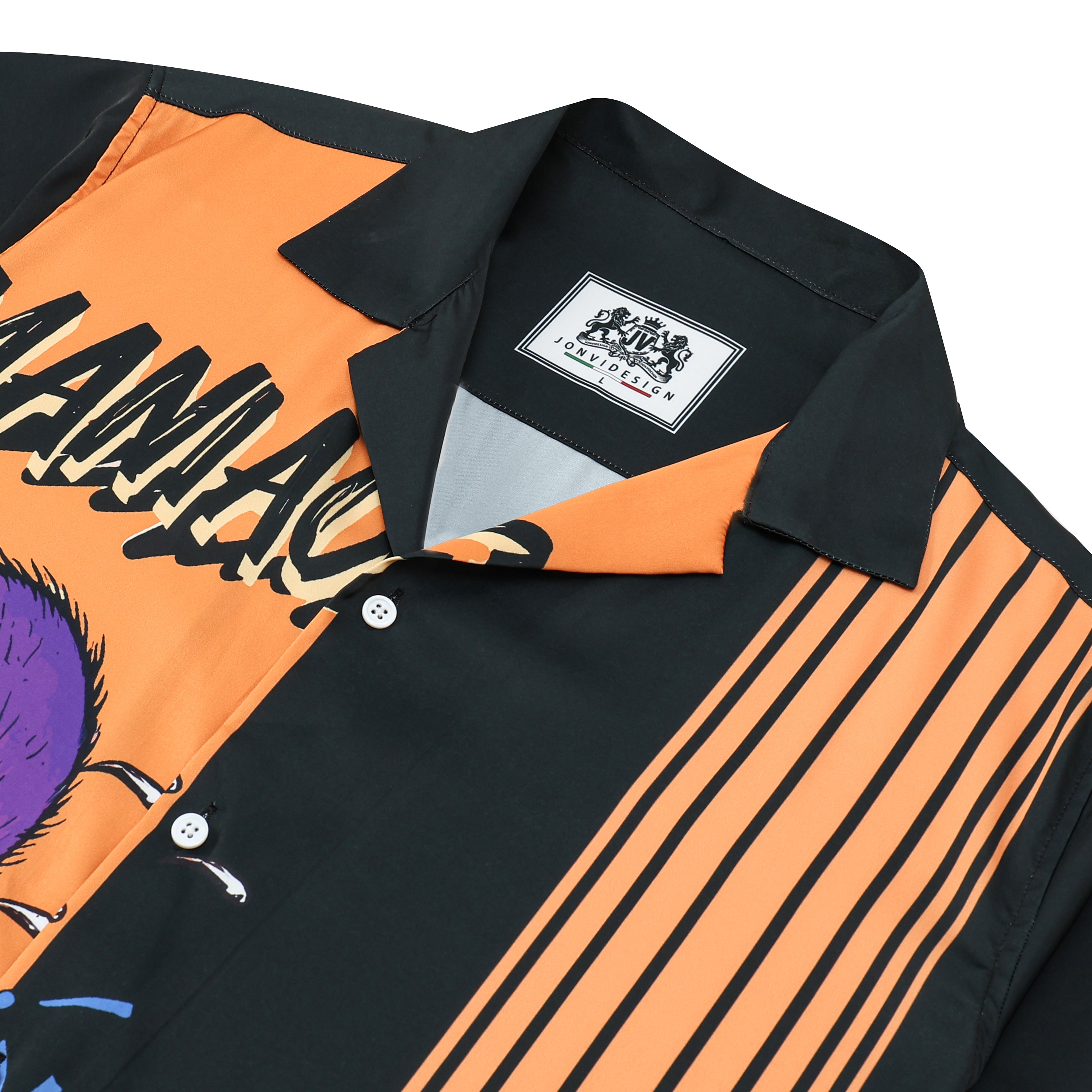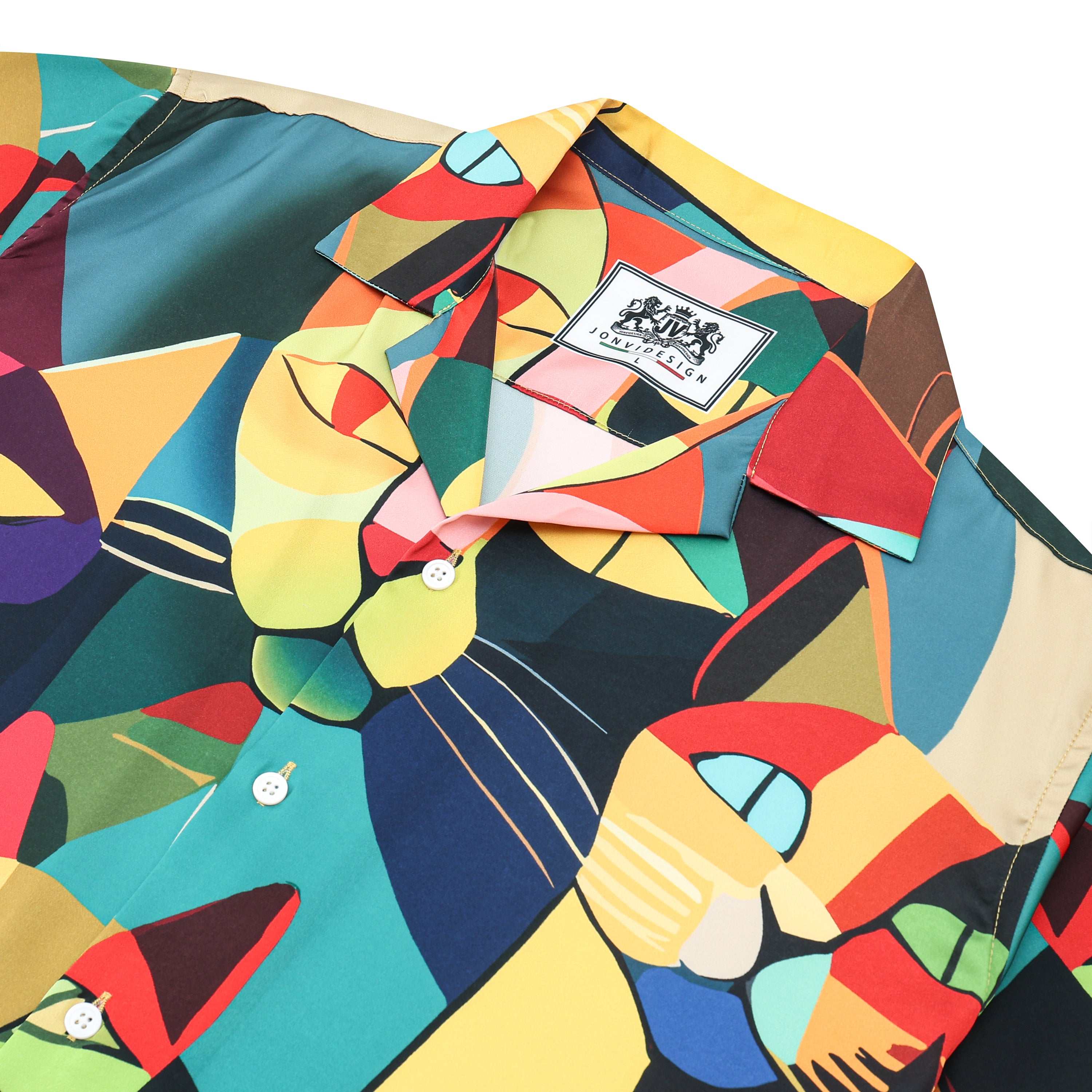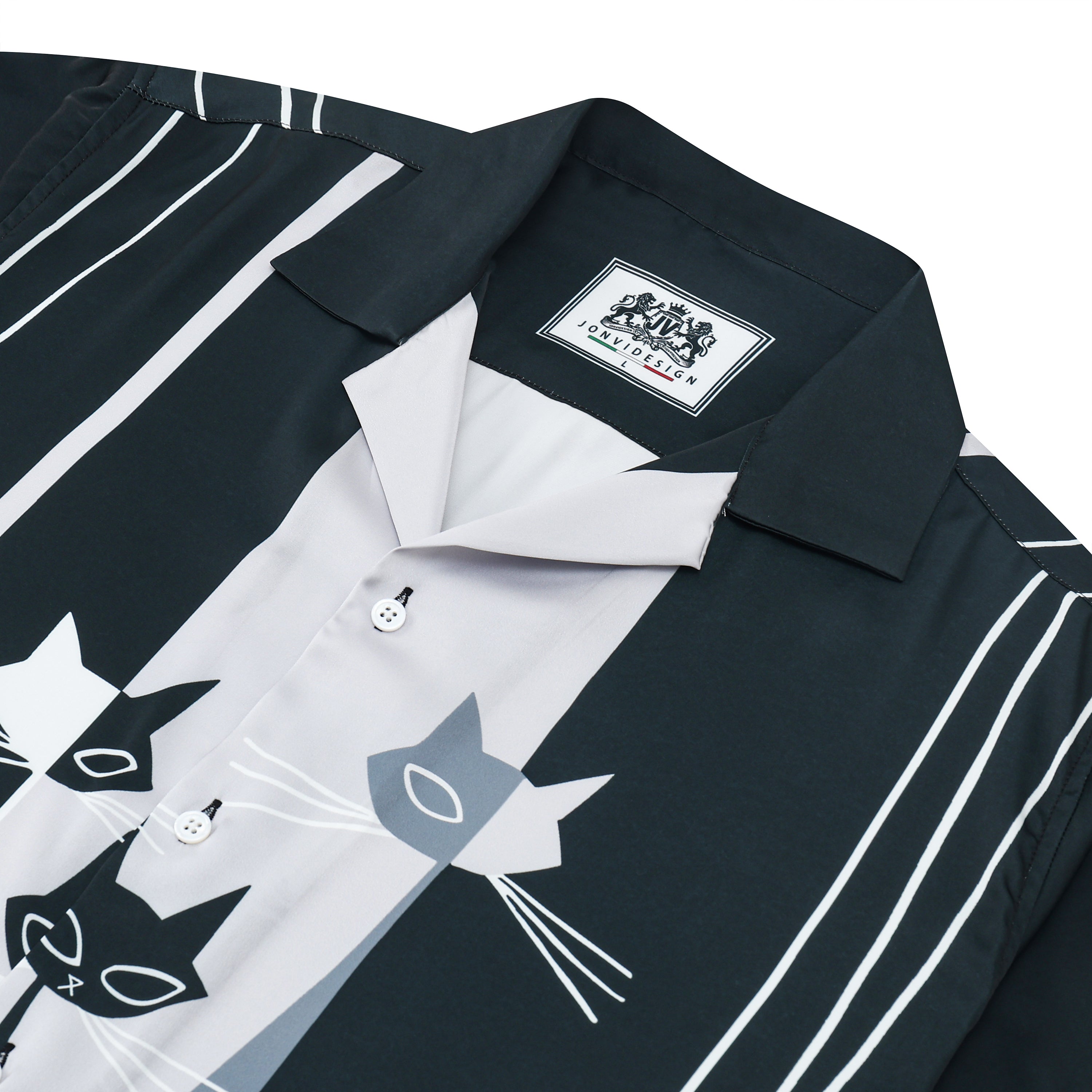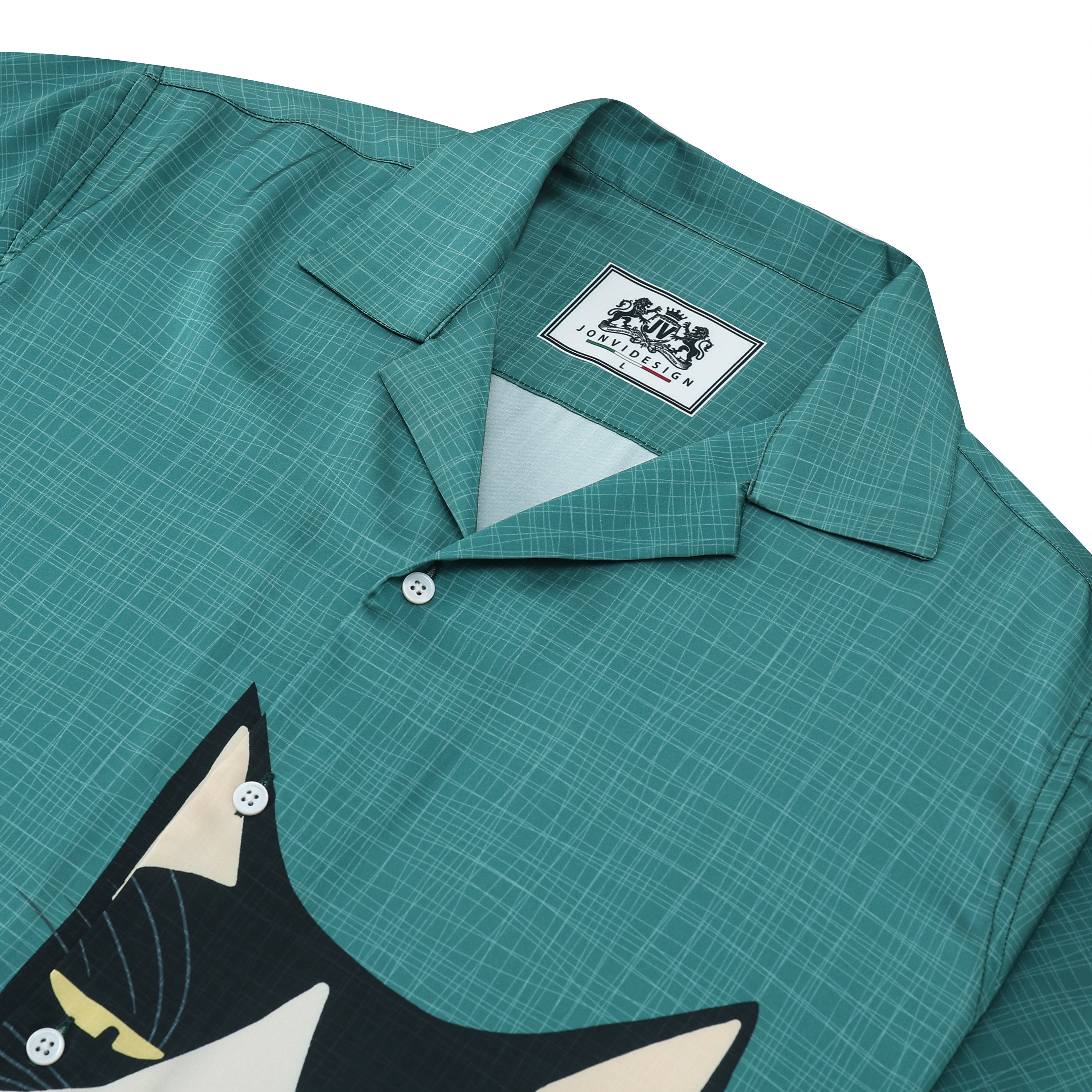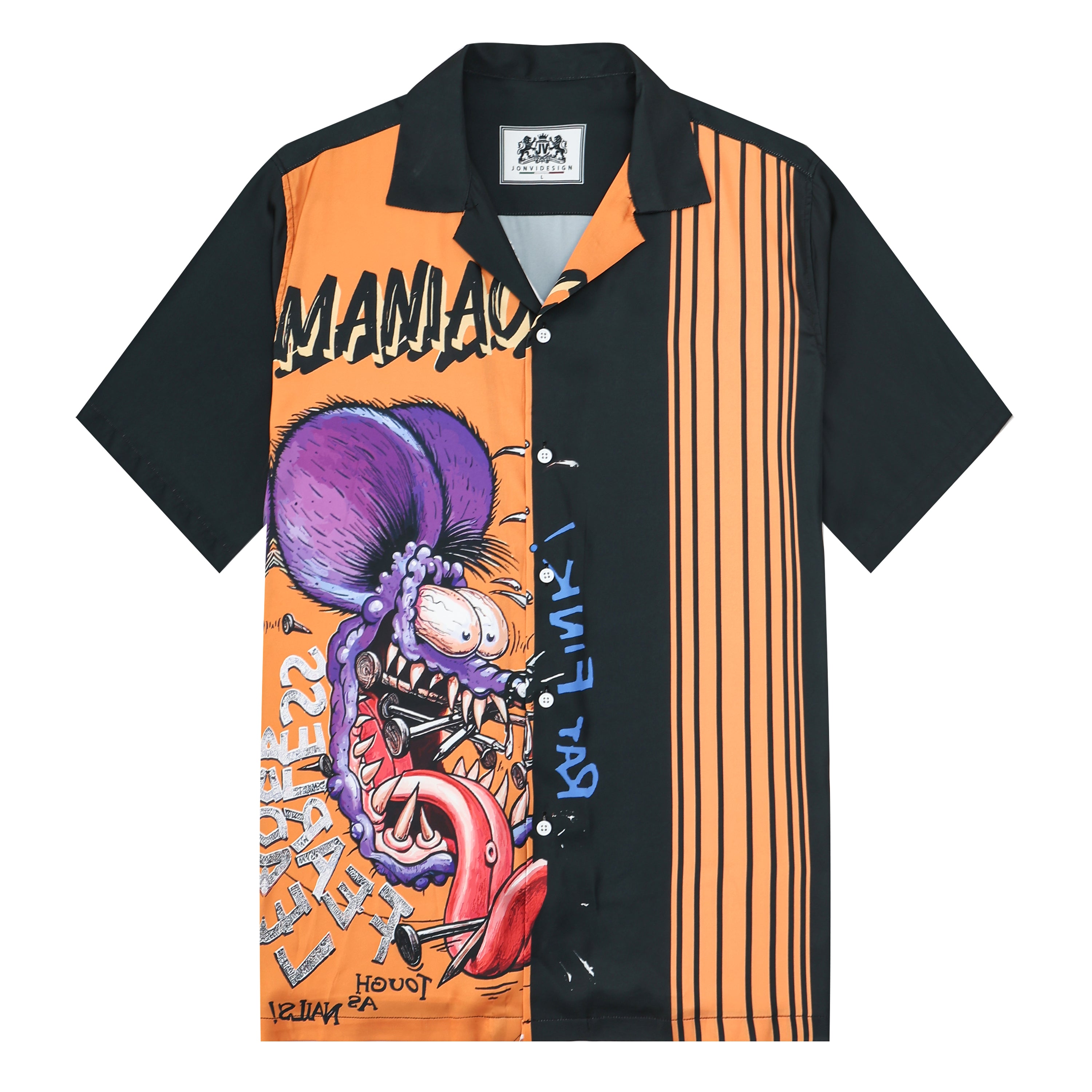 Black And Green Color Block Mouse Print Camp Collar Short Sleeve Shirt For Men$43.99 USD$69.00 USD