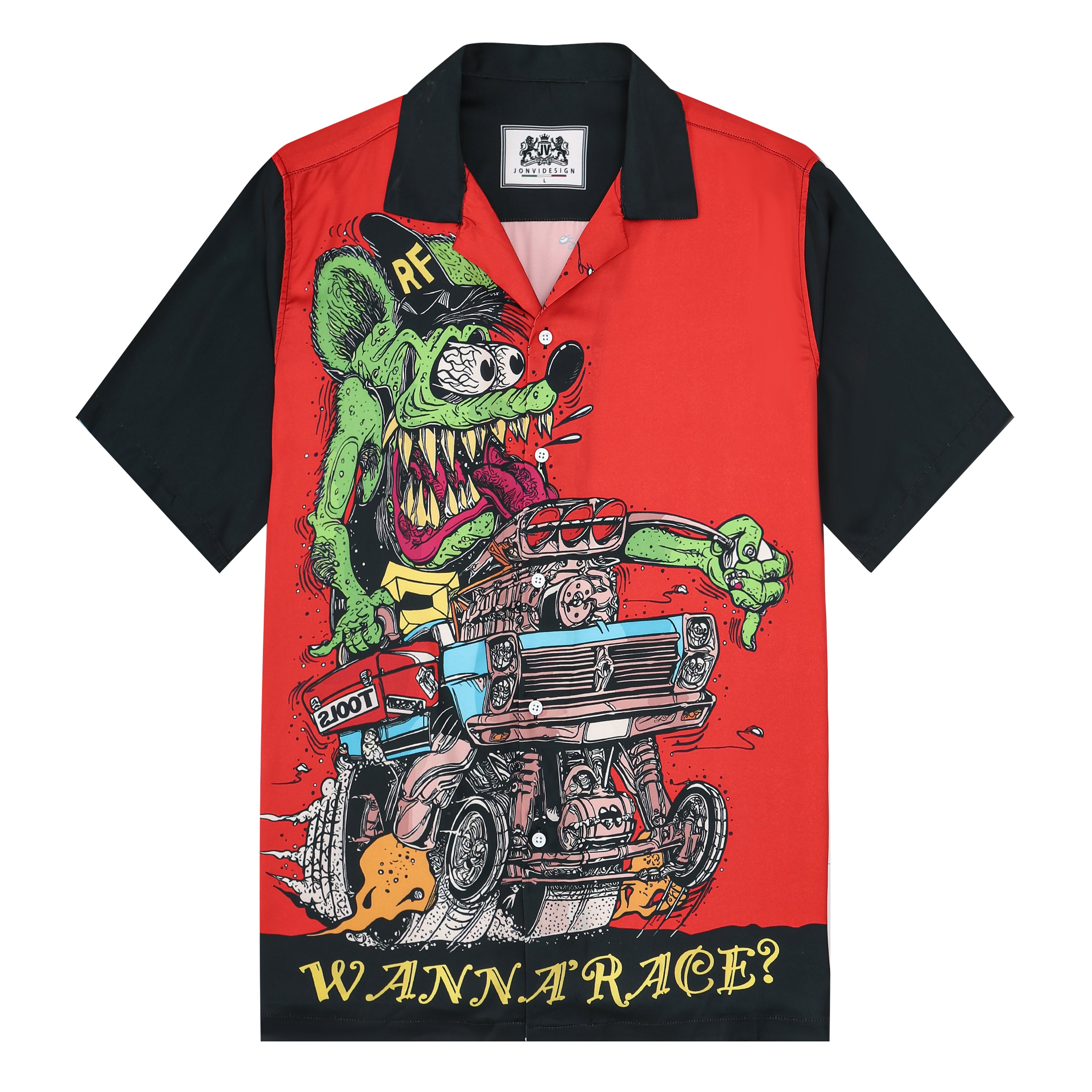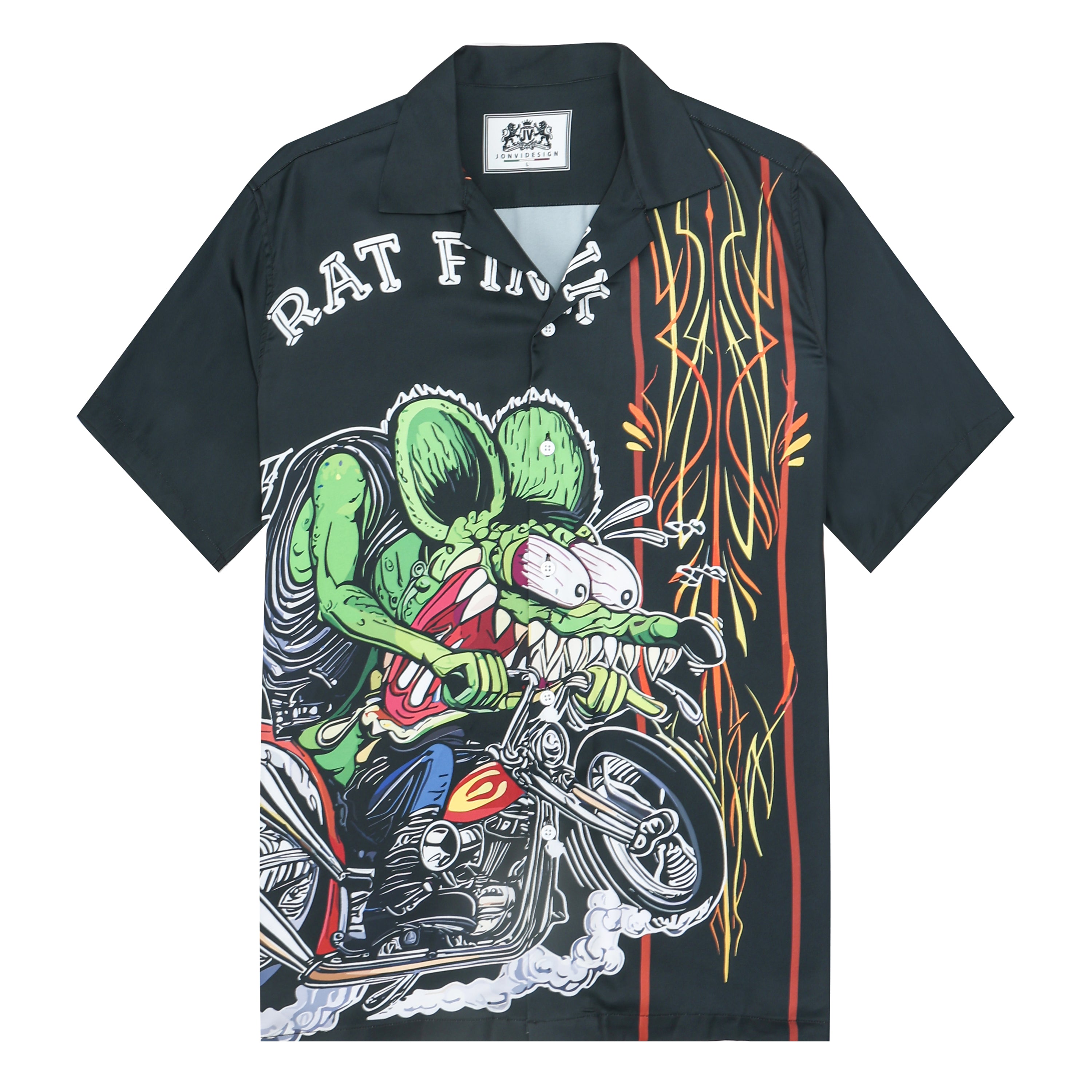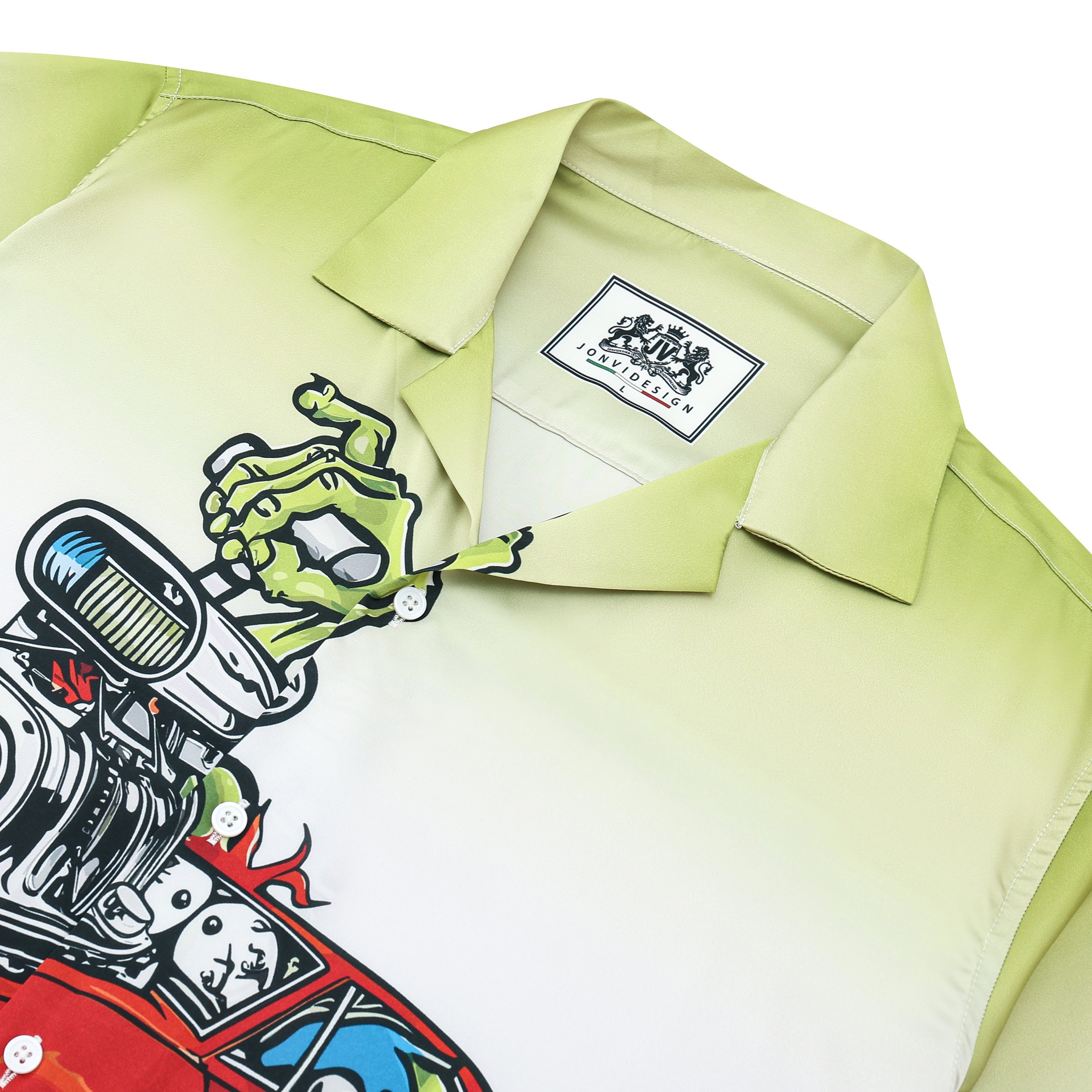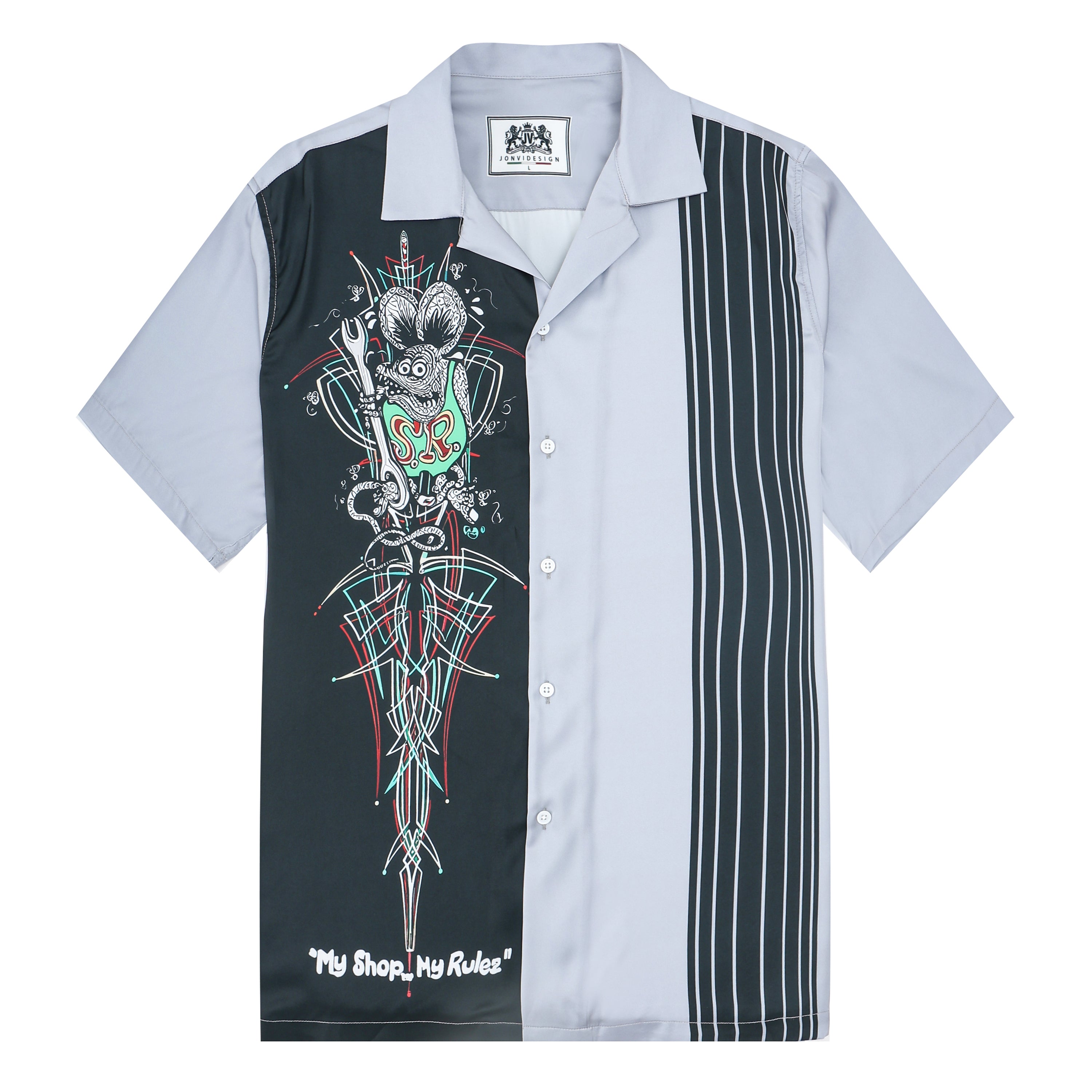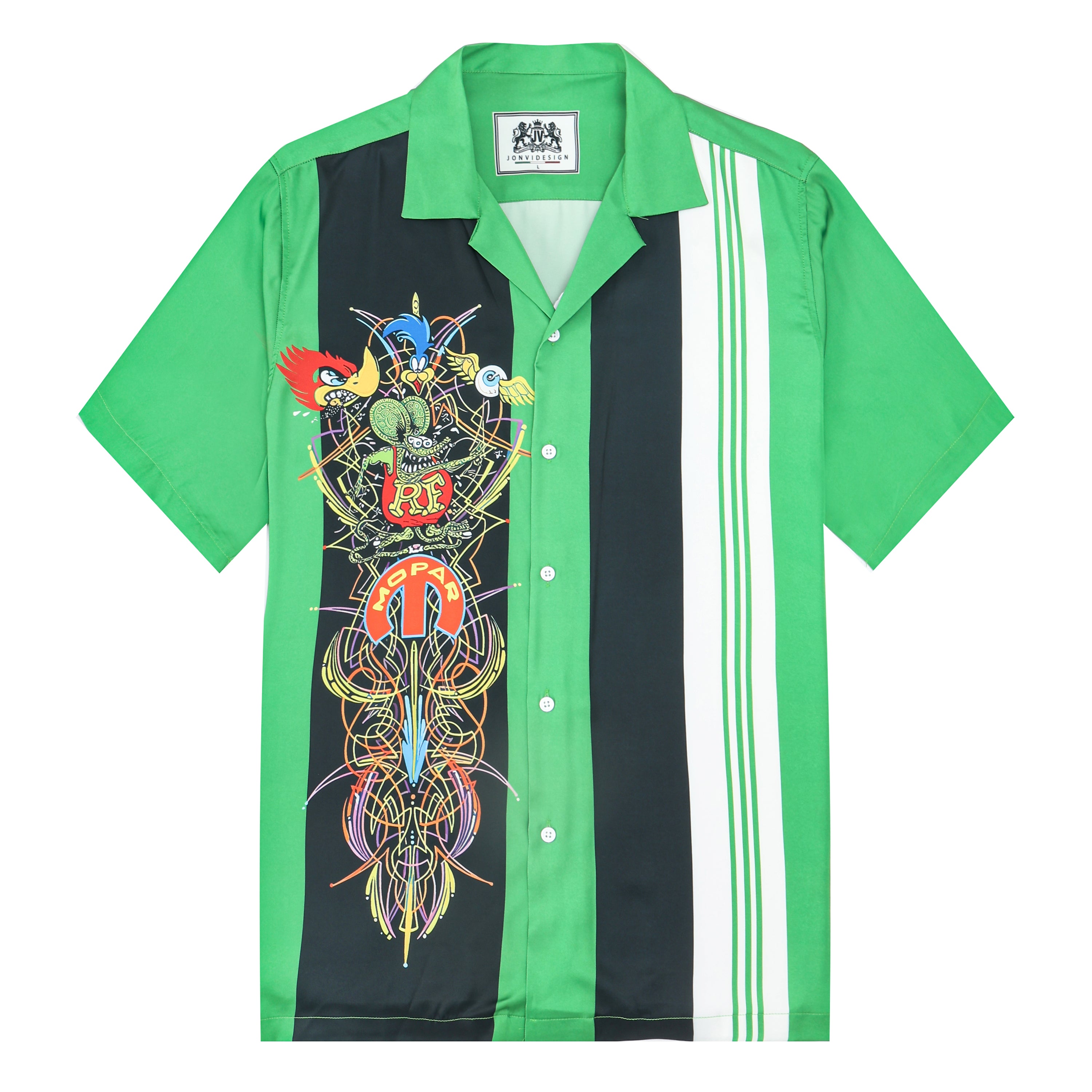 Black And Green Color Block Mouse Print Camp Collar Short Sleeve Shirt For Men$43.99 USD$69.00 USD