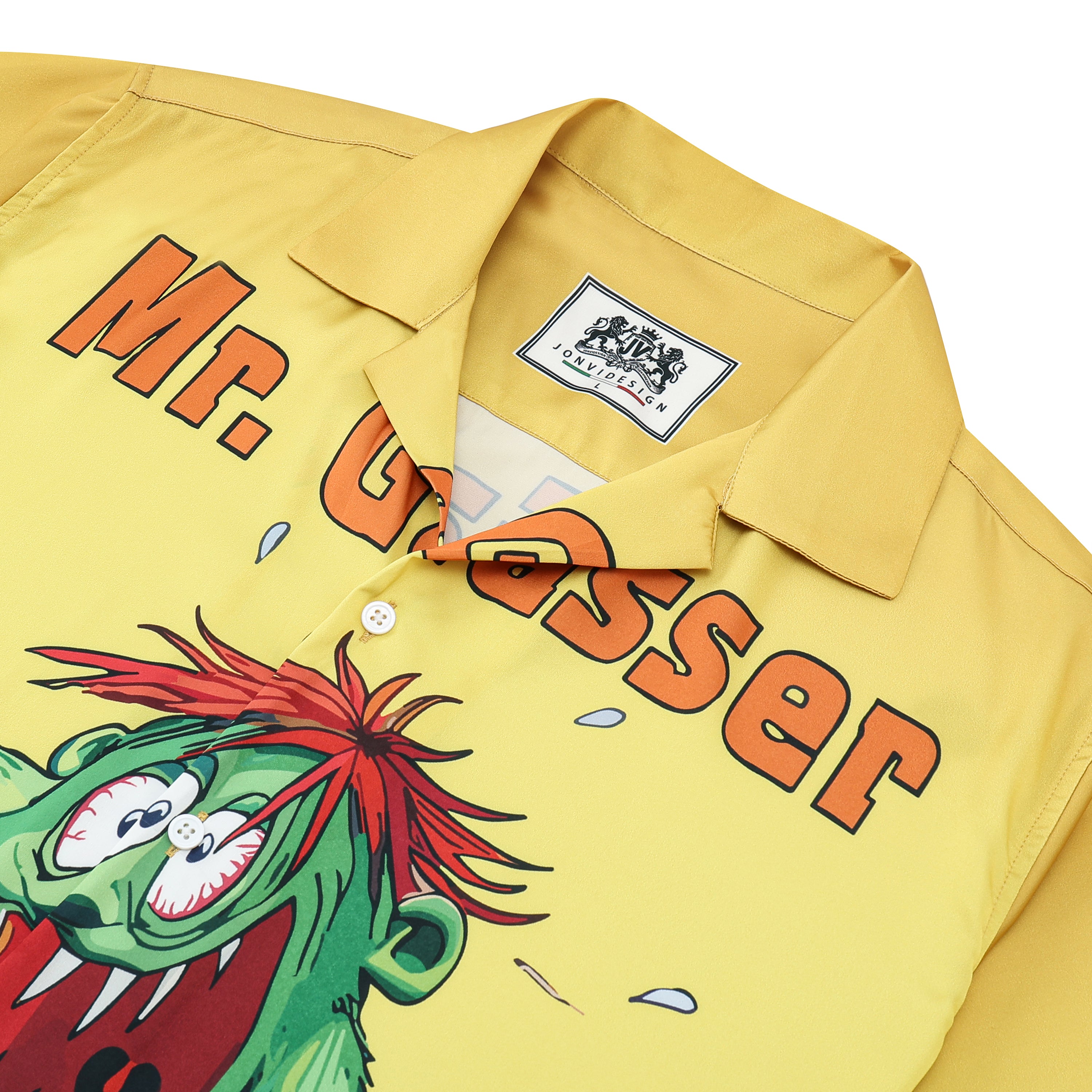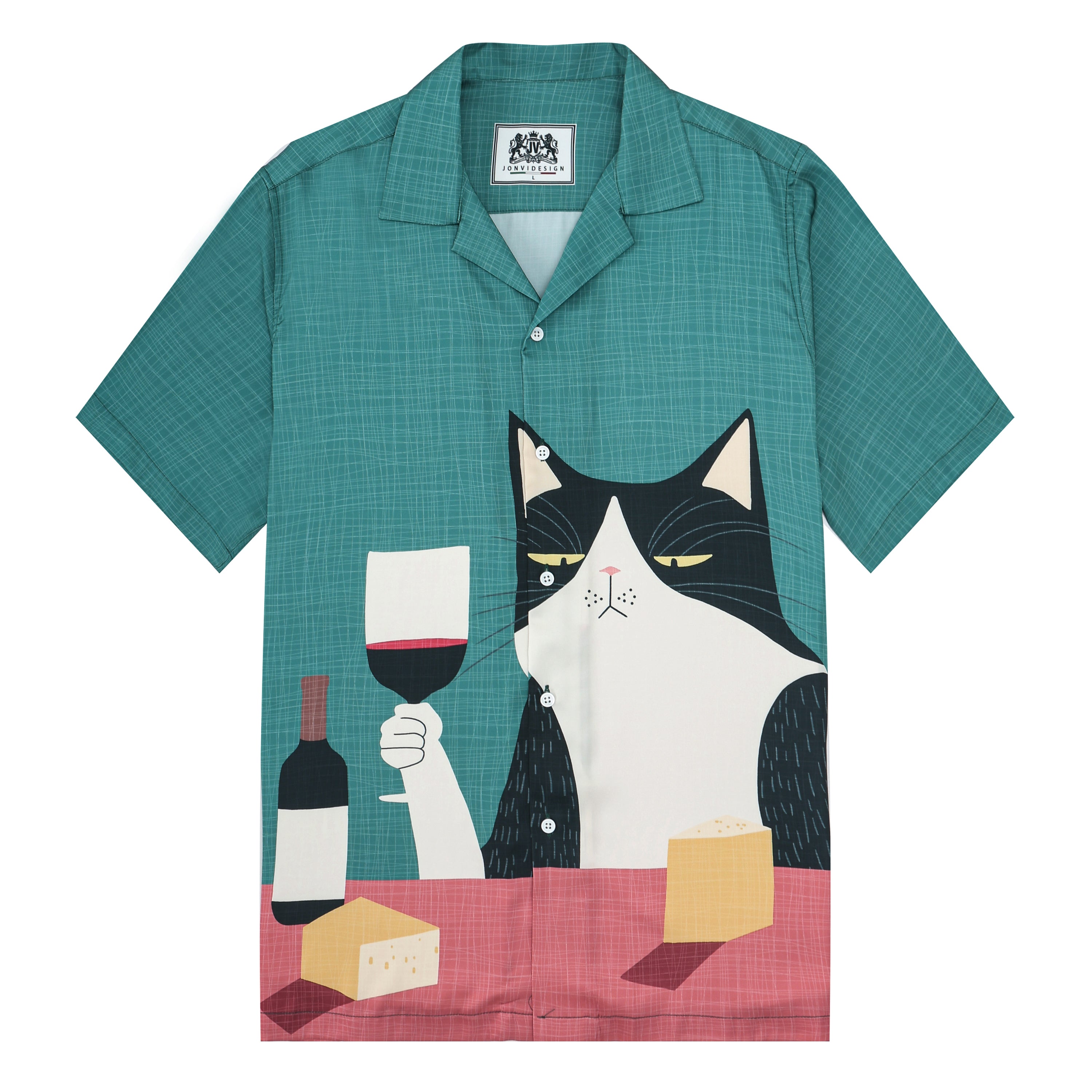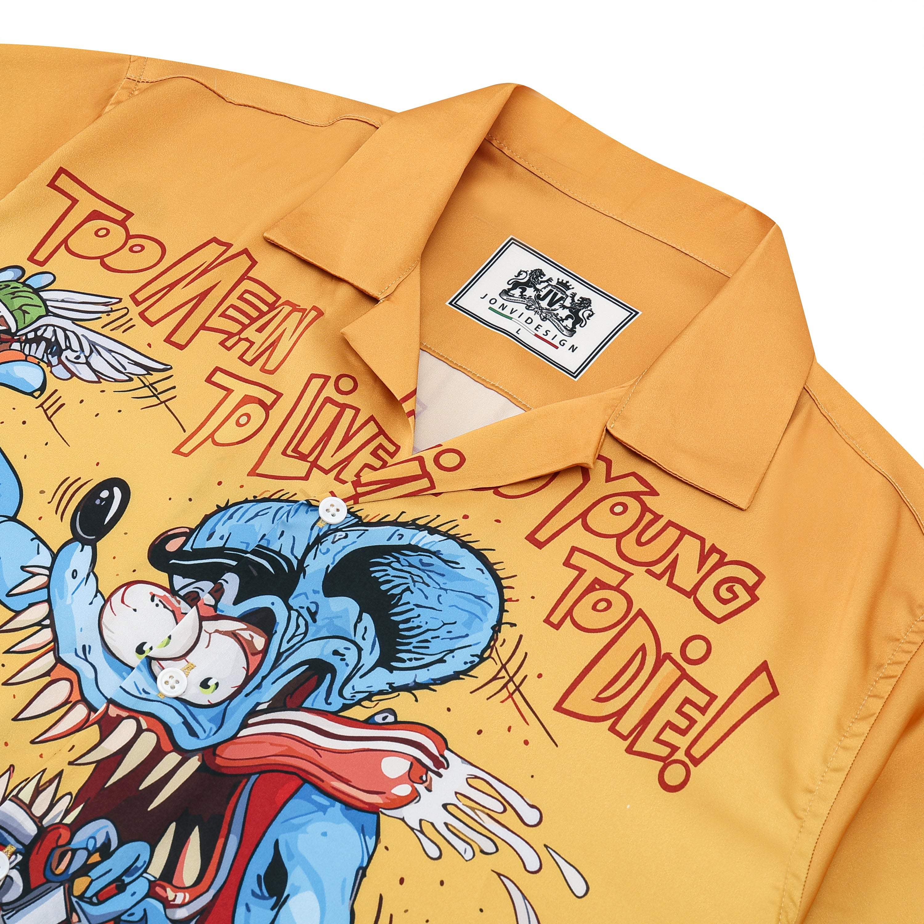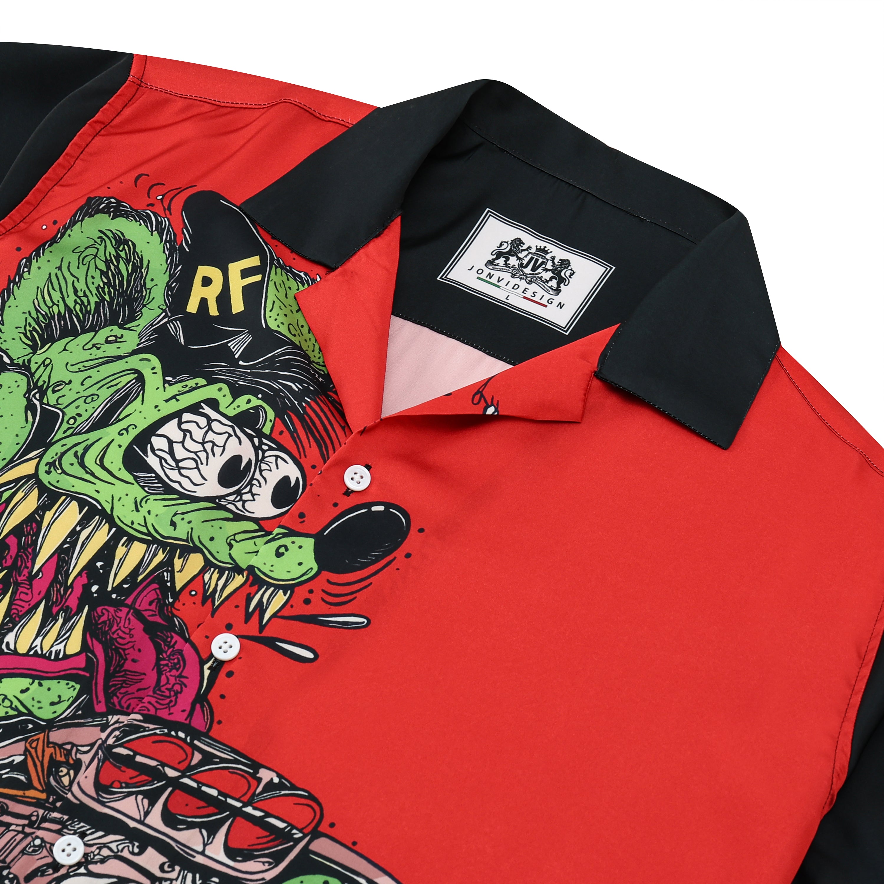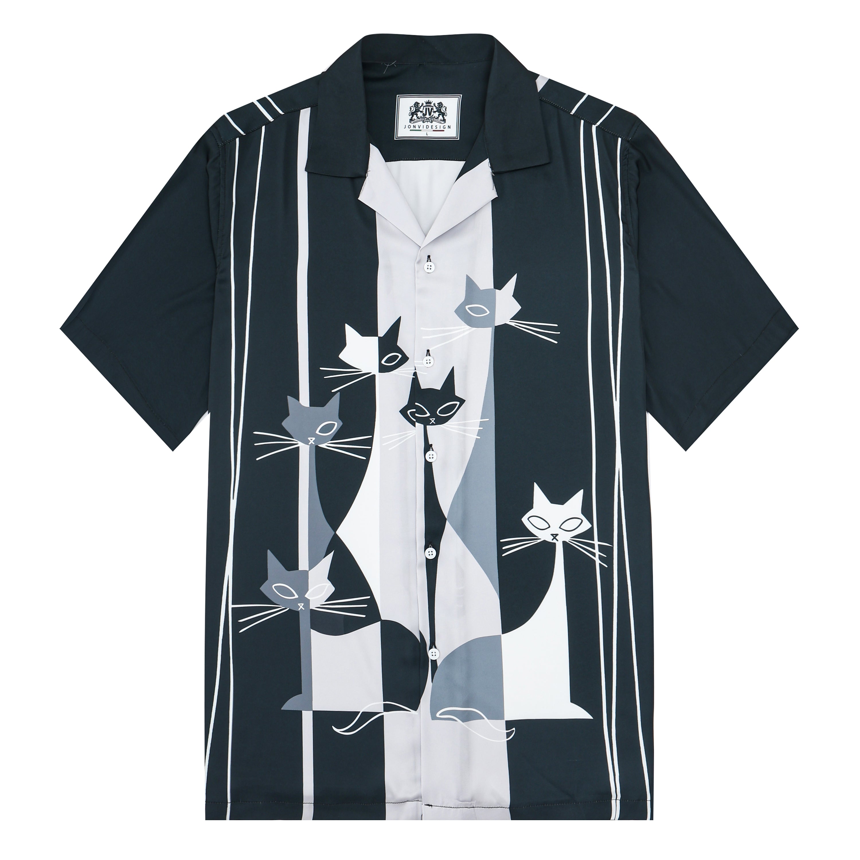 Black And Green Color Block Mouse Print Camp Collar Short Sleeve Shirt For Men$43.99 USD$69.00 USD