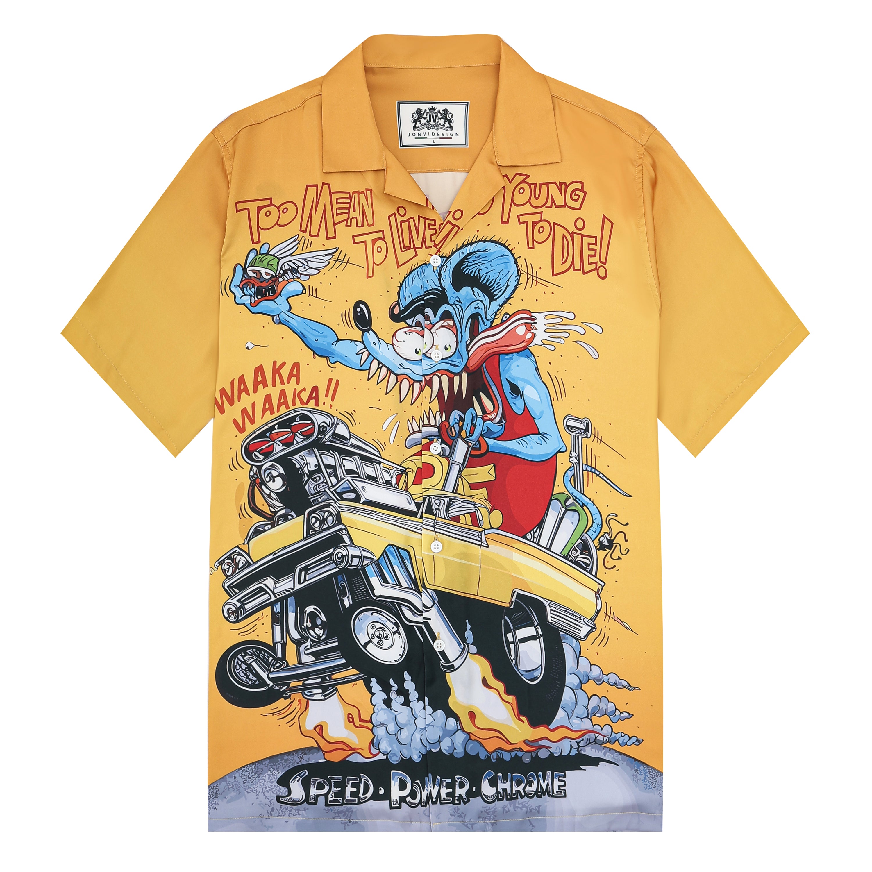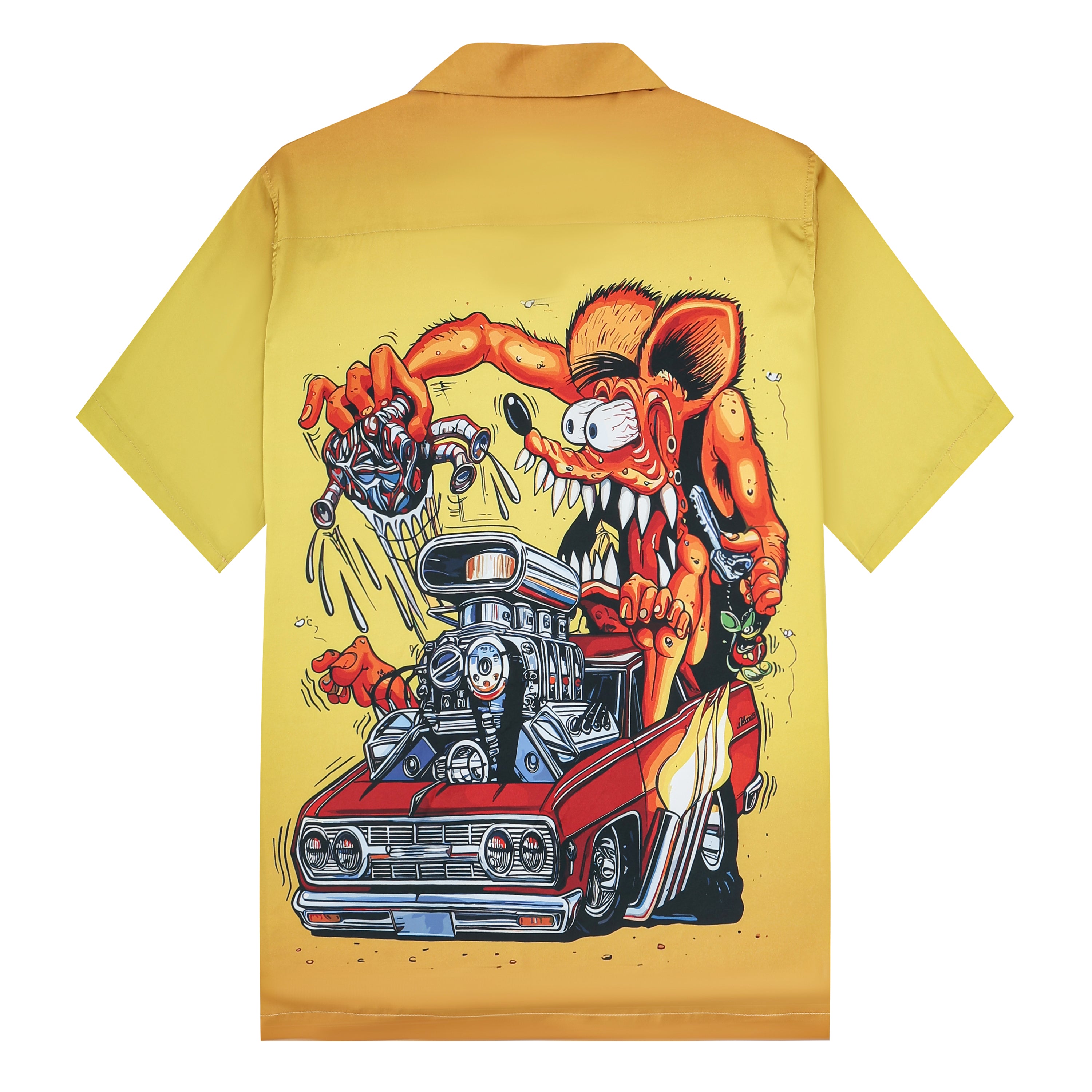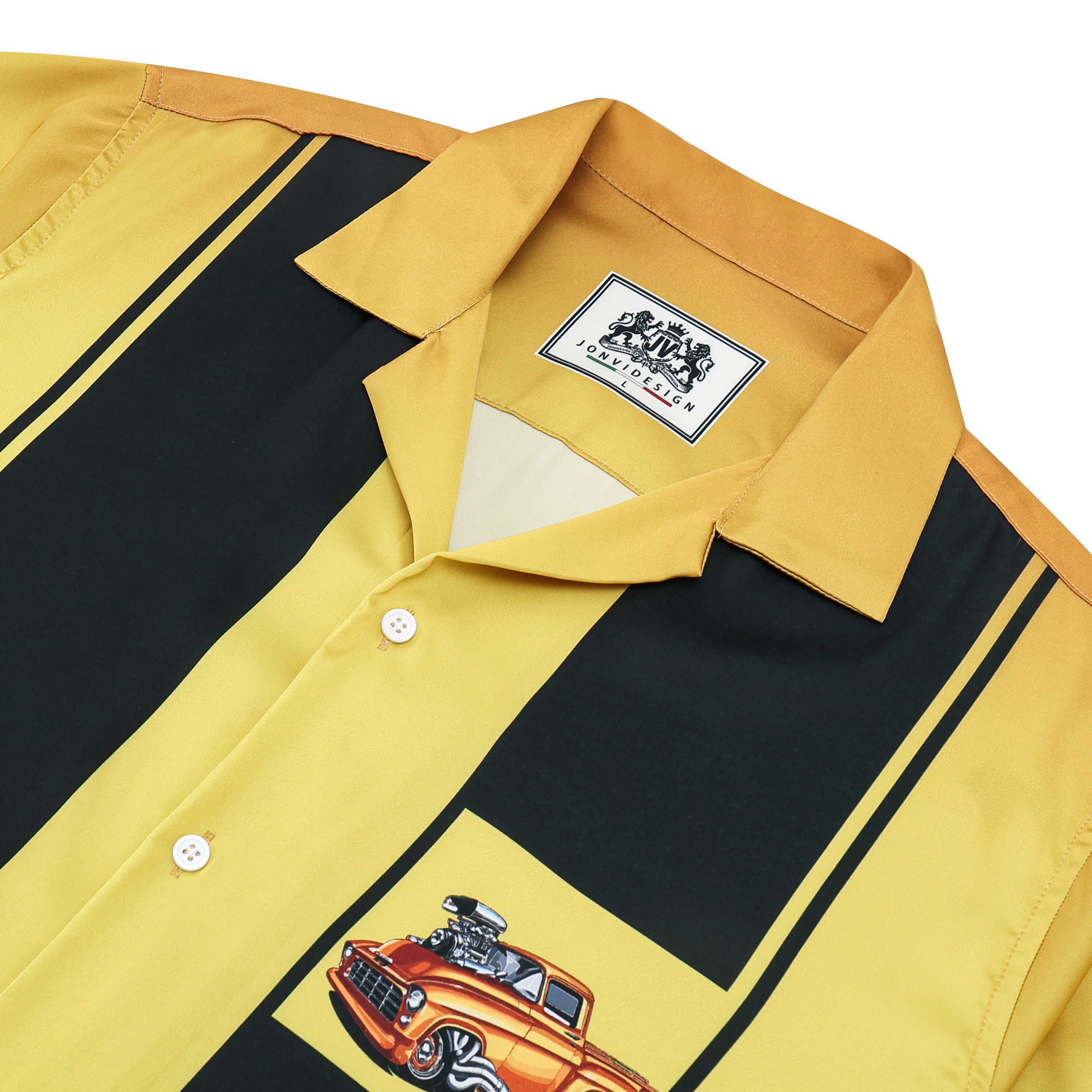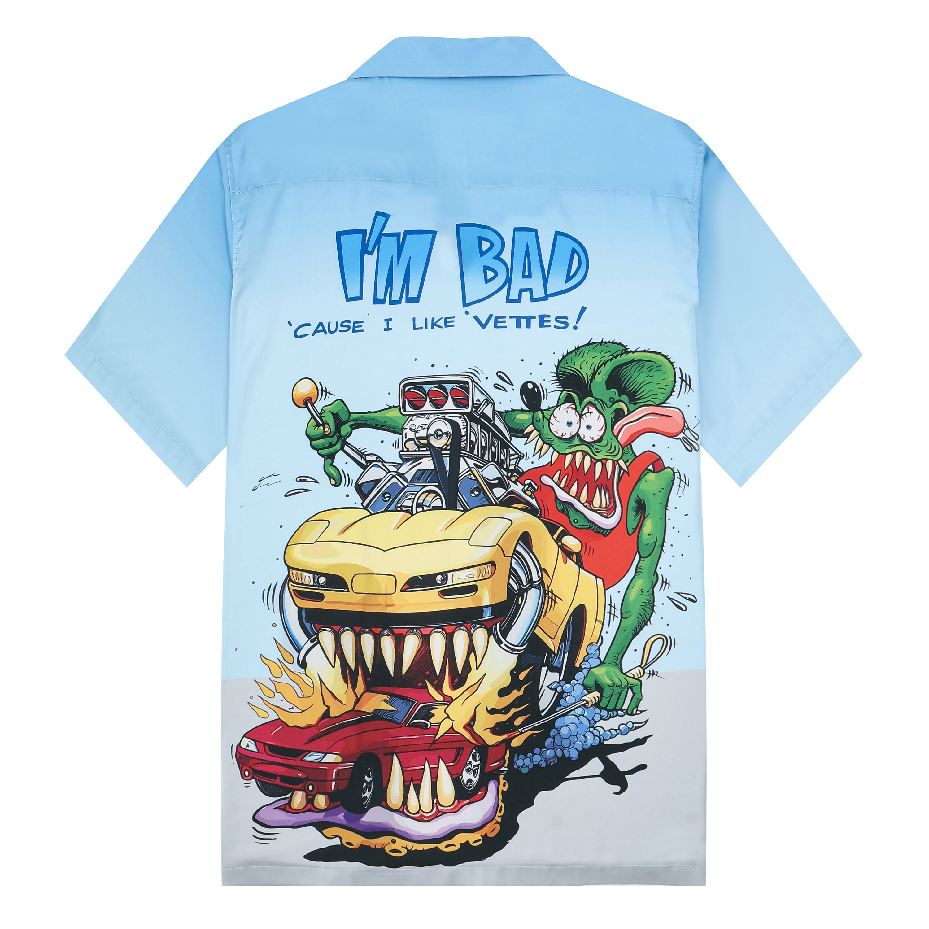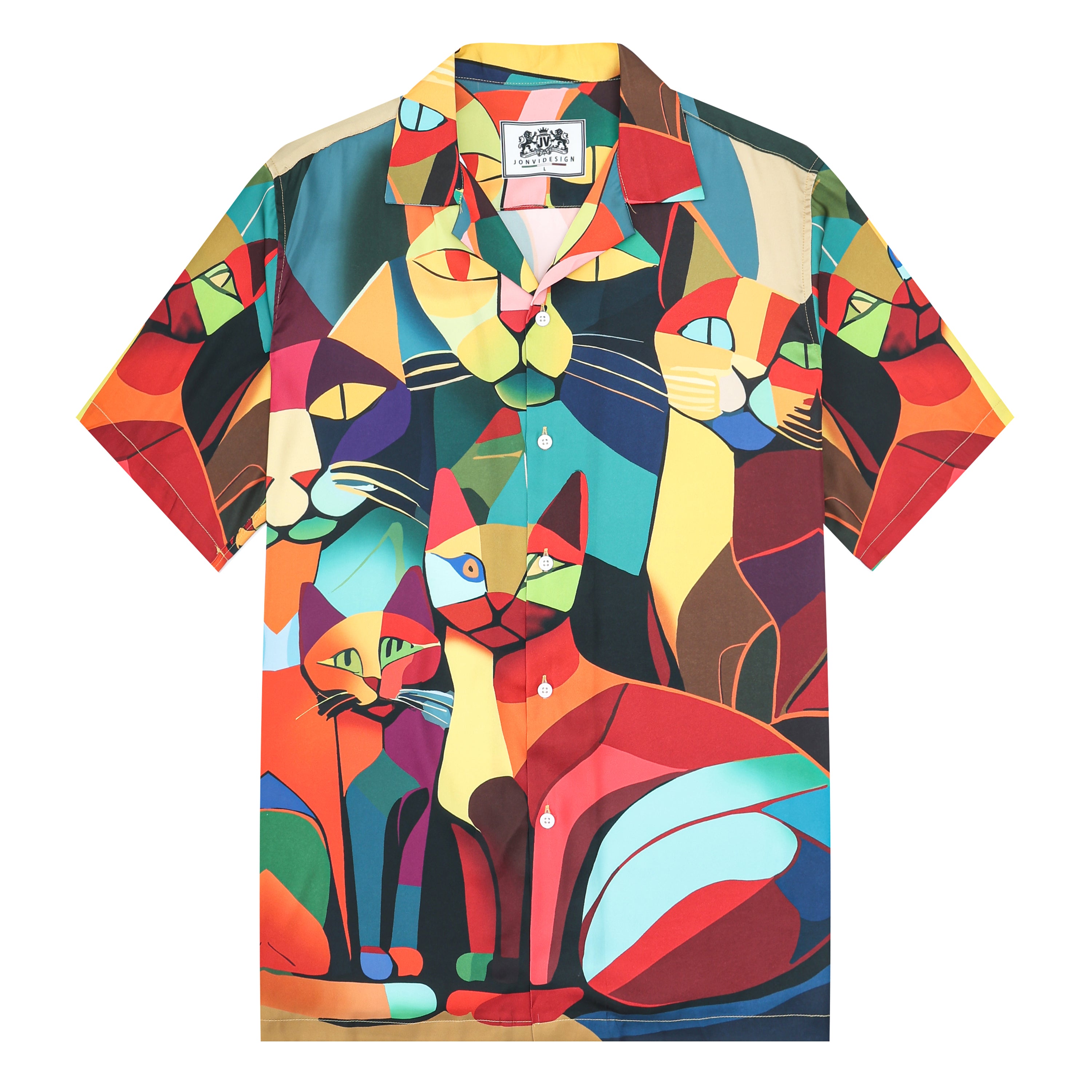 Black And Green Color Block Mouse Print Camp Collar Short Sleeve Shirt For Men$43.99 USD$69.00 USD