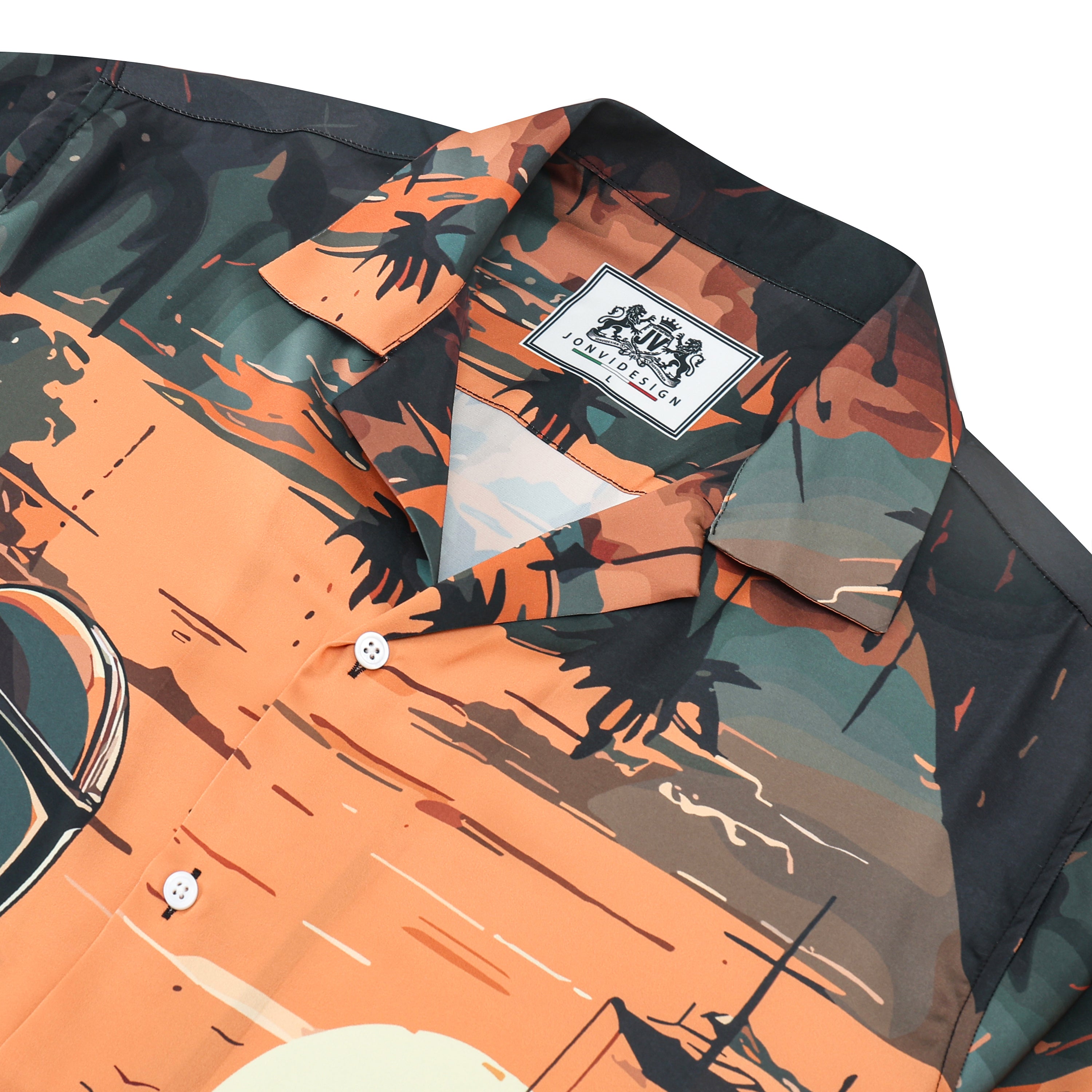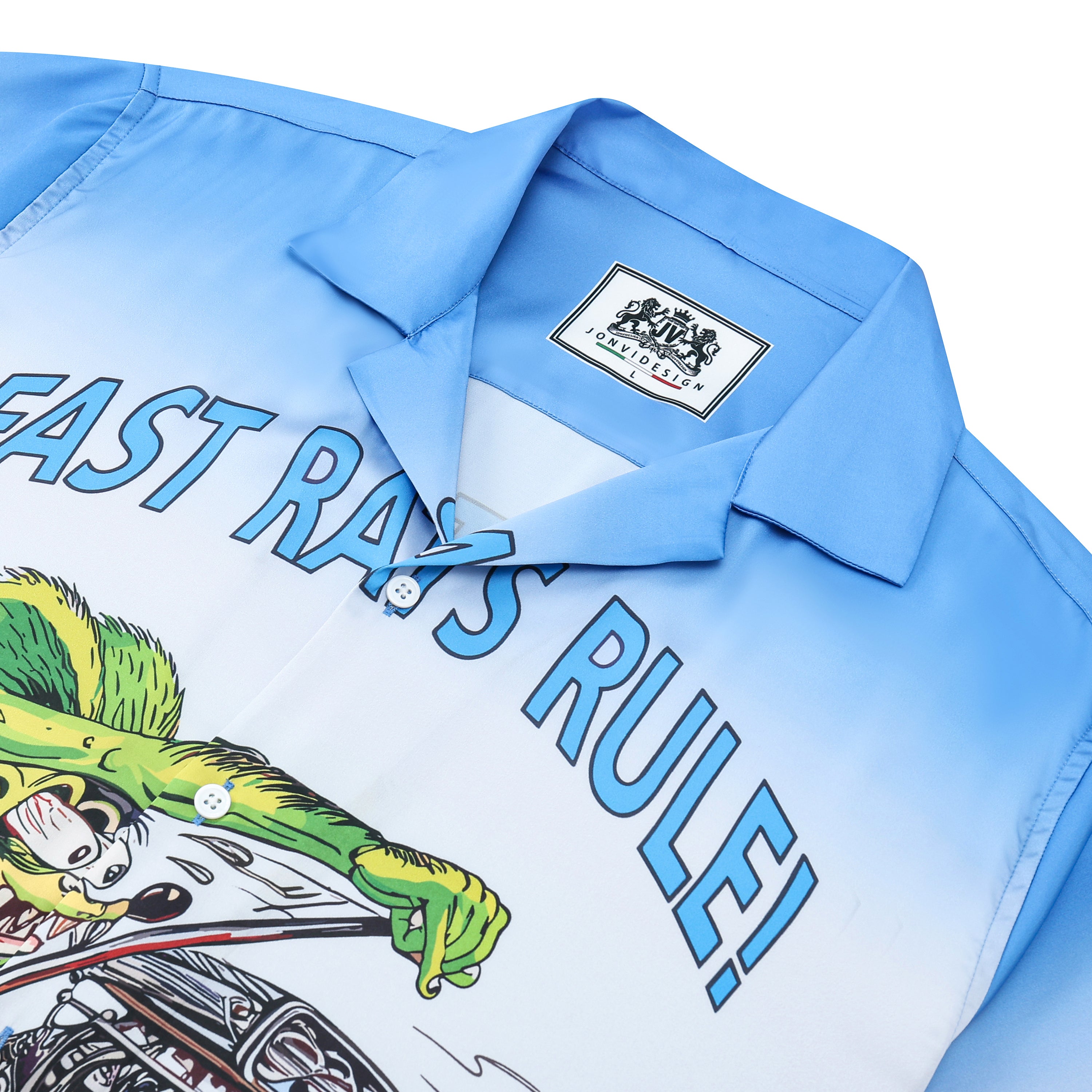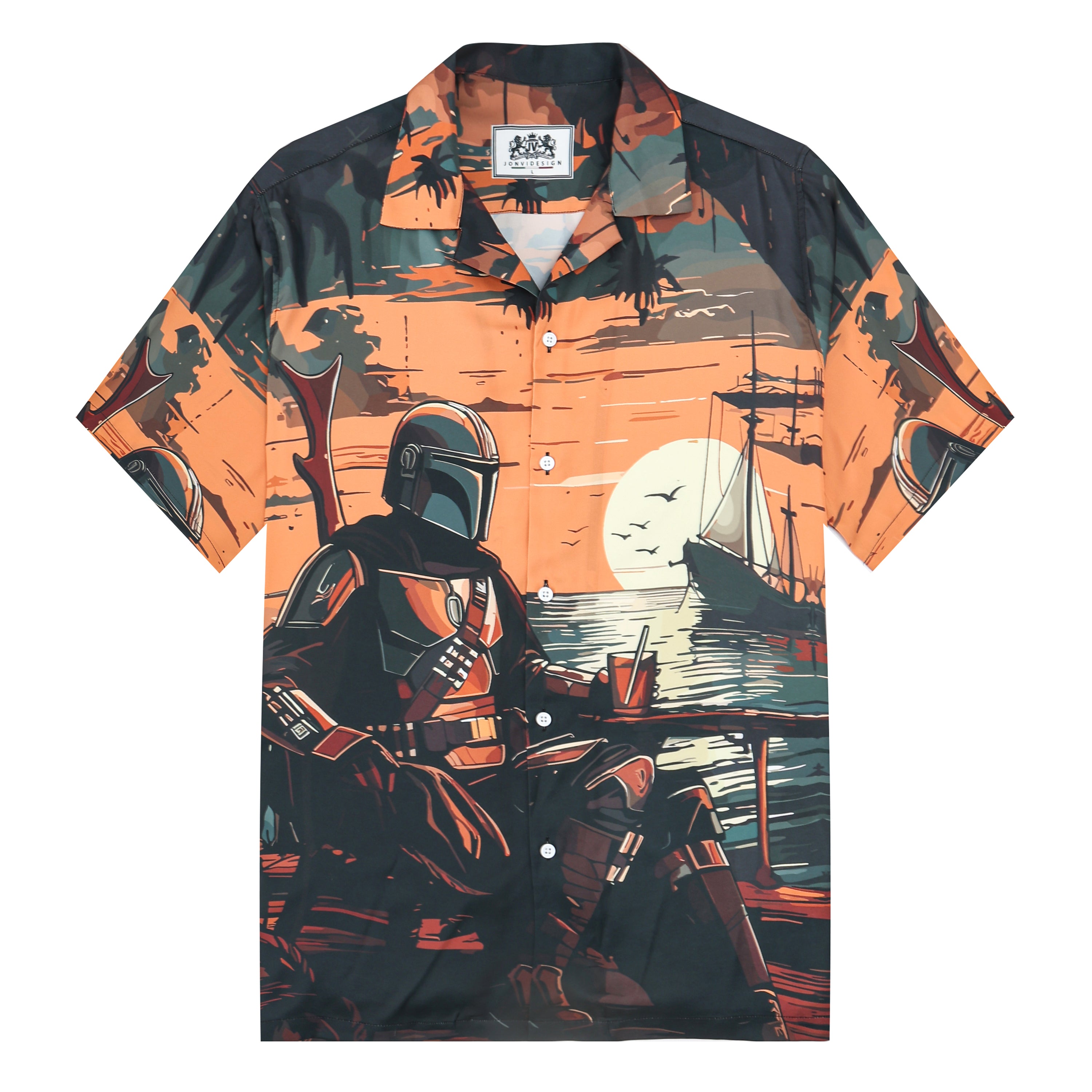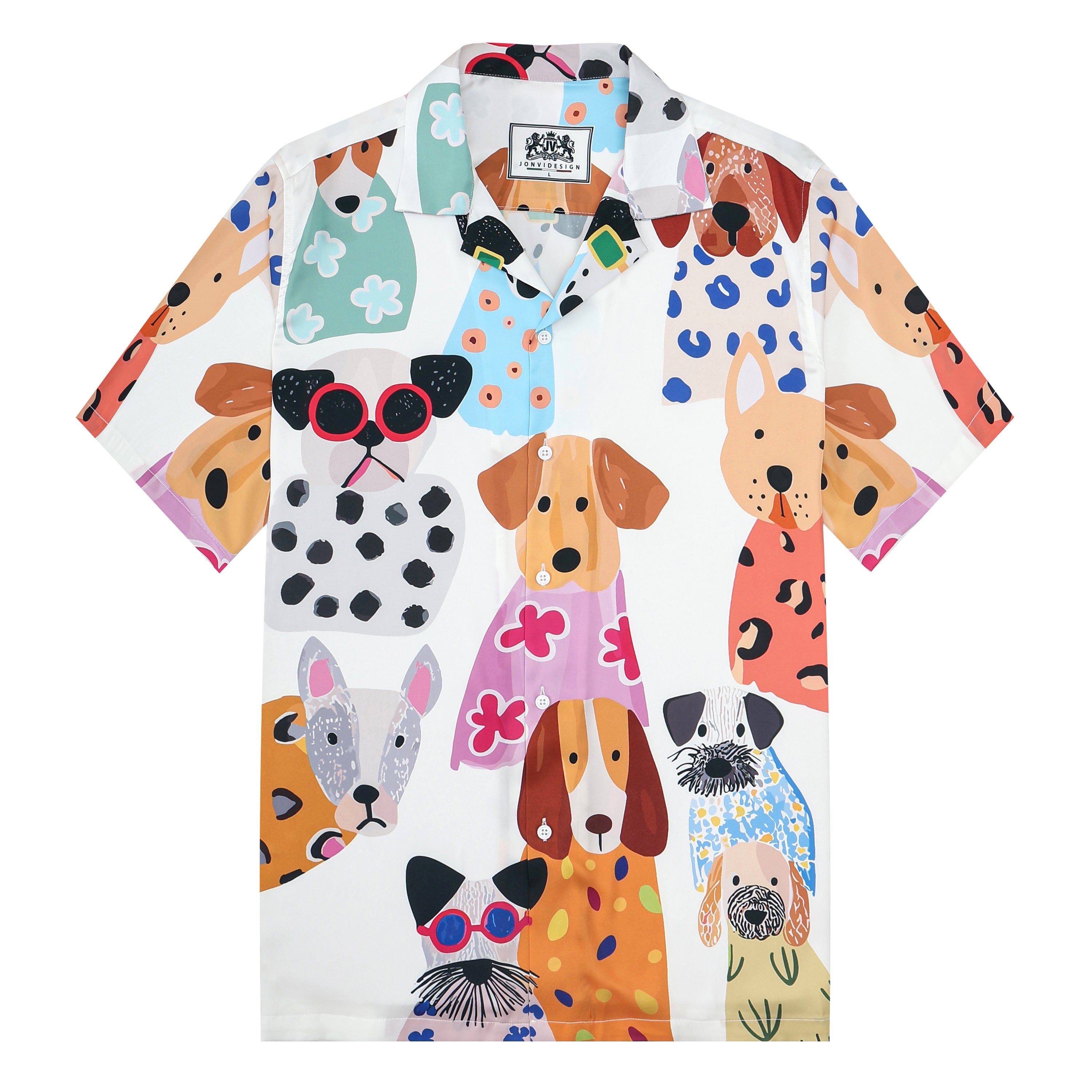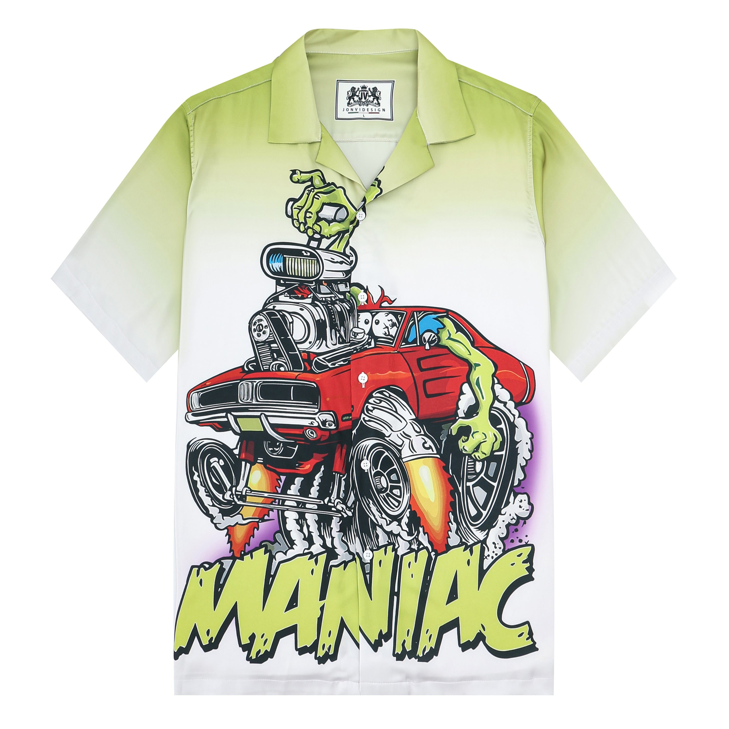 Black And Green Color Block Mouse Print Camp Collar Short Sleeve Shirt For Men$43.99 USD$69.00 USD
