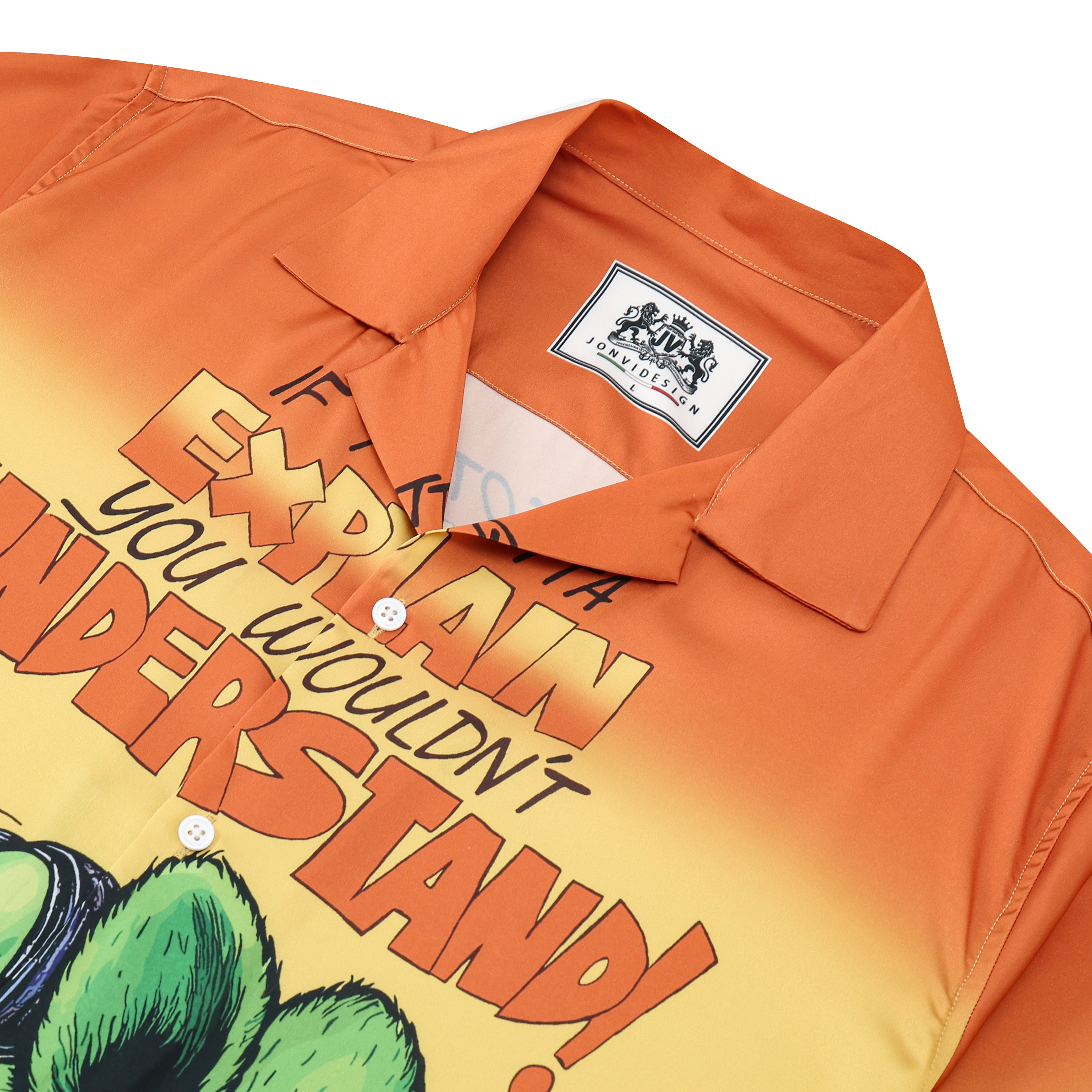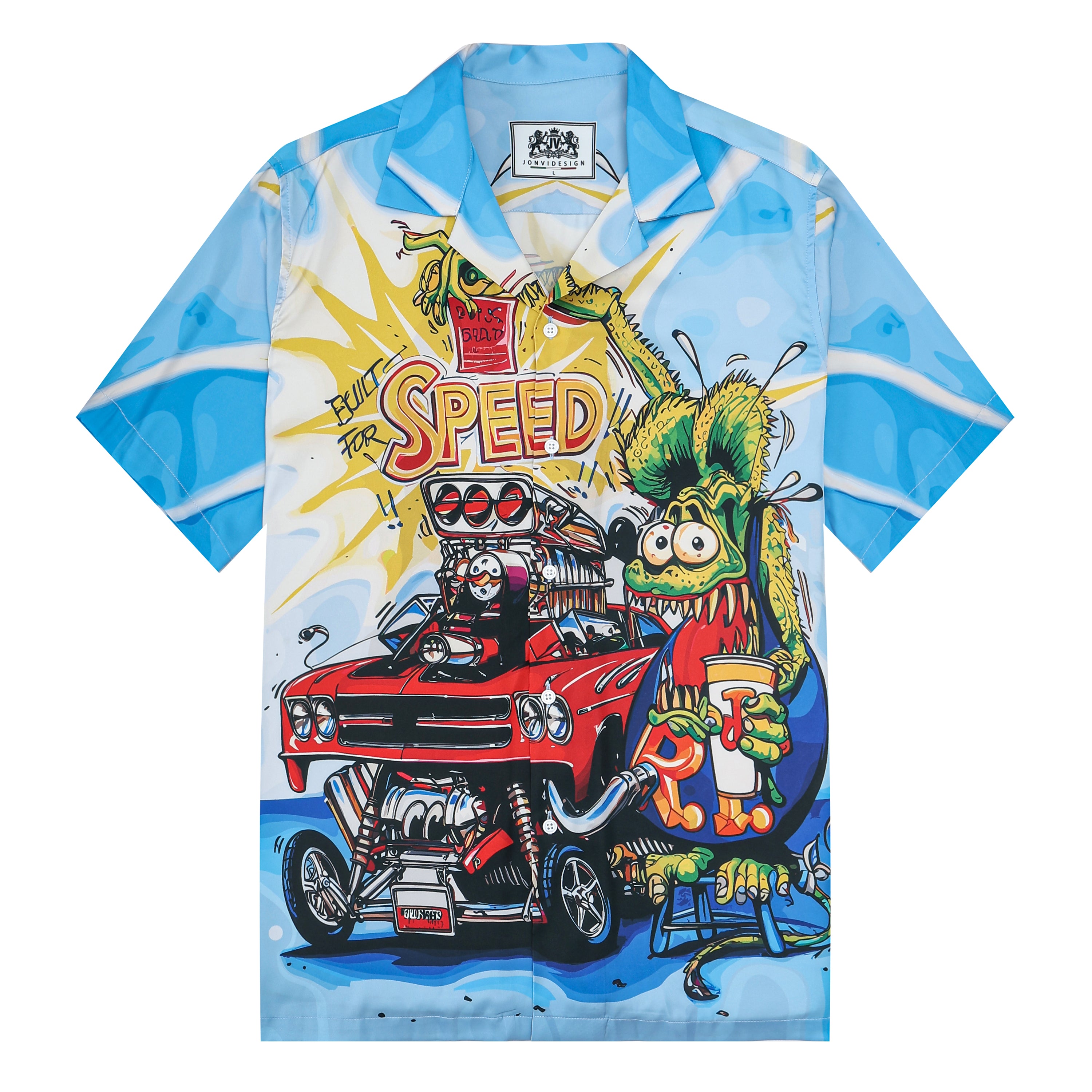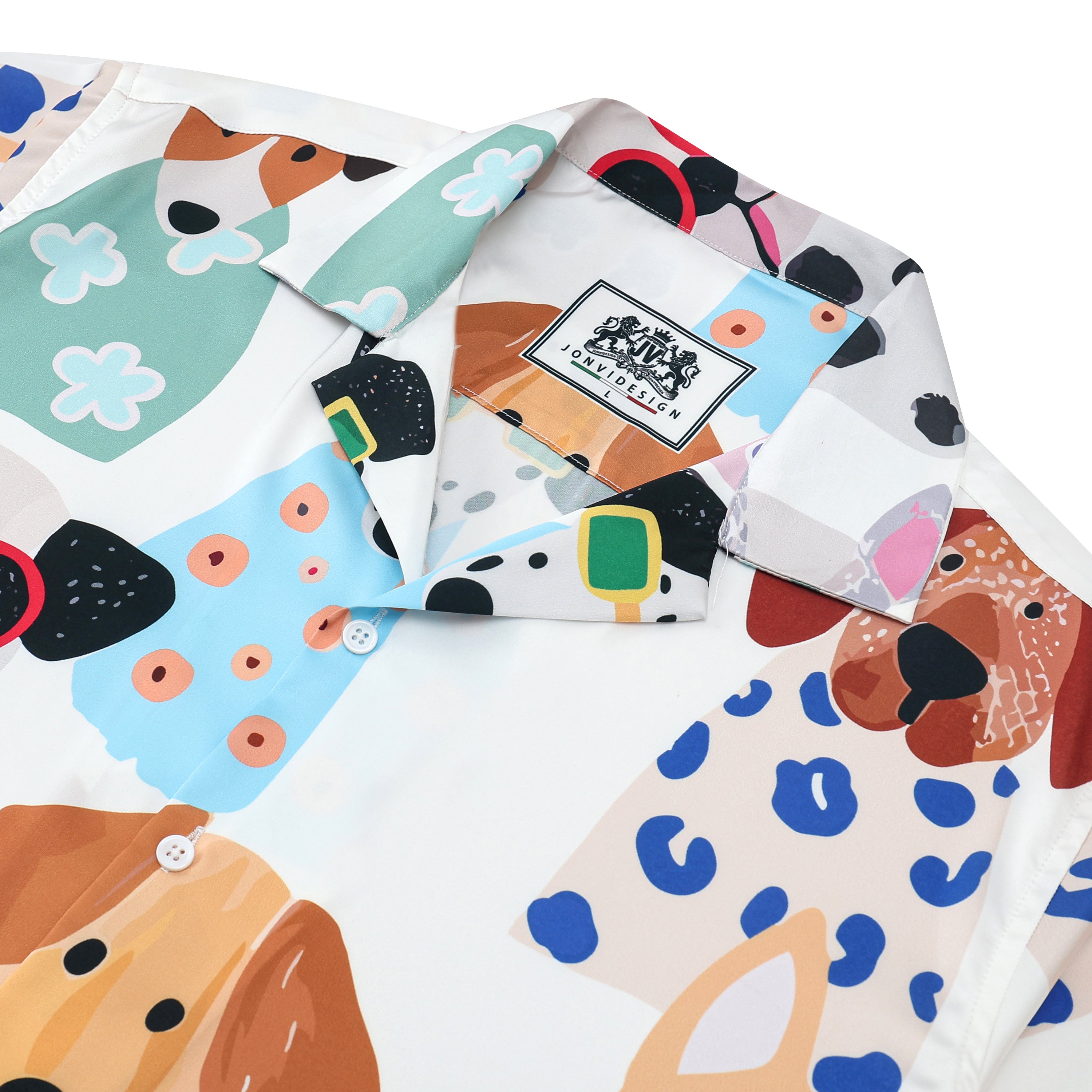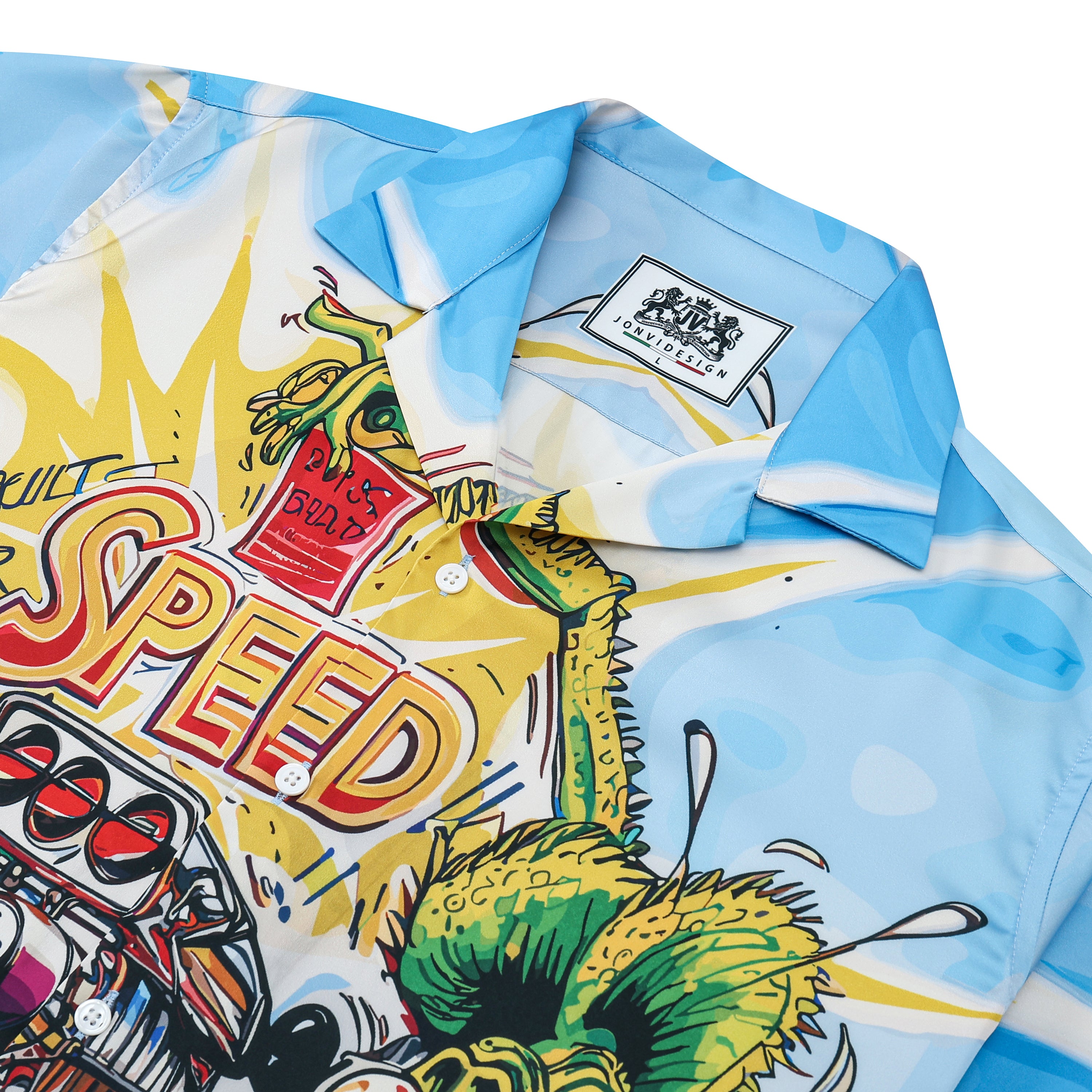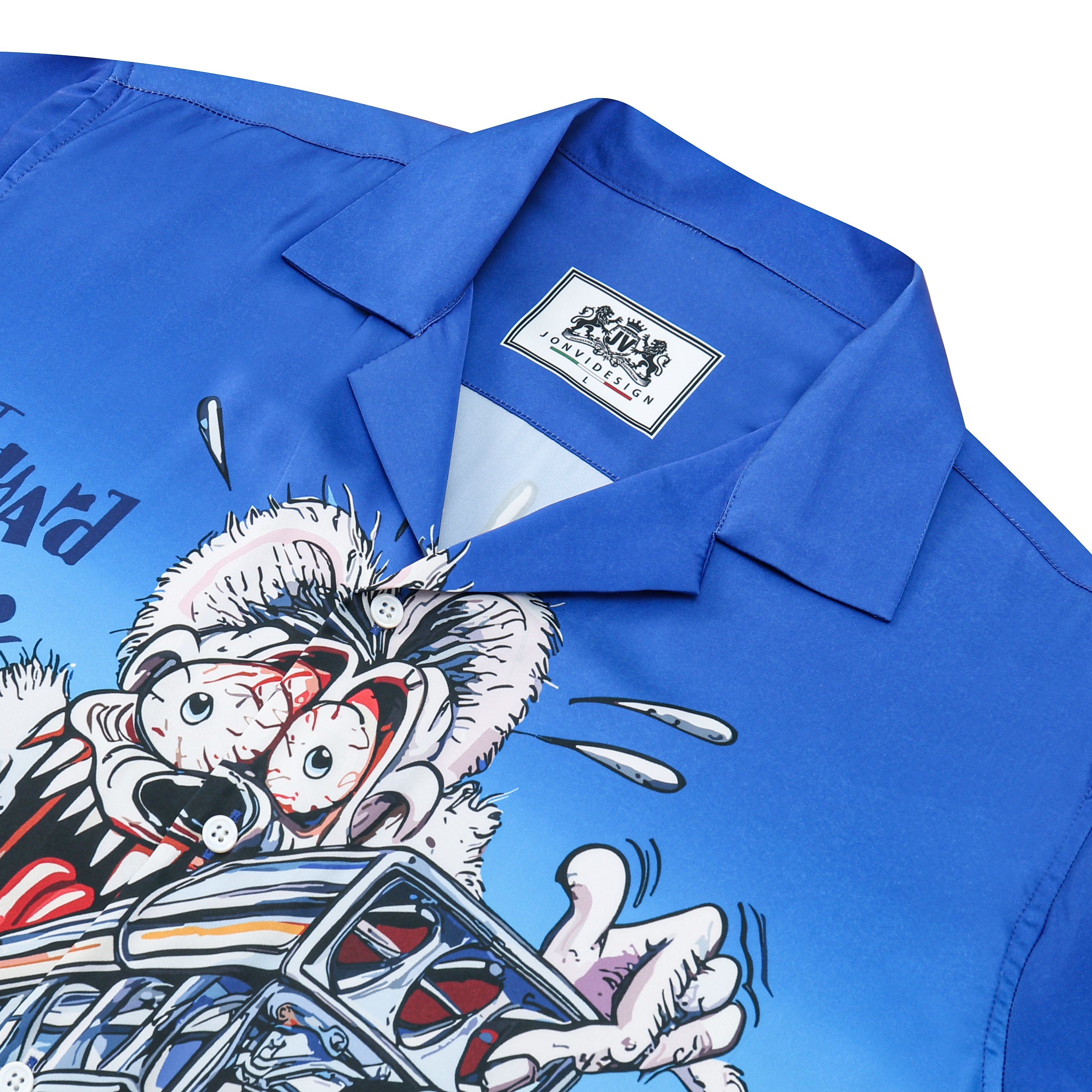 Black And Green Color Block Mouse Print Camp Collar Short Sleeve Shirt For Men$43.99 USD$69.00 USD