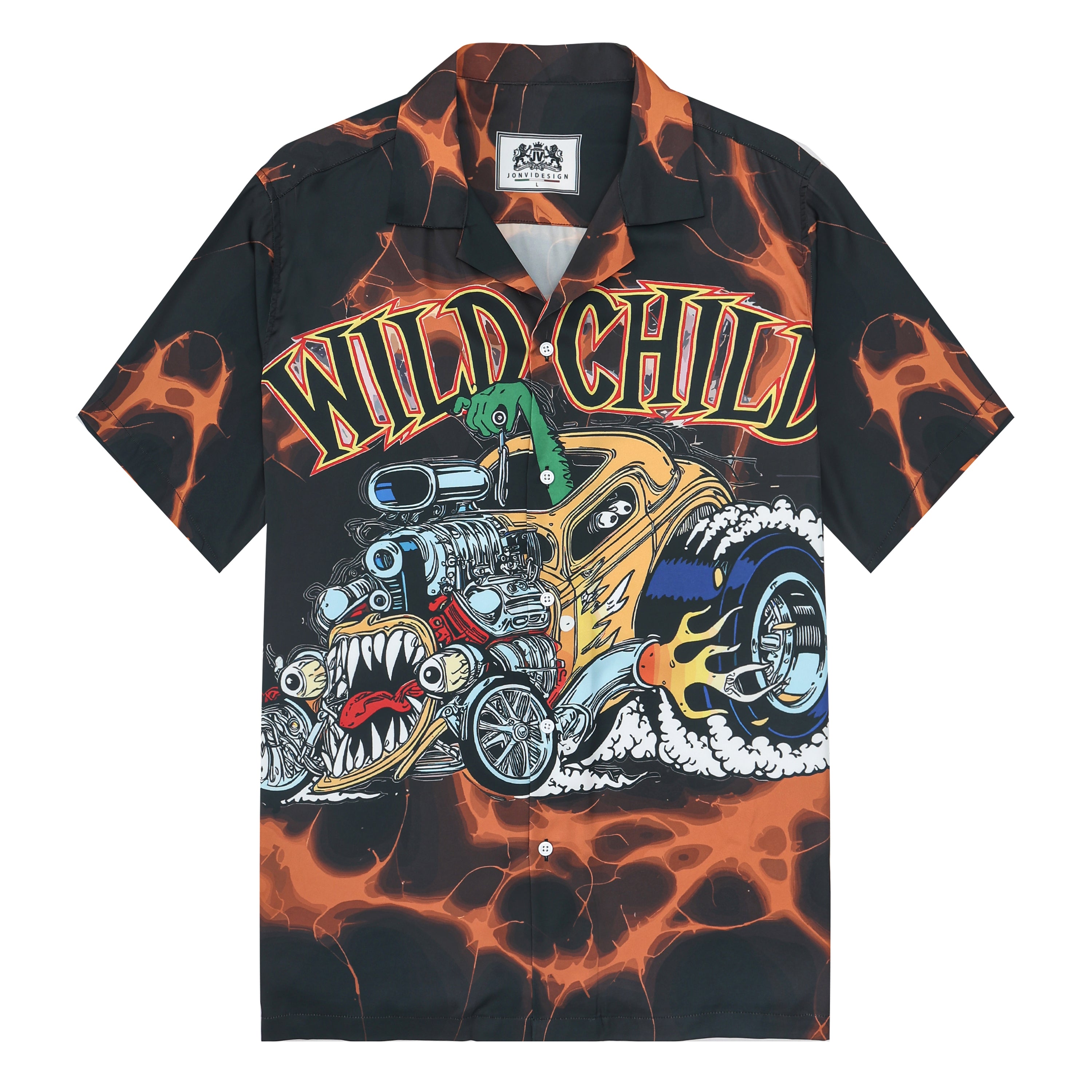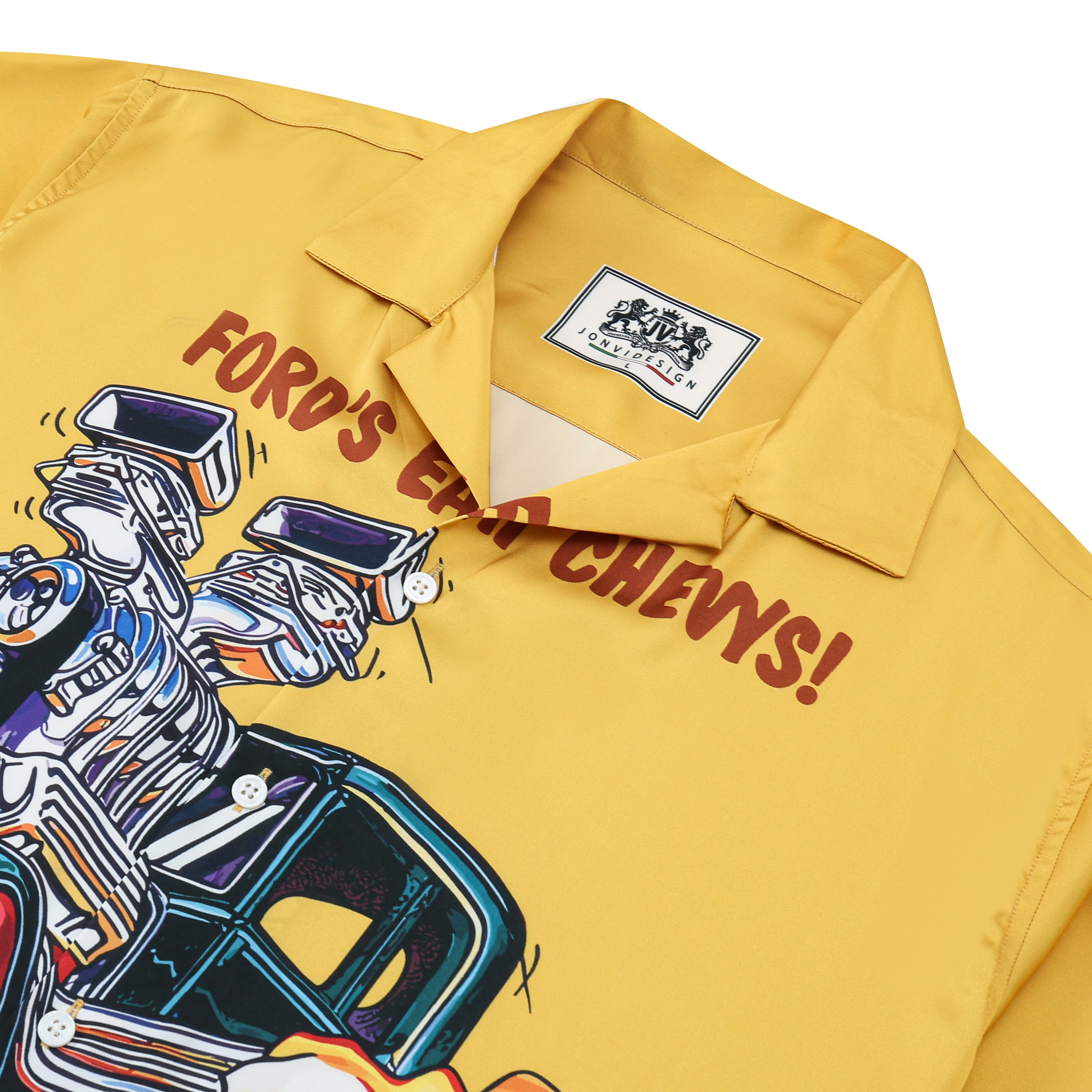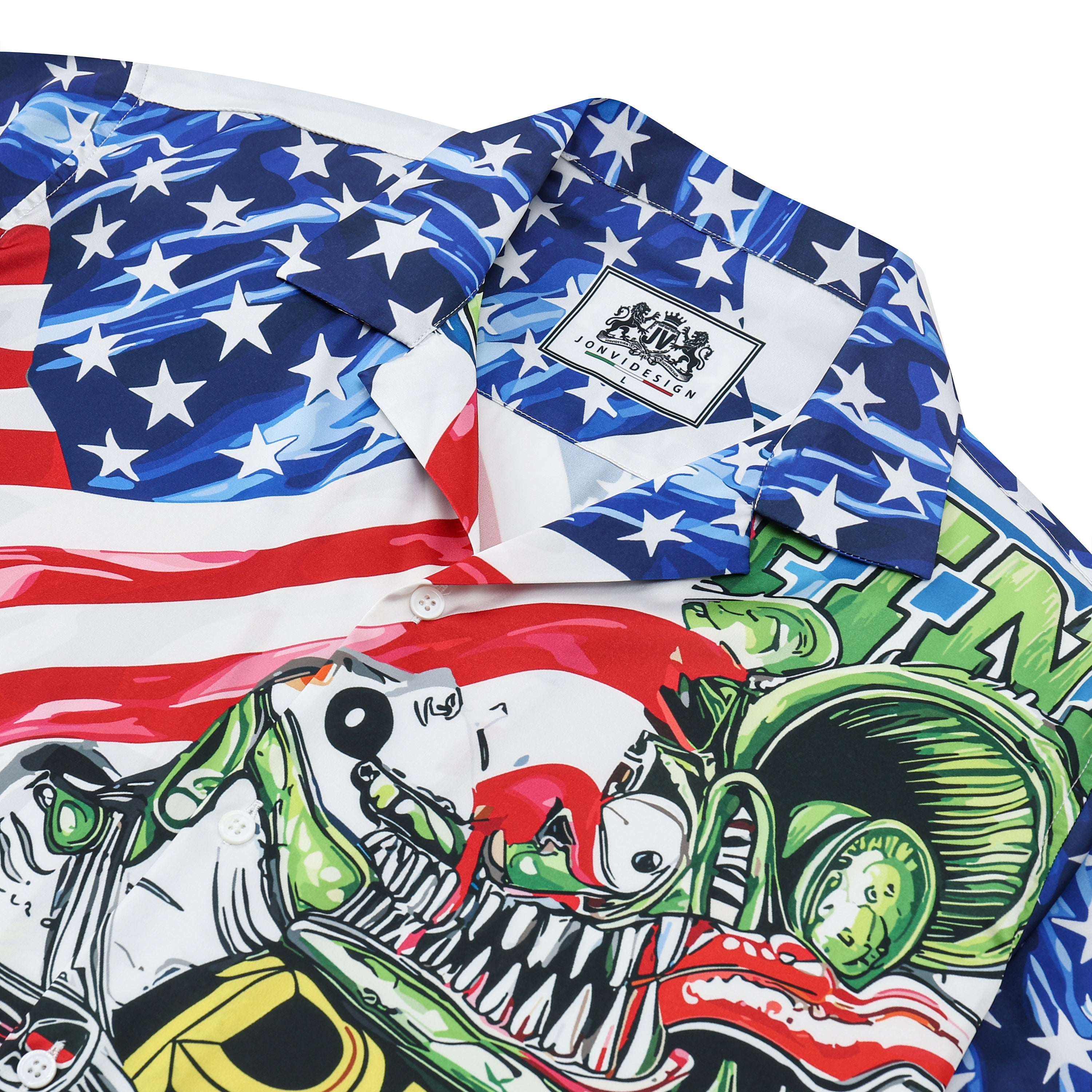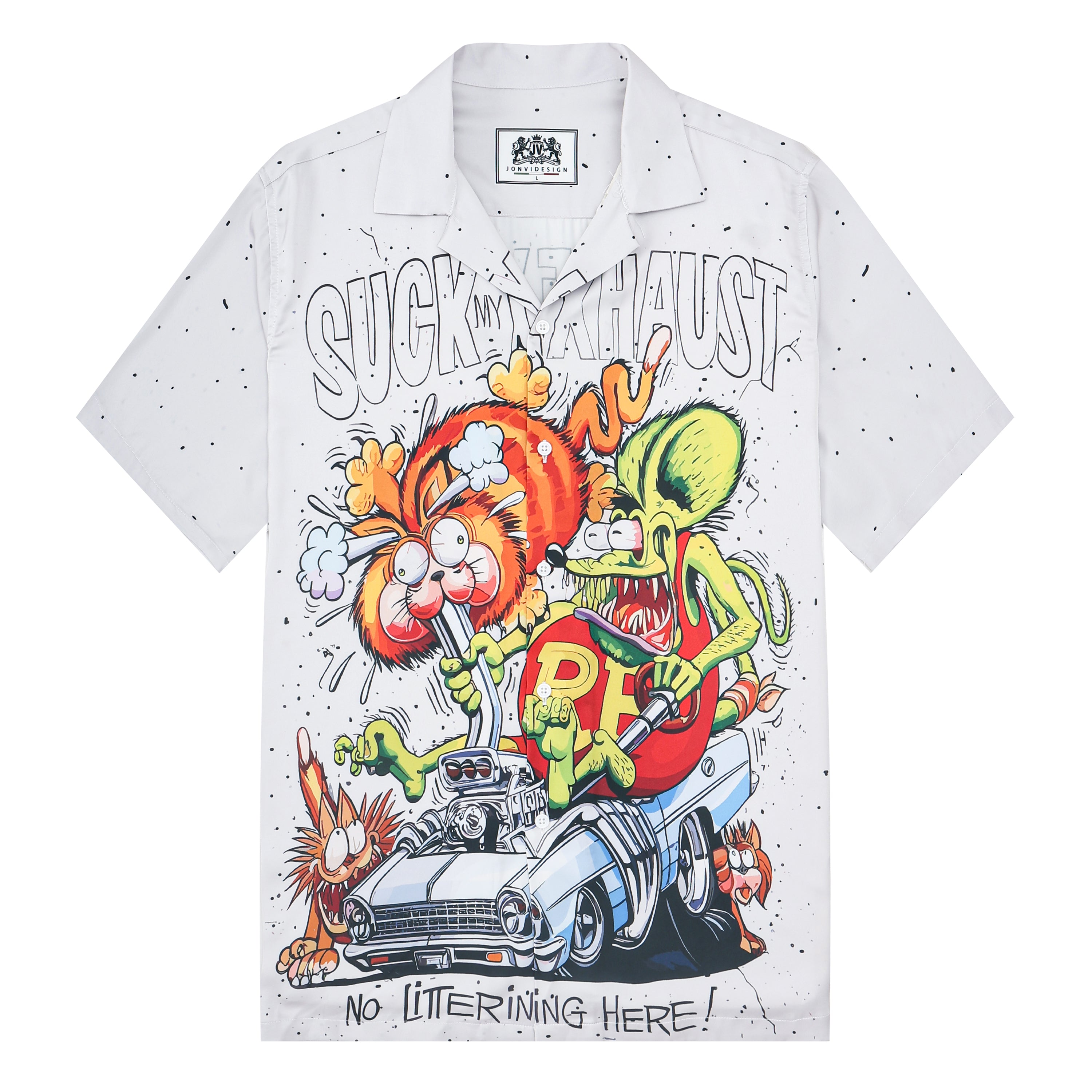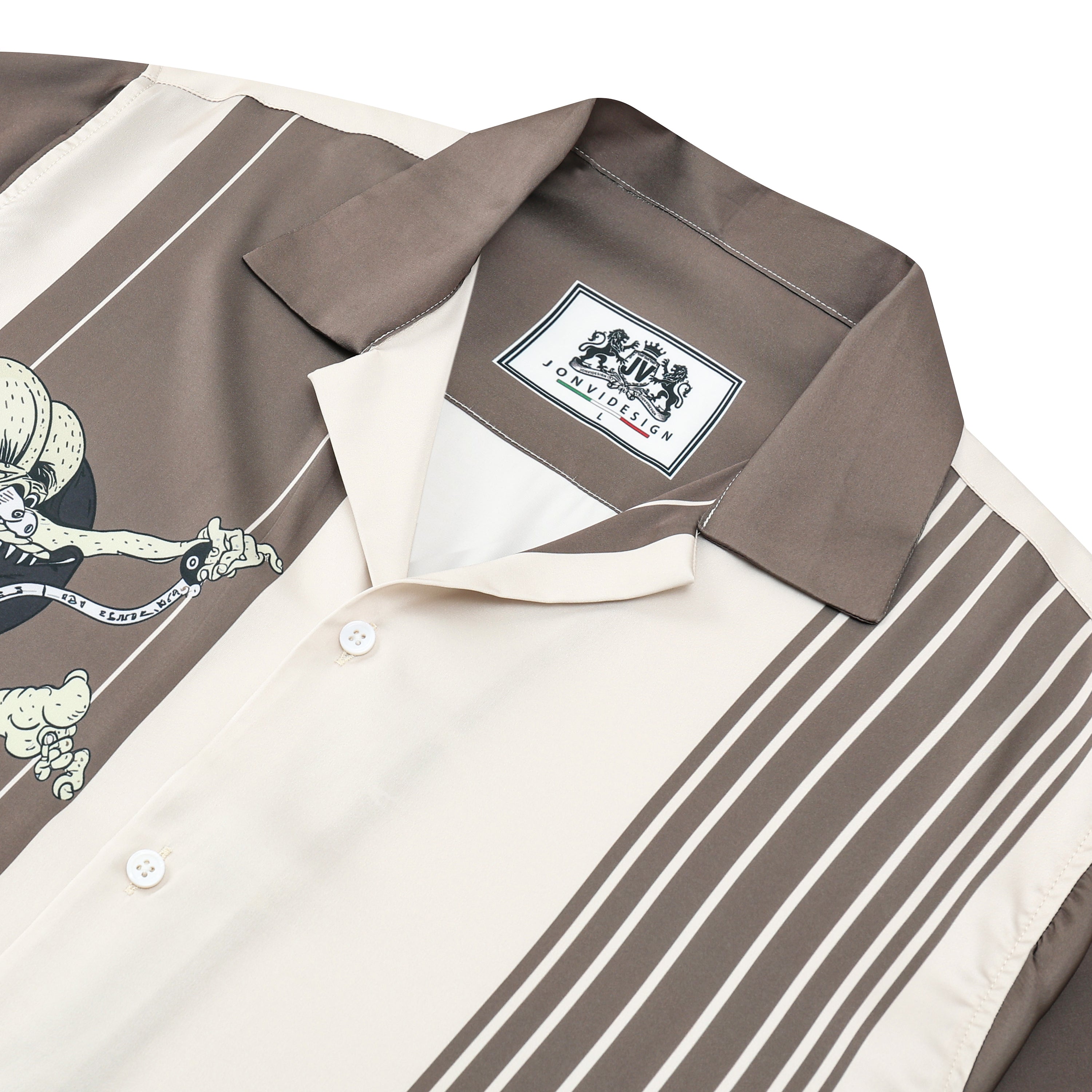 Black And Green Color Block Mouse Print Camp Collar Short Sleeve Shirt For Men$43.99 USD$69.00 USD