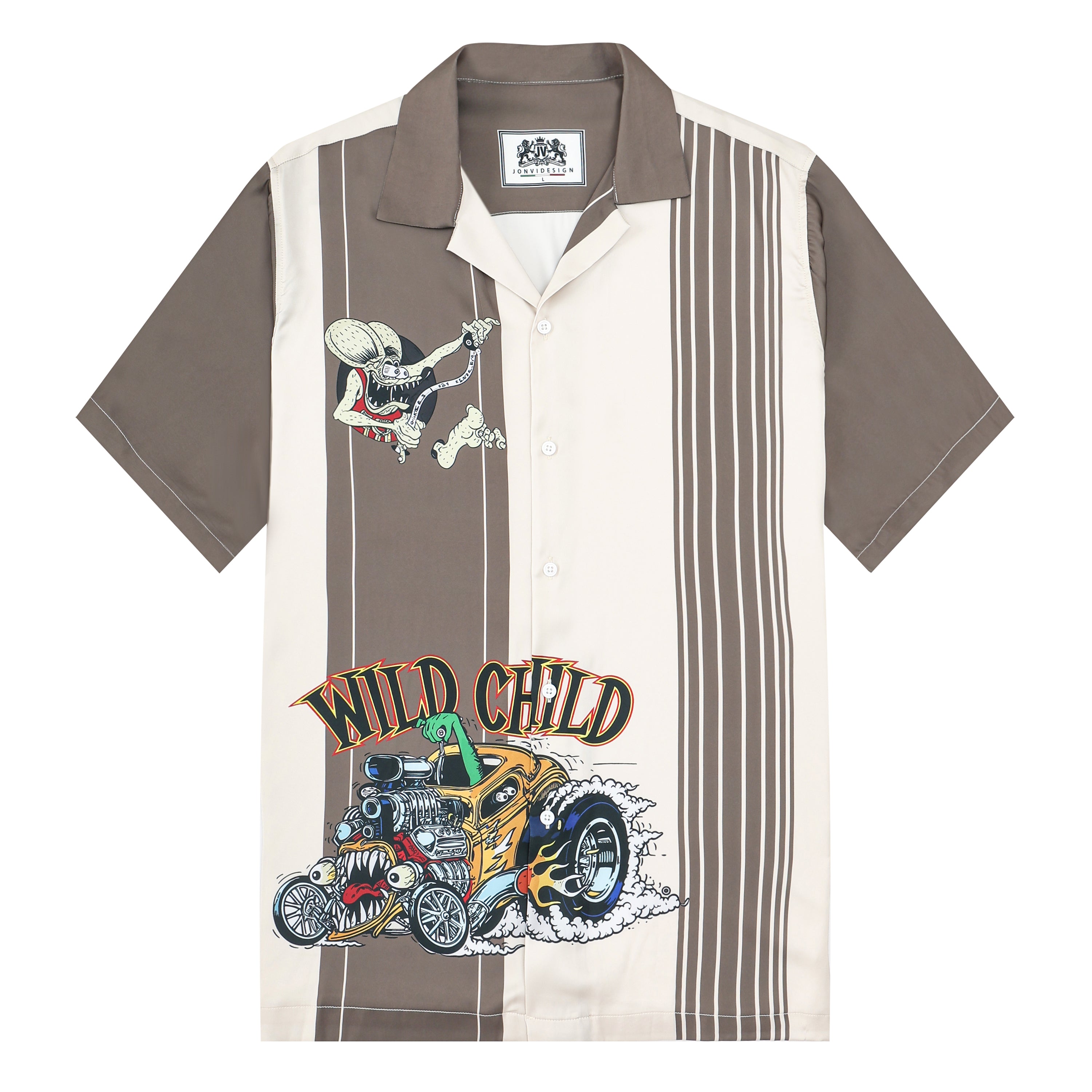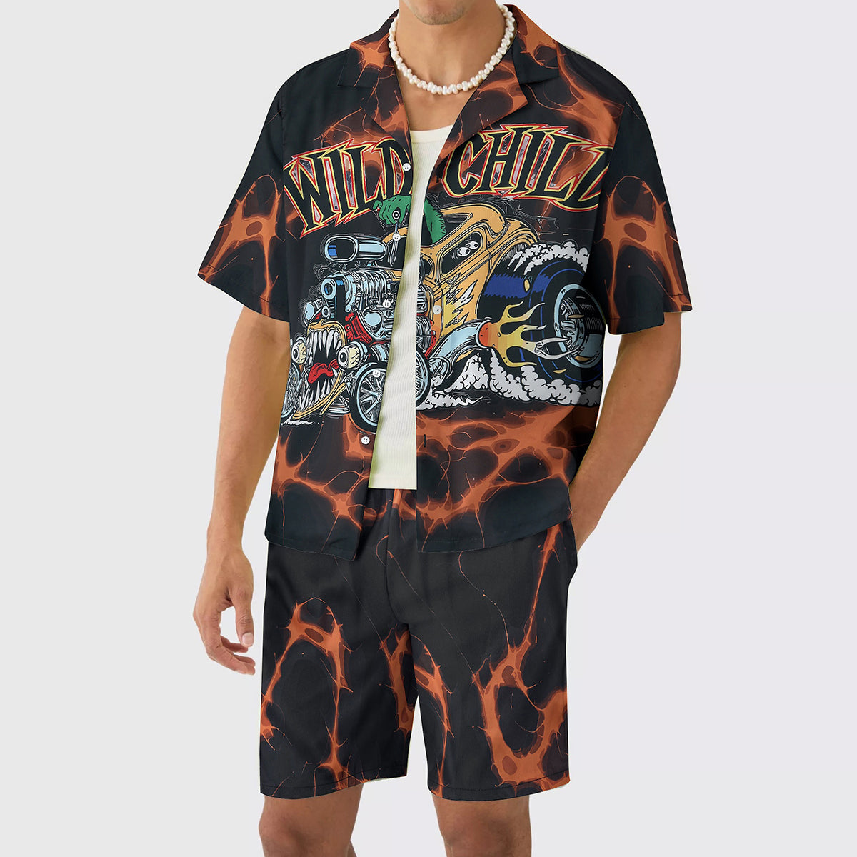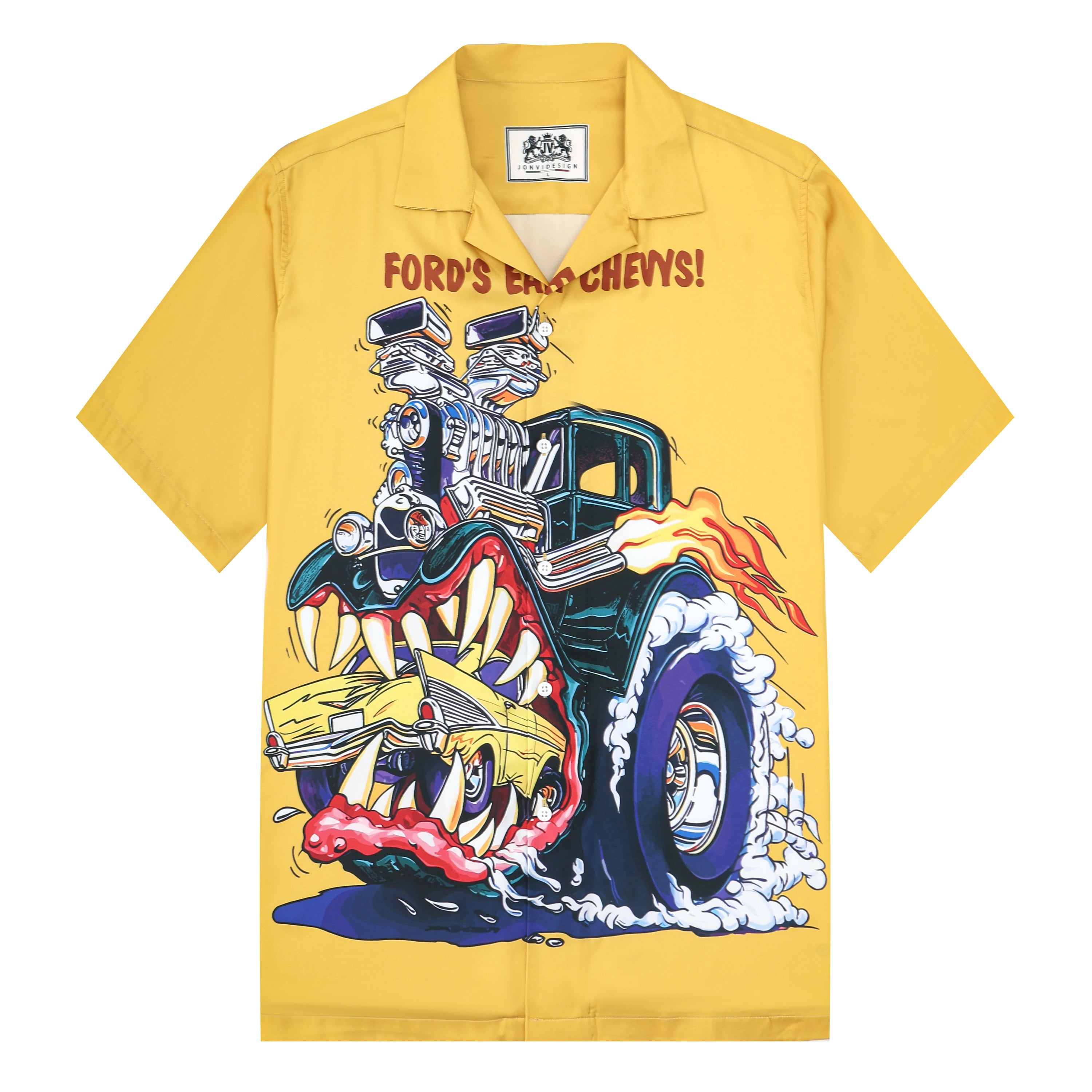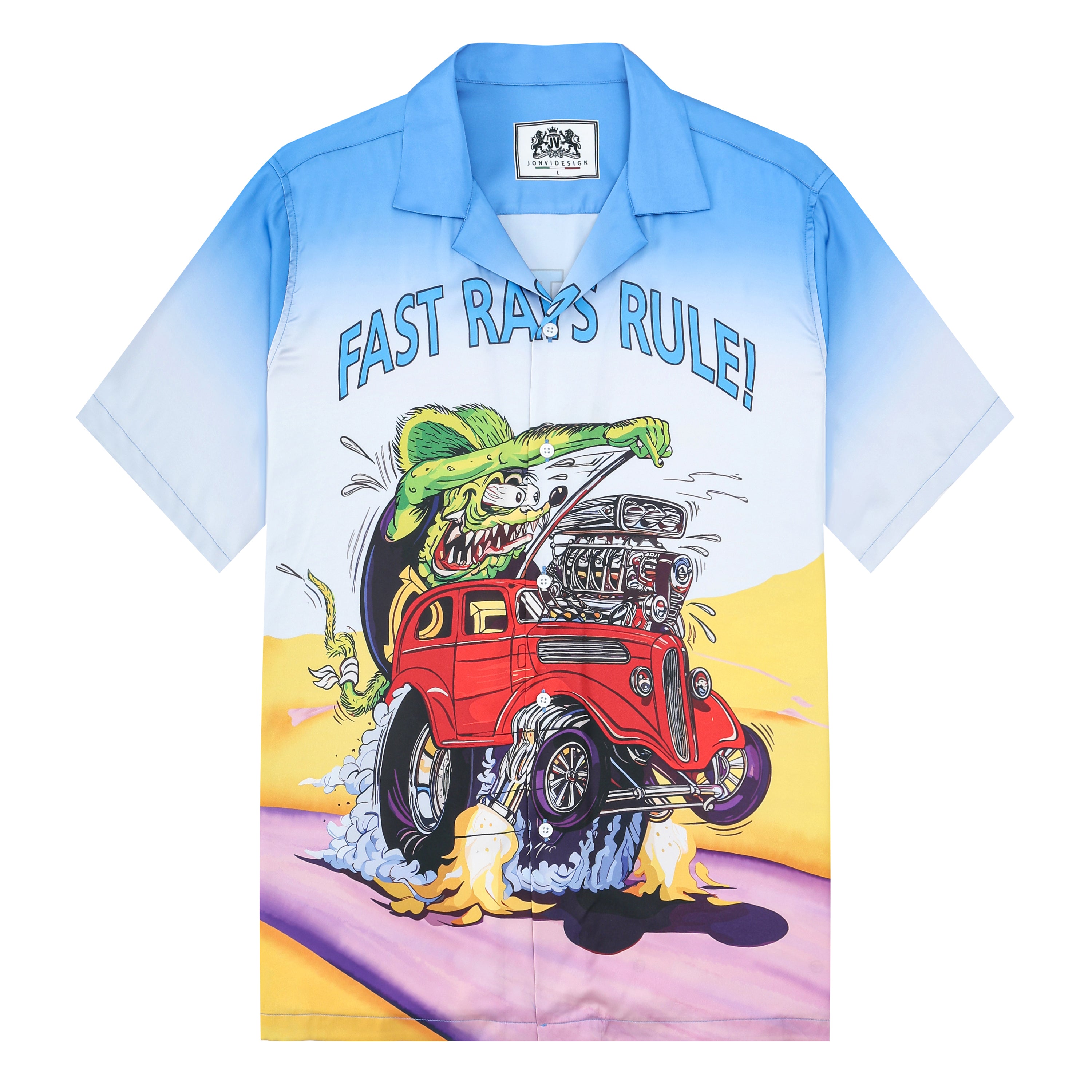 Black And Green Color Block Mouse Print Camp Collar Short Sleeve Shirt For Men$43.99 USD$69.00 USD