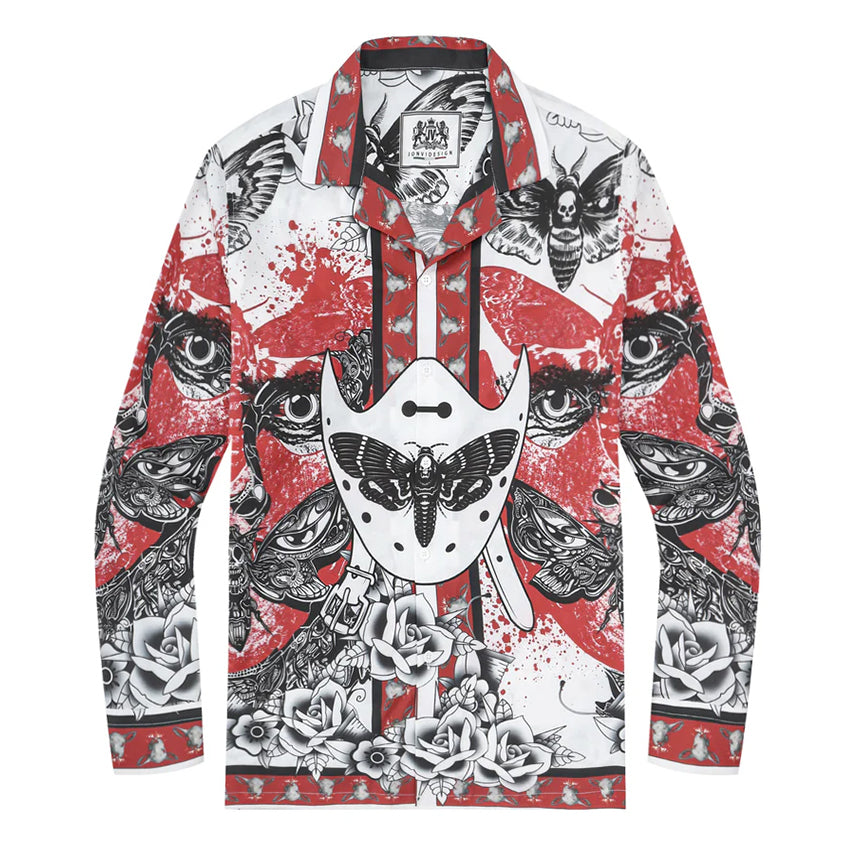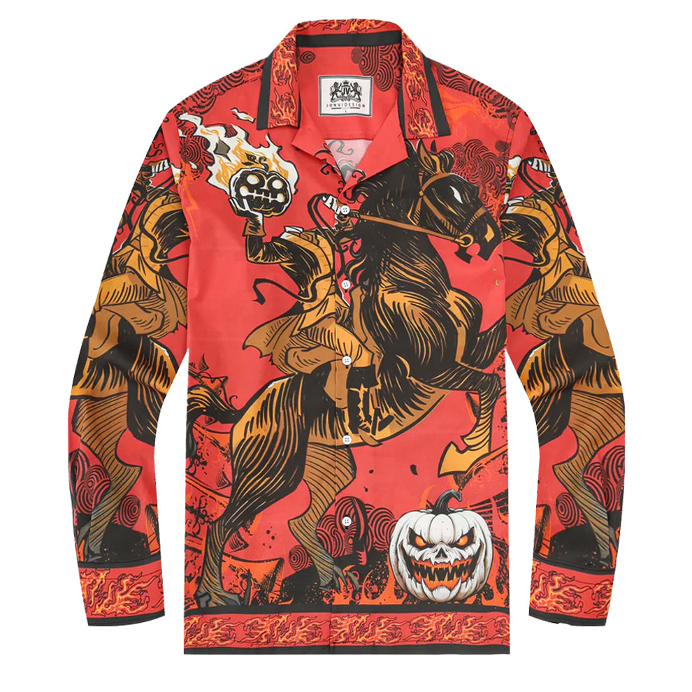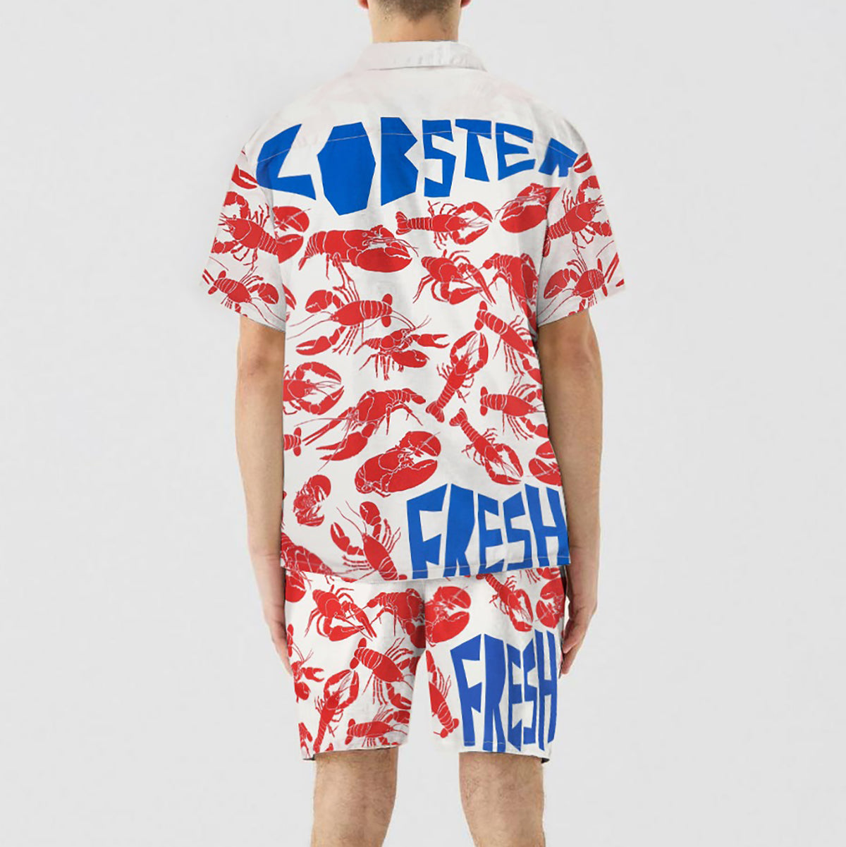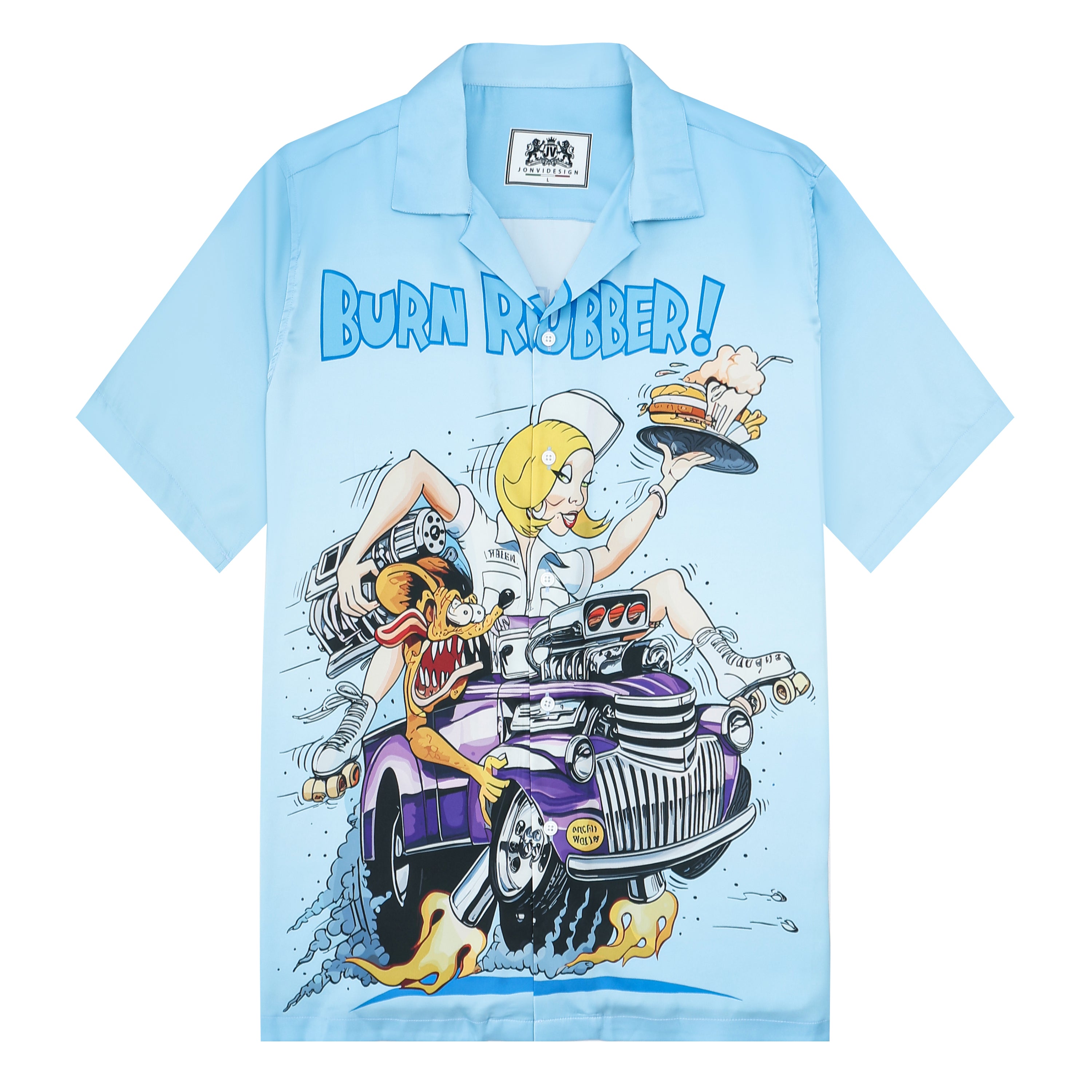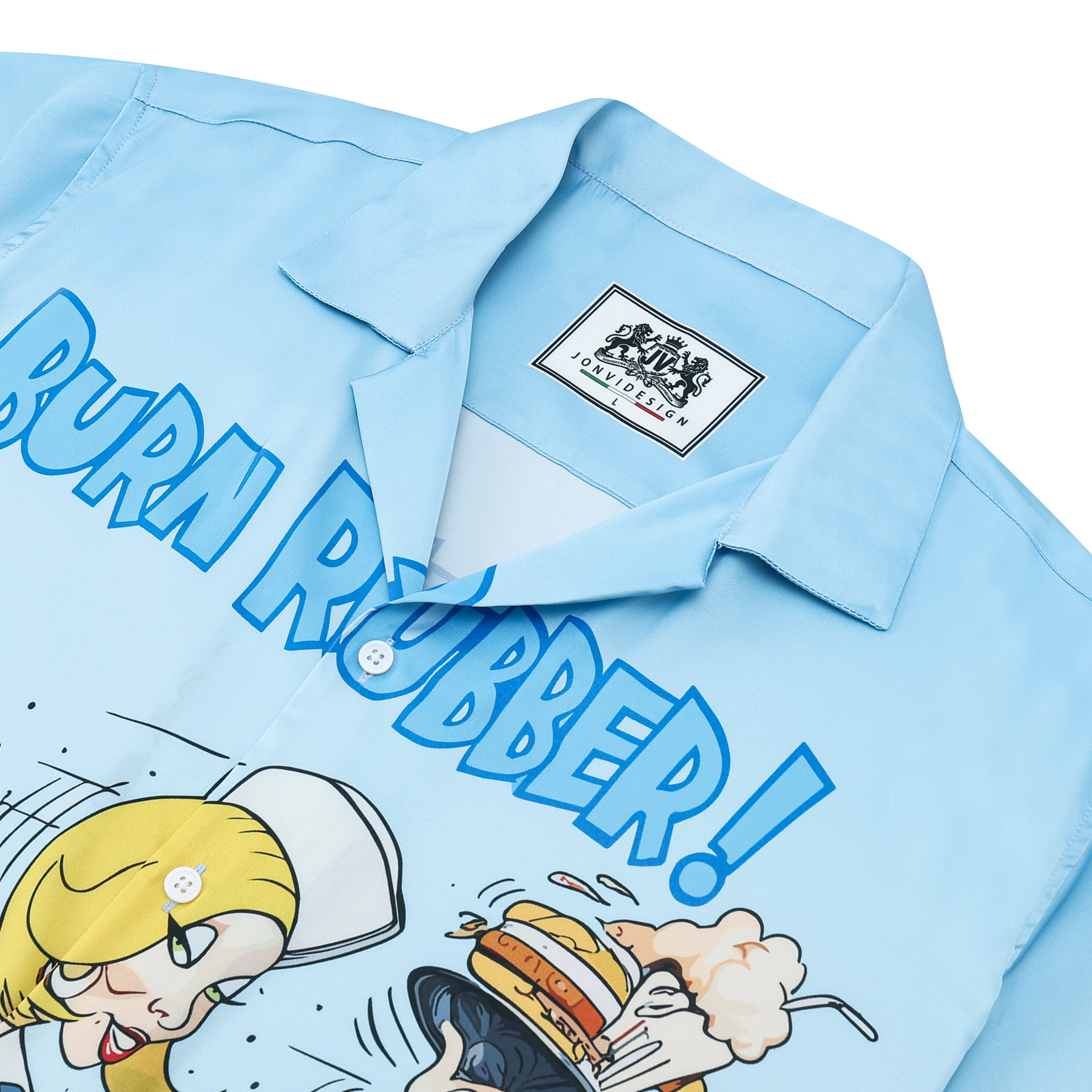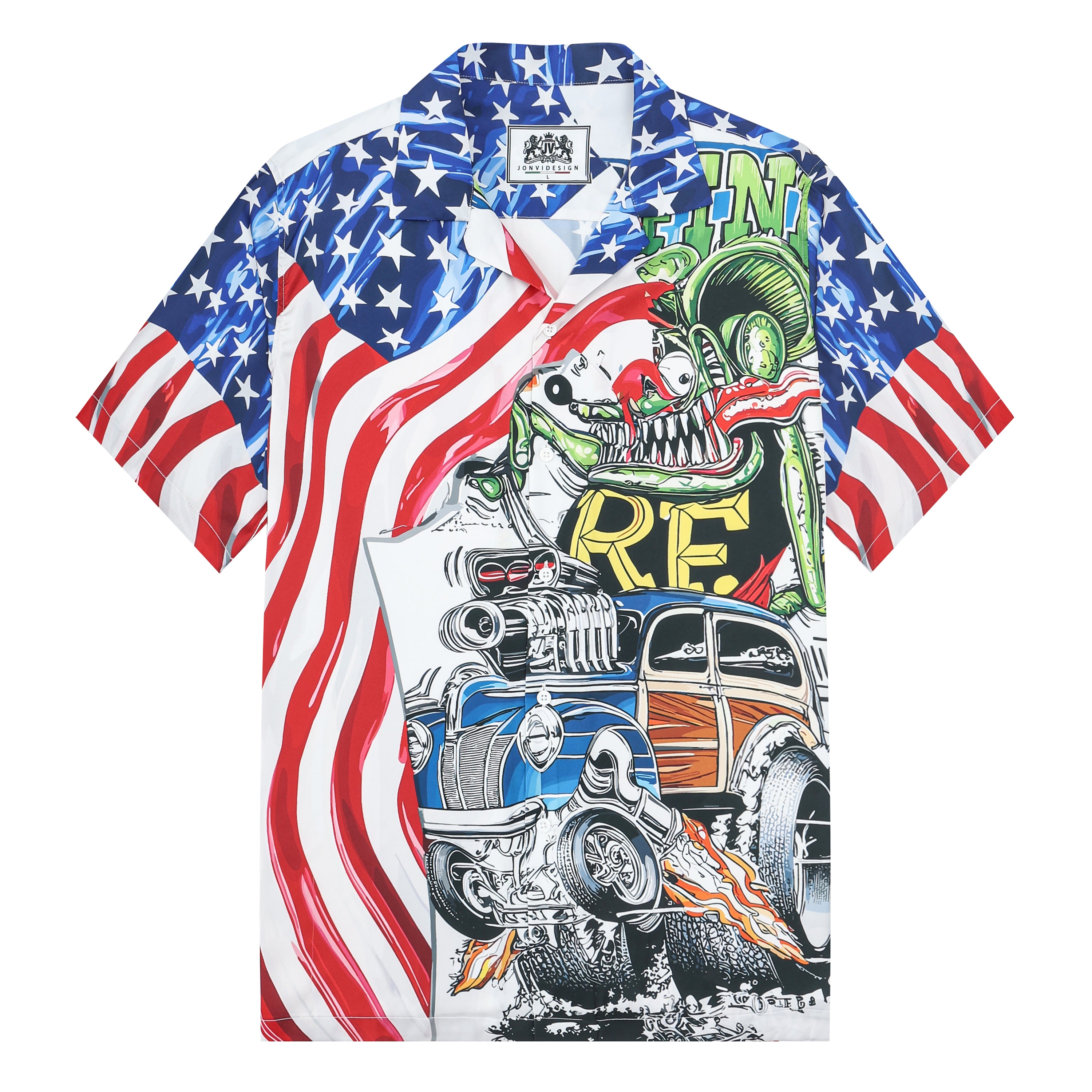 Black And Green Color Block Mouse Print Camp Collar Short Sleeve Shirt For Men$43.99 USD$69.00 USD