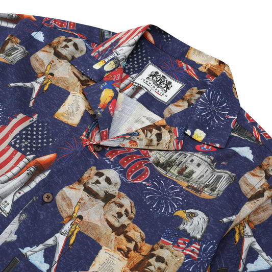 American Eagle Statue of Liberty Pattern Camp Collar Short Sleeve Shirt