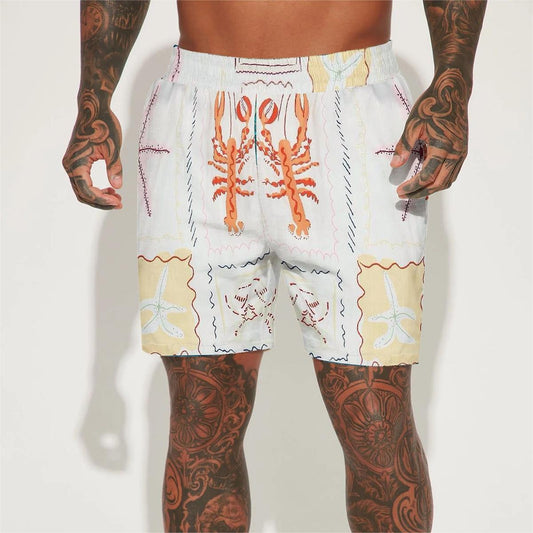 Aloha Style Crayfish Print Elastic Waistband Summer Casual Shorts