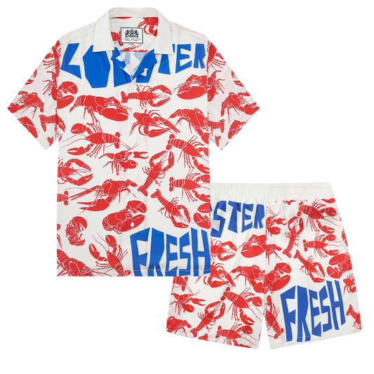 Aloha Style Lobster Pattern Short Sleeve Camp Collar Shirt