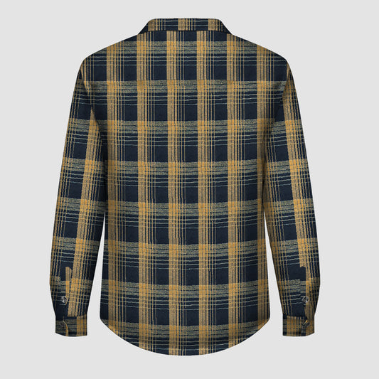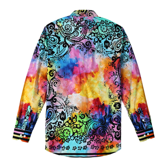 Abstract Landscape Print Long Sleeve Camp Collar Shirt
