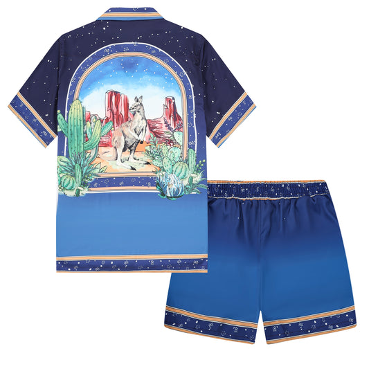 Palace Pattern Elastic Waist Summer Casual Shorts
