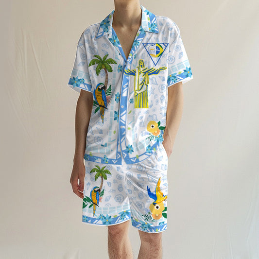 Jesus Statue Bird Beach Wear Silk Fiber Waistband Shorts