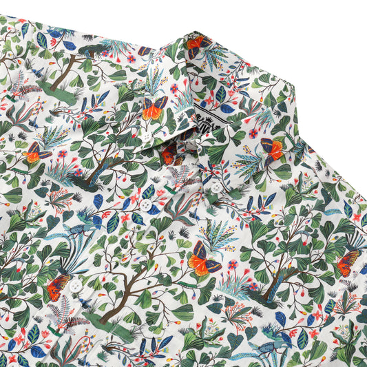 Tropical Butterfly Pattern Button Short Sleeve Shirt