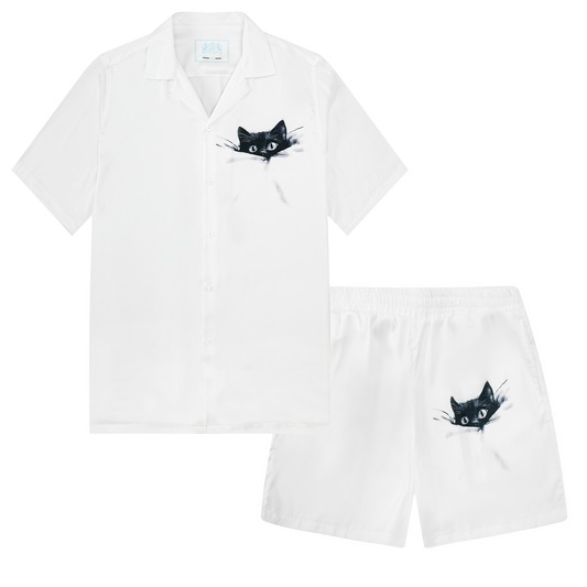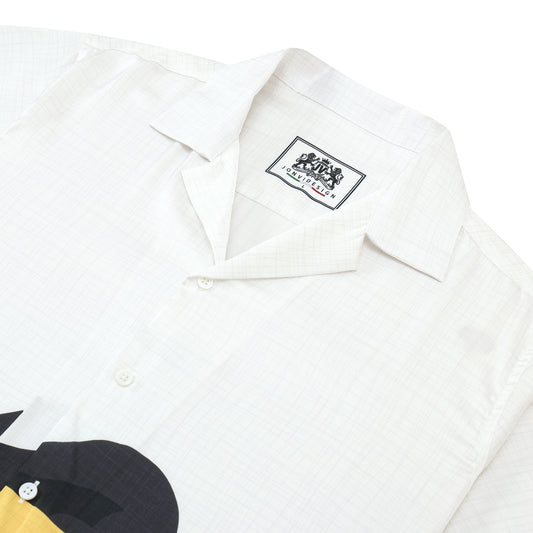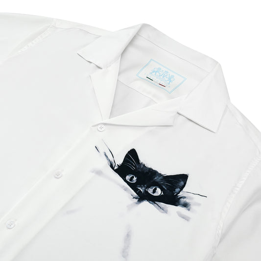 Cat Print Camp Collar Short Sleeve Shirt Simple White Style