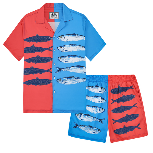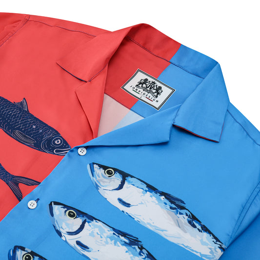 Aloha Style Sardine Pattern Sleeve Camp Collar Shirt