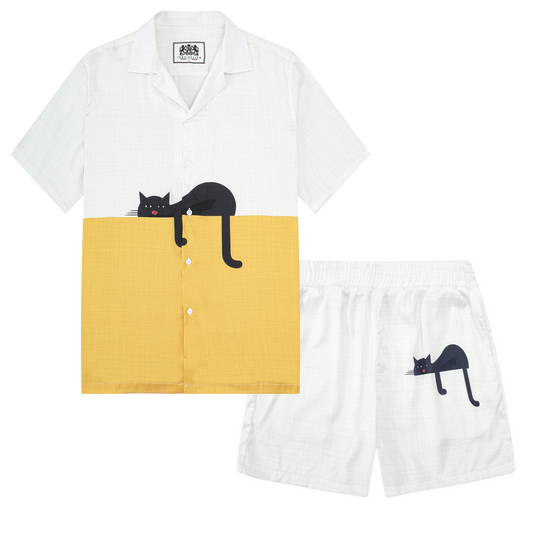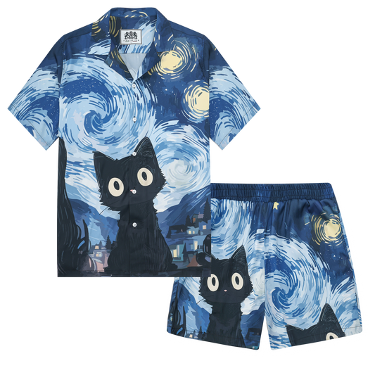 Cat Print Camp Collar Casual Shirt for Men