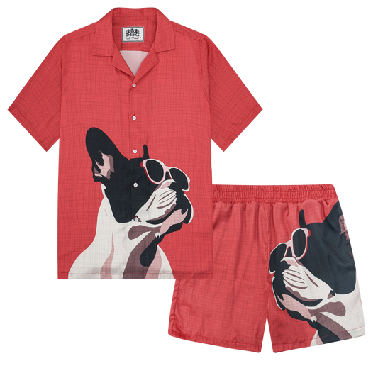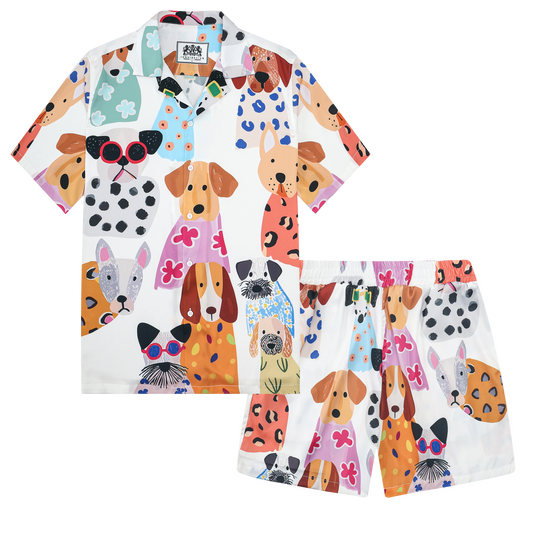 Puppy Paradise Print Camp Collar Short Sleeve Shirt