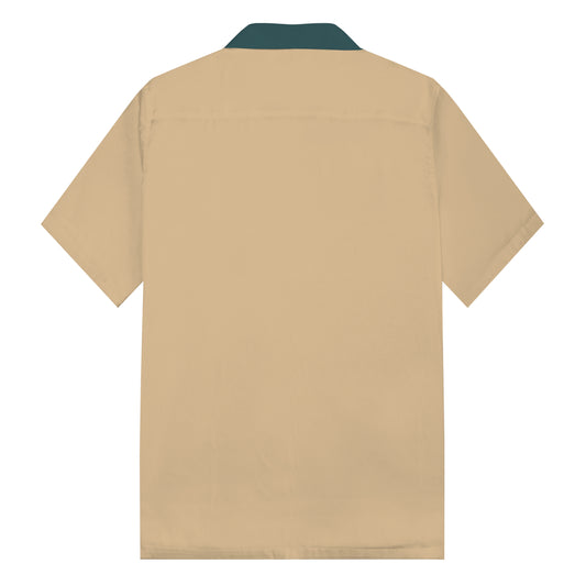 Khaki Patchwork Fun Animal Pattern Camp Collar Short Sleeve Shirt