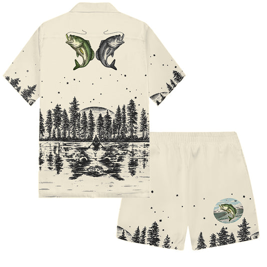 Outdoor Fishing Pattern Camp Collar Casual Shirt