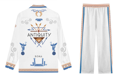 Greek Gods Printed Casual Trousers With Elastic Waistband