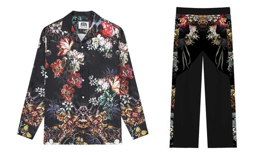 Leopard Printed Floral Camp Collar Long Sleeve Shirt