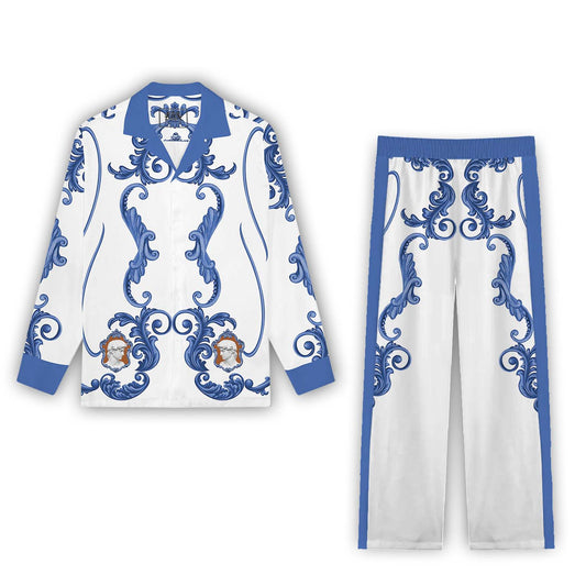 Vintage Jewelry&Gem Pattern Long Sleeve Camp Collar Shirt