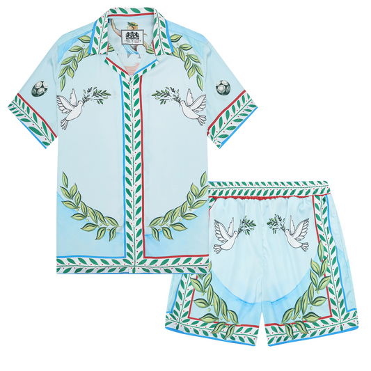 Greek Statue Olive Branch Short Sleeve Camp Collar Shirt