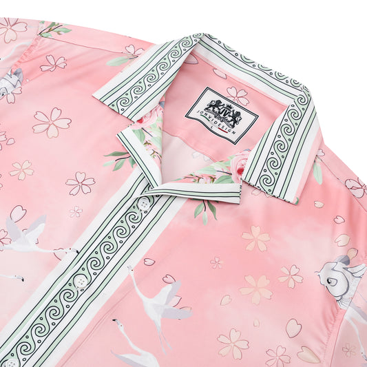 Animal Flamingo Pattern Camp Collar Casual Shirt