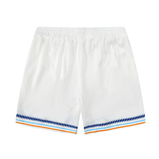White Stripe Elastic Waistband Casual Tennis Shorts for Vacation