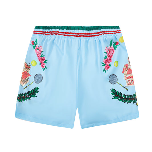 Palace Pattern Elastic Waist Summer Casual Shorts