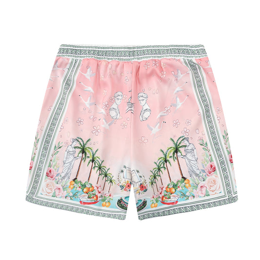 Pink Goddess Statue Pattern Elastic Waist Summer Casual Shorts
